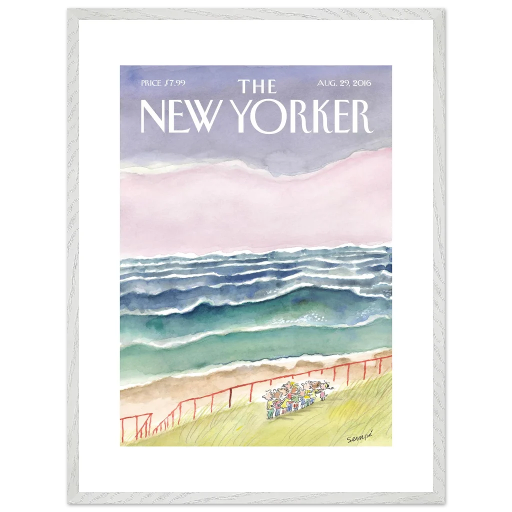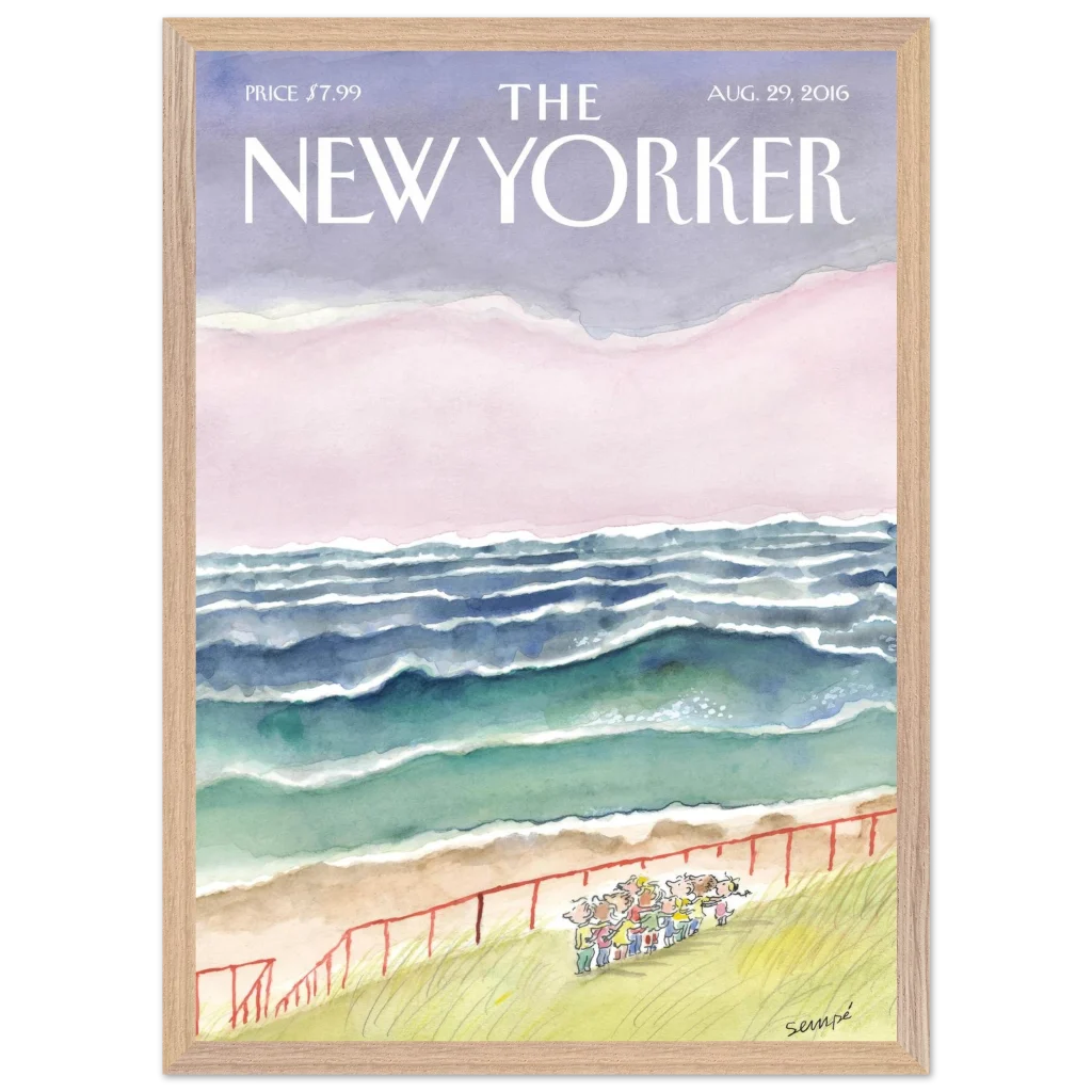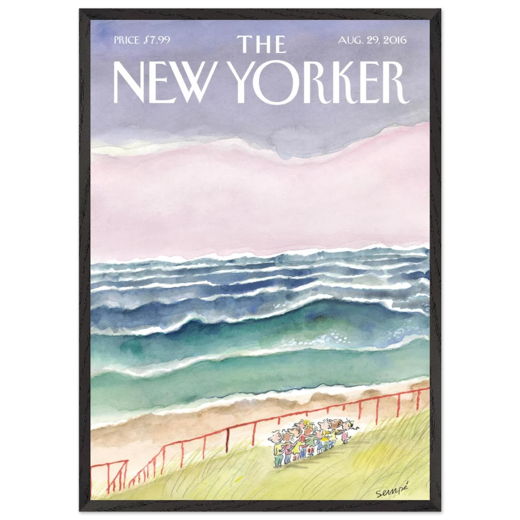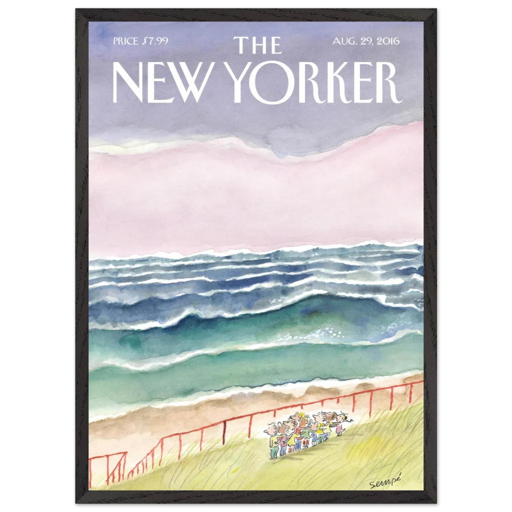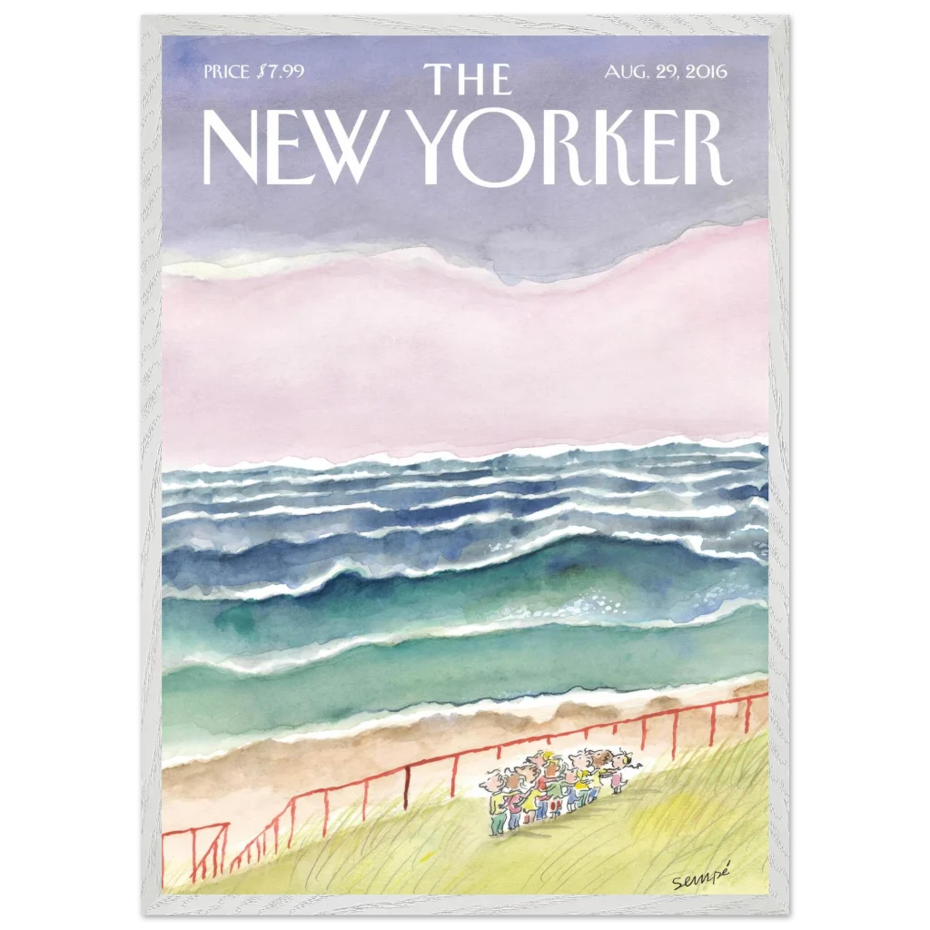 Coastal Charm: Sempé’s ‘The New Yorker’ August 2016 Cover Art Print – Premium Framed Poster