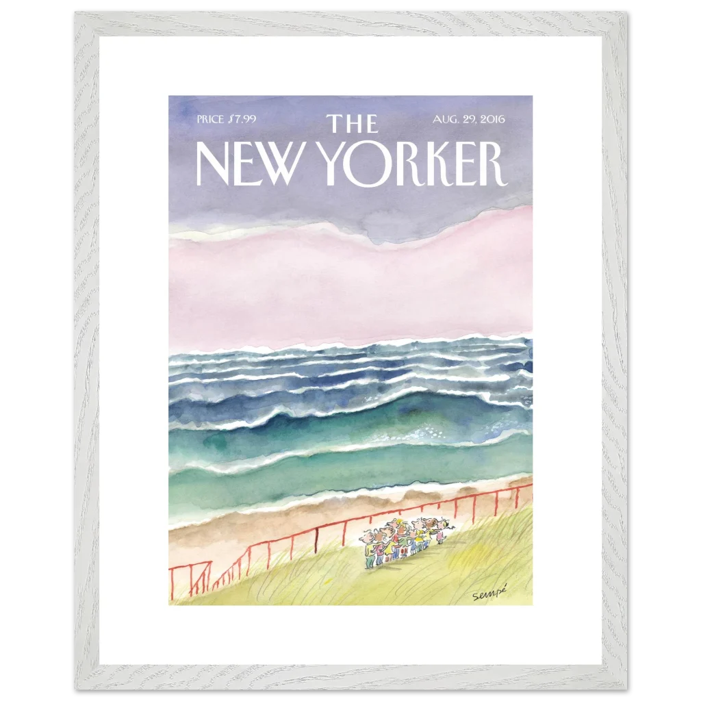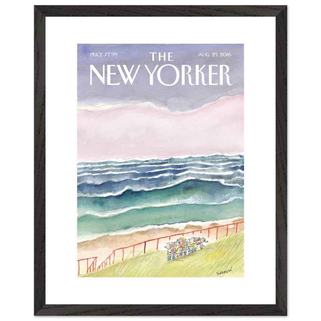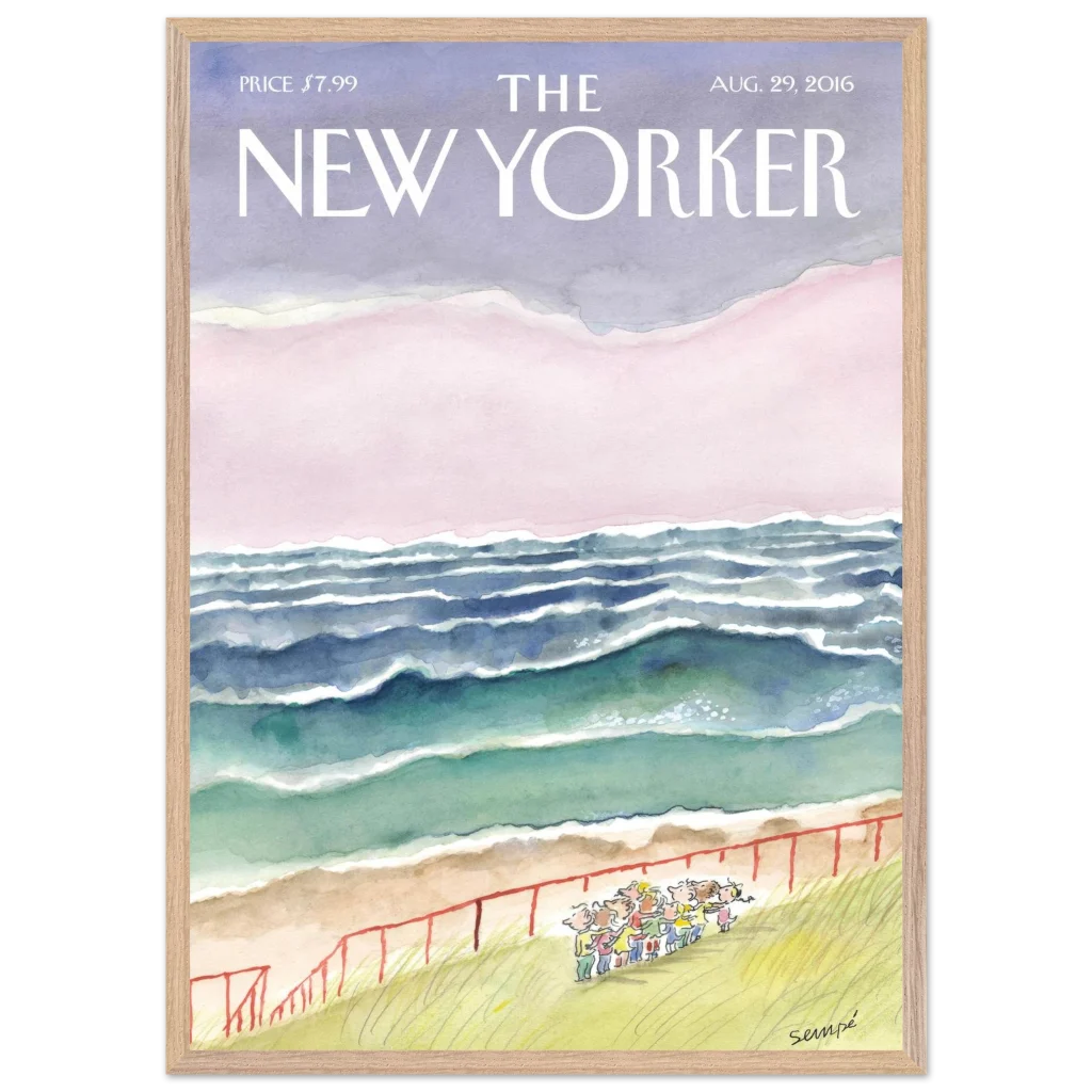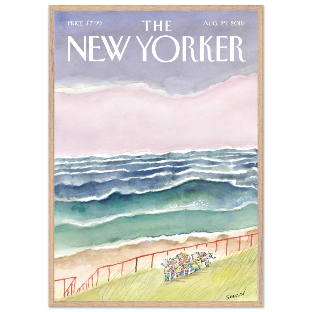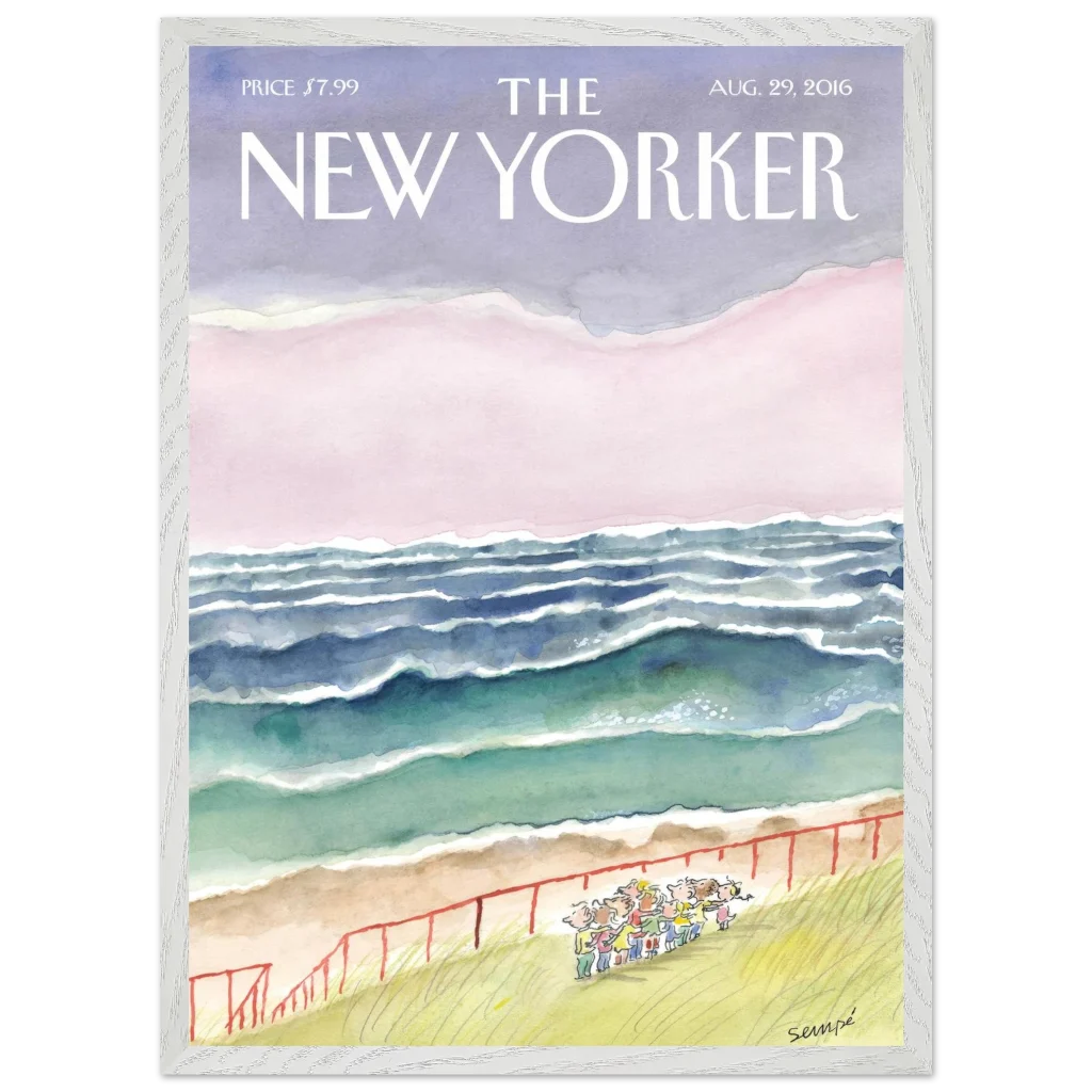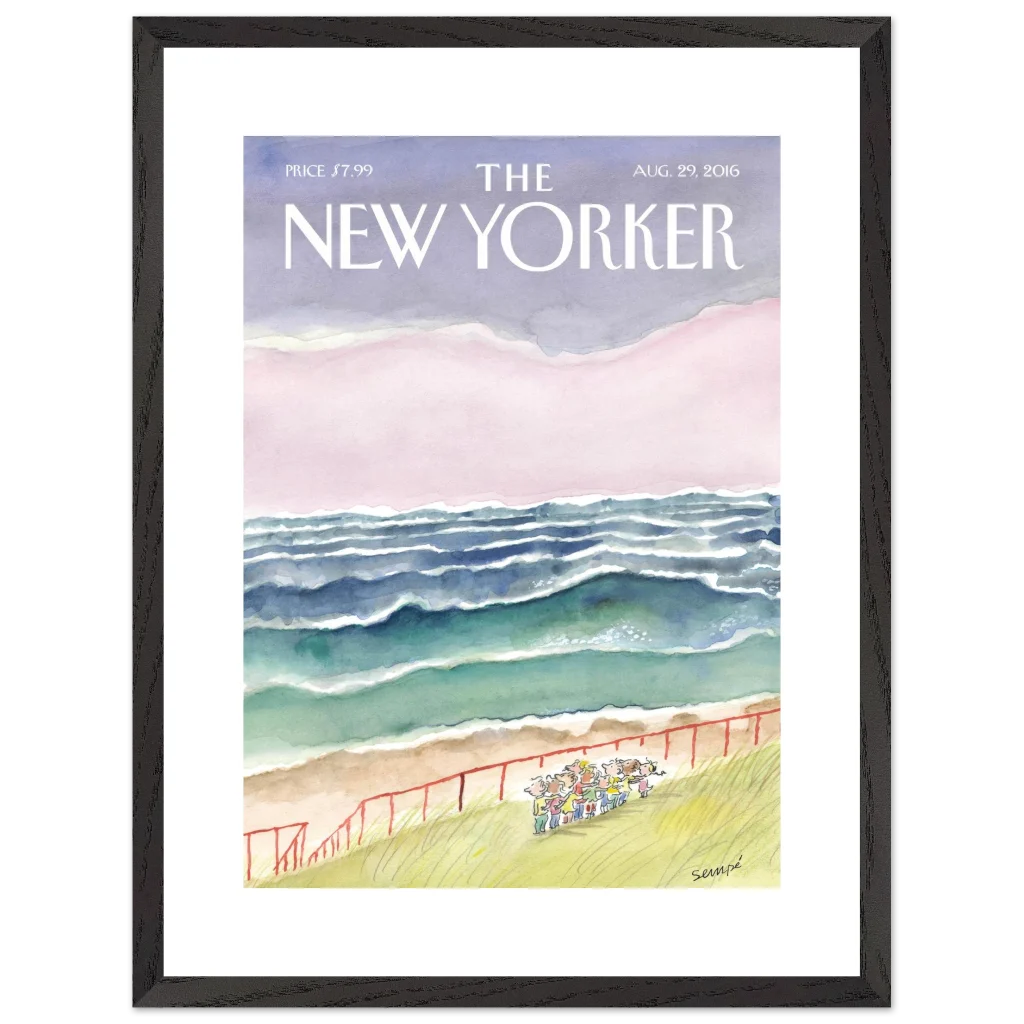 Coastal Charm: Sempé’s ‘The New Yorker’ August 2016 Cover Art Print – Premium Framed Poster