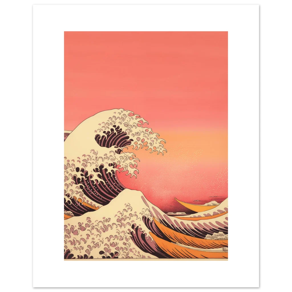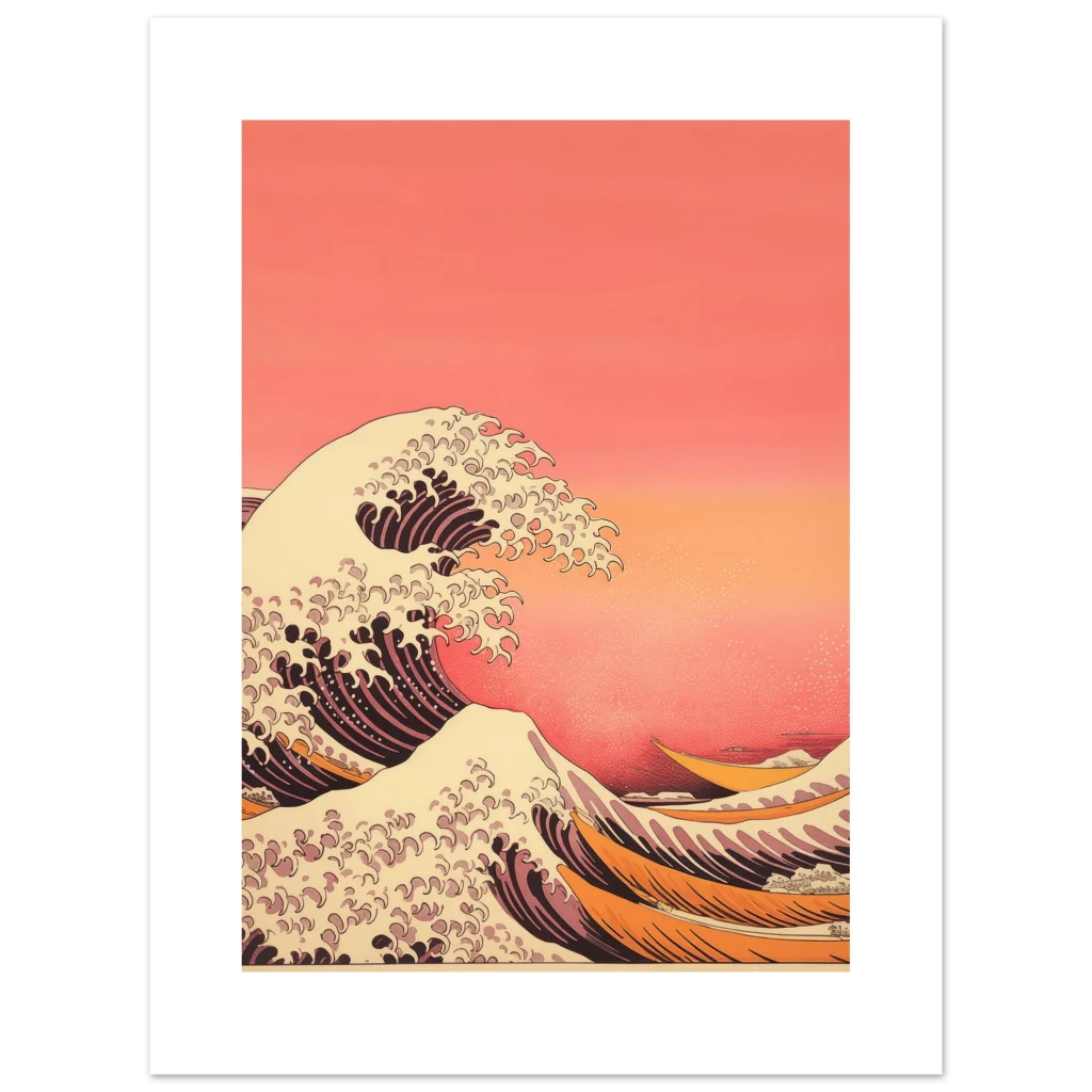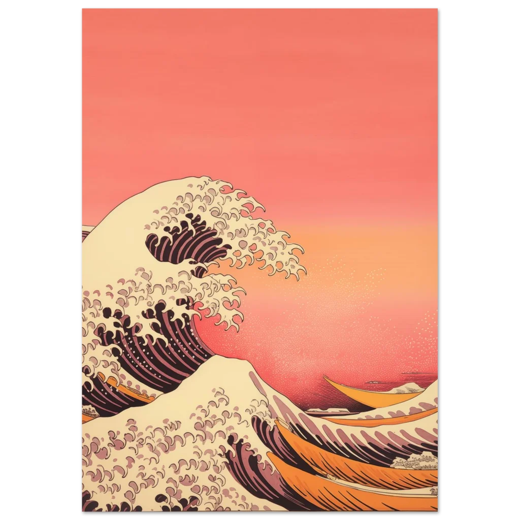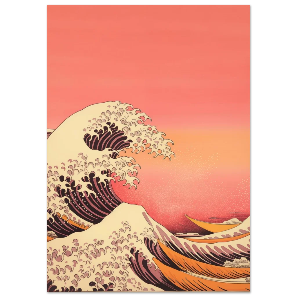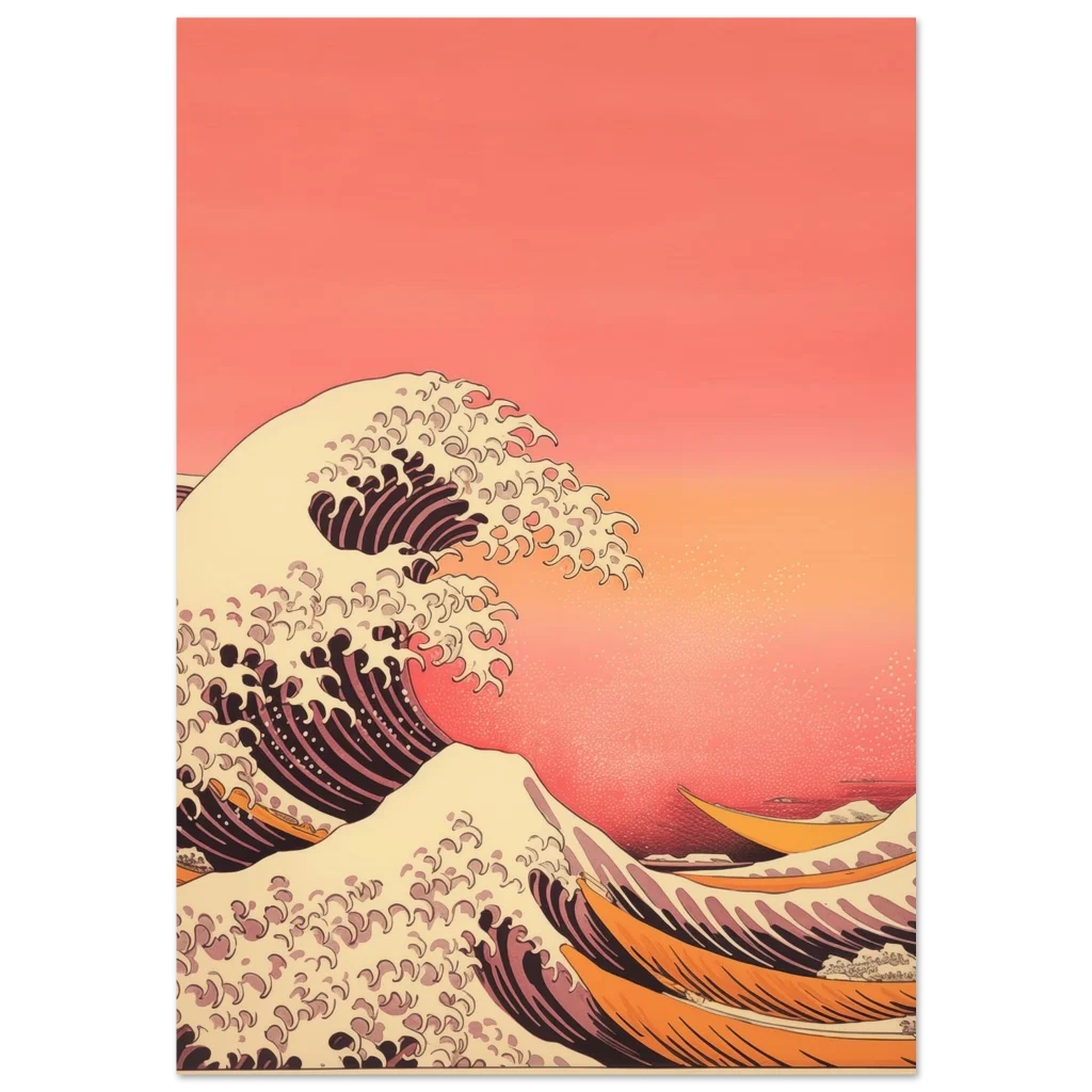 Capture the tranquil power of the ocean with our Coastal Serenity poster, an exquisite piece inspired by classic Japanese wave artistry. Its warm, inviting color palette of sunset oranges, soft creams, and deep corals will infuse any space with a sense of calm and movement, creating a captivating focal point in your home or office.