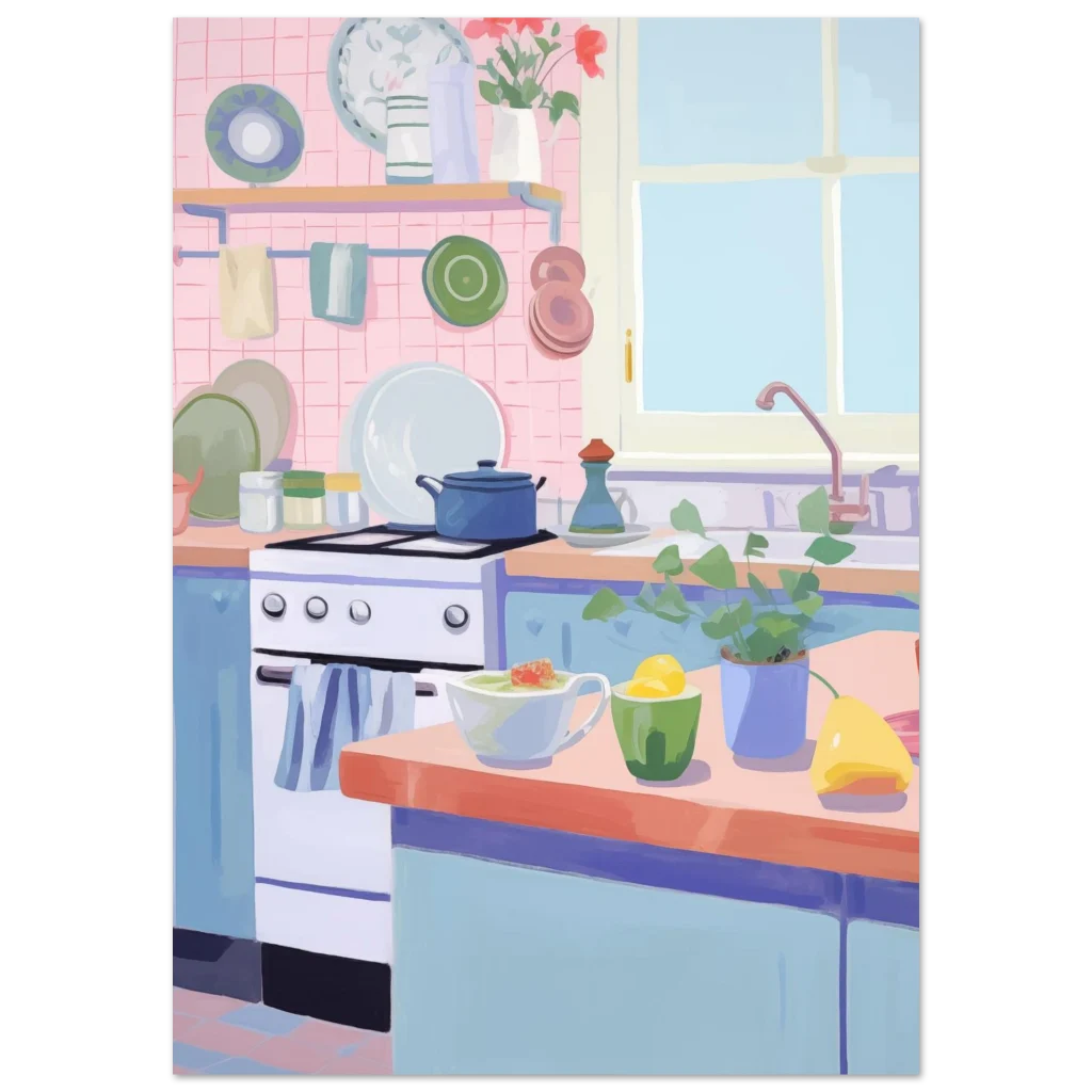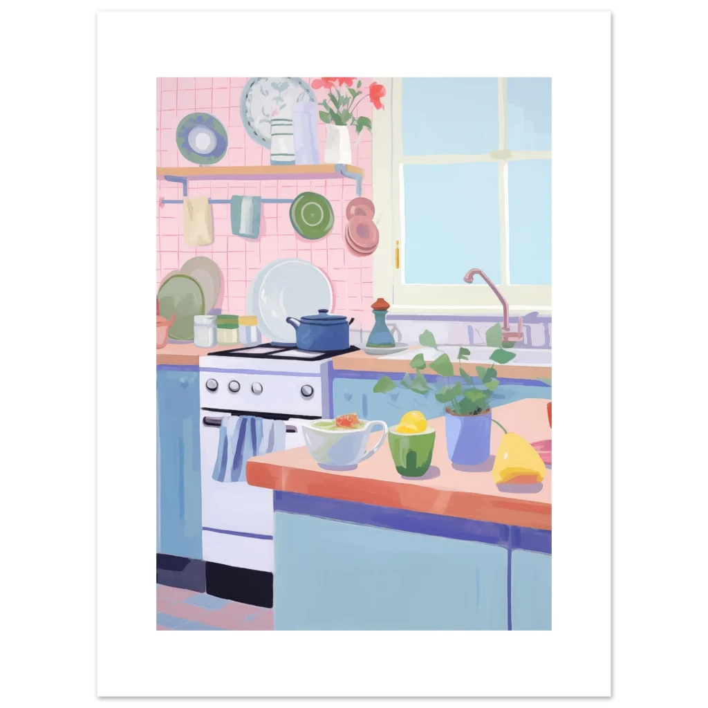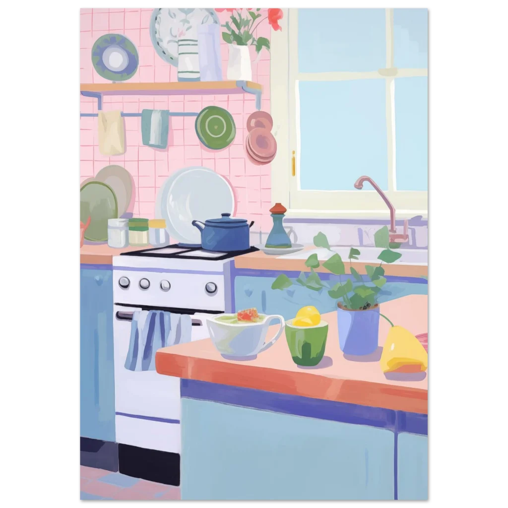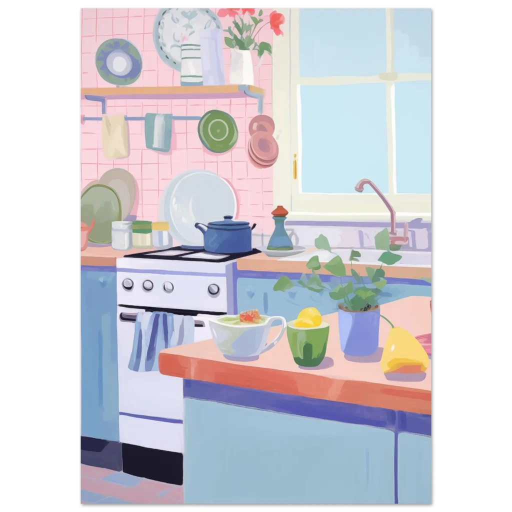 Cozy Pastel Kitchen Scene Poster: Classic Semi-Glossy Art for a Touch of Home Comfort