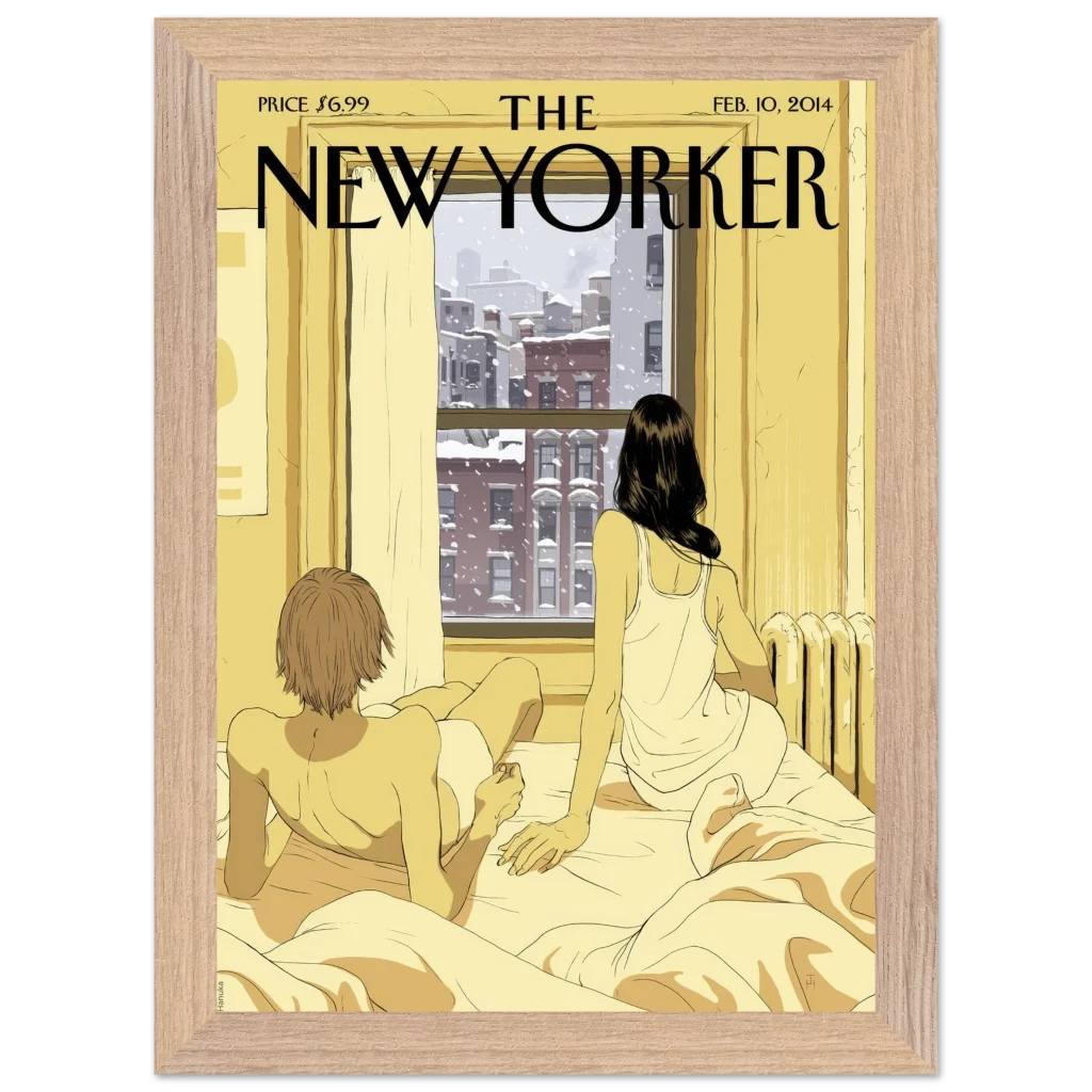 Cozy Winter Morning View Poster – Evocative New Yorker Cover Art Premium Wooden Framed Print for Your Home
