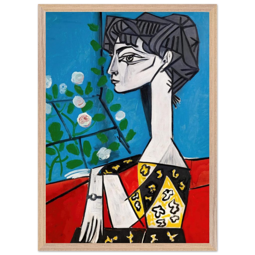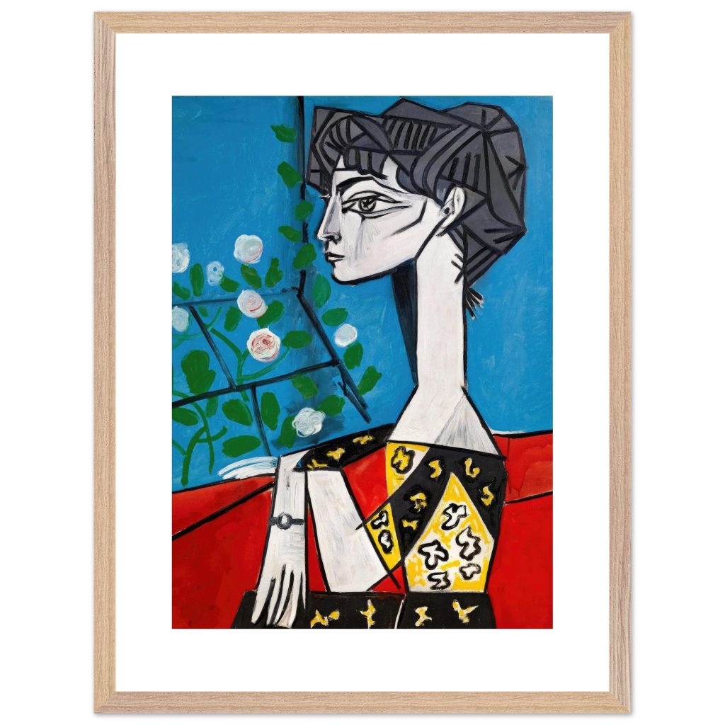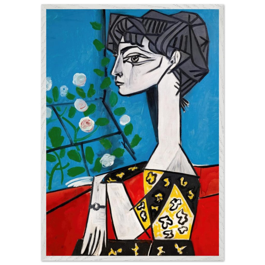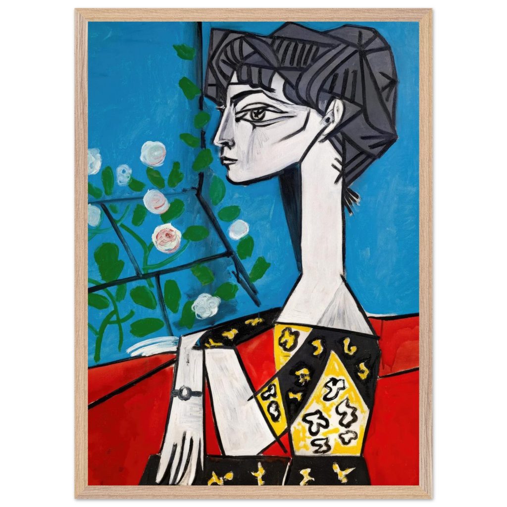 Cubist Portrait with Flowers Poster – Modern Abstract Woman Art Wall Print Wall Art Premium Wooden Framed Poster With Premium Matte Paper