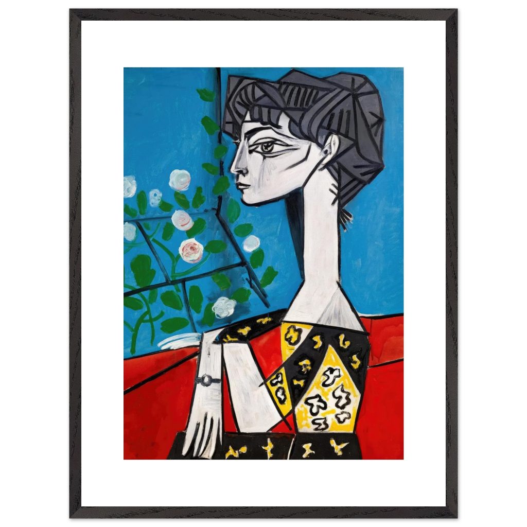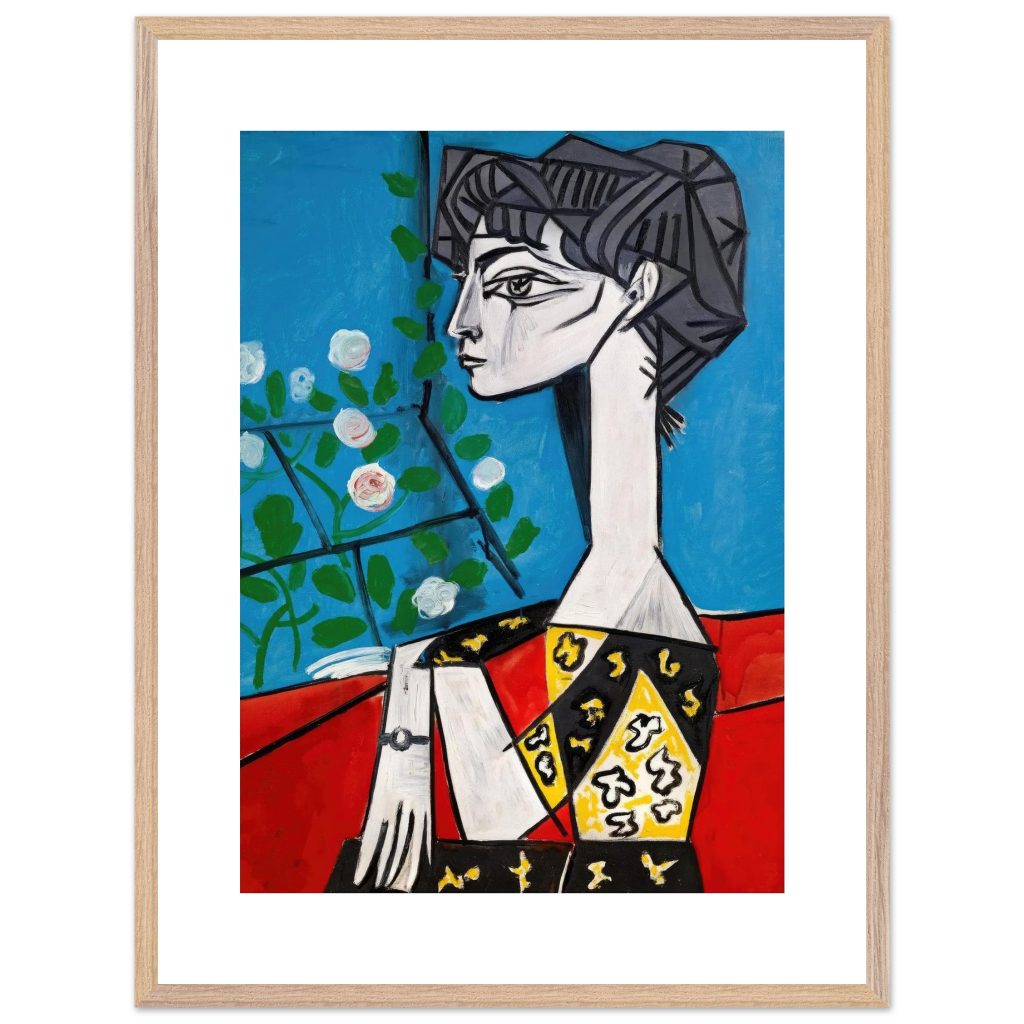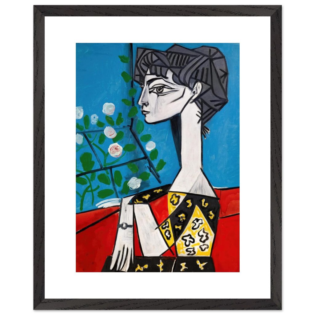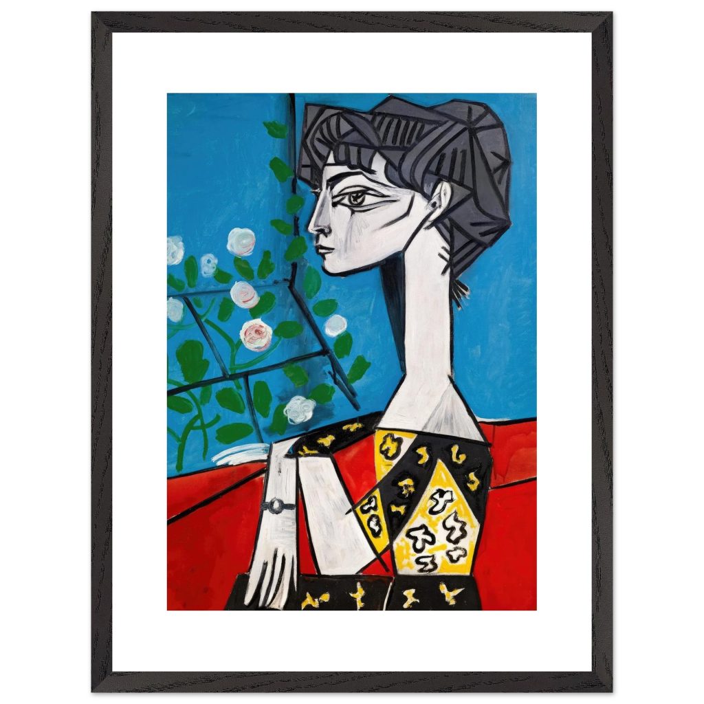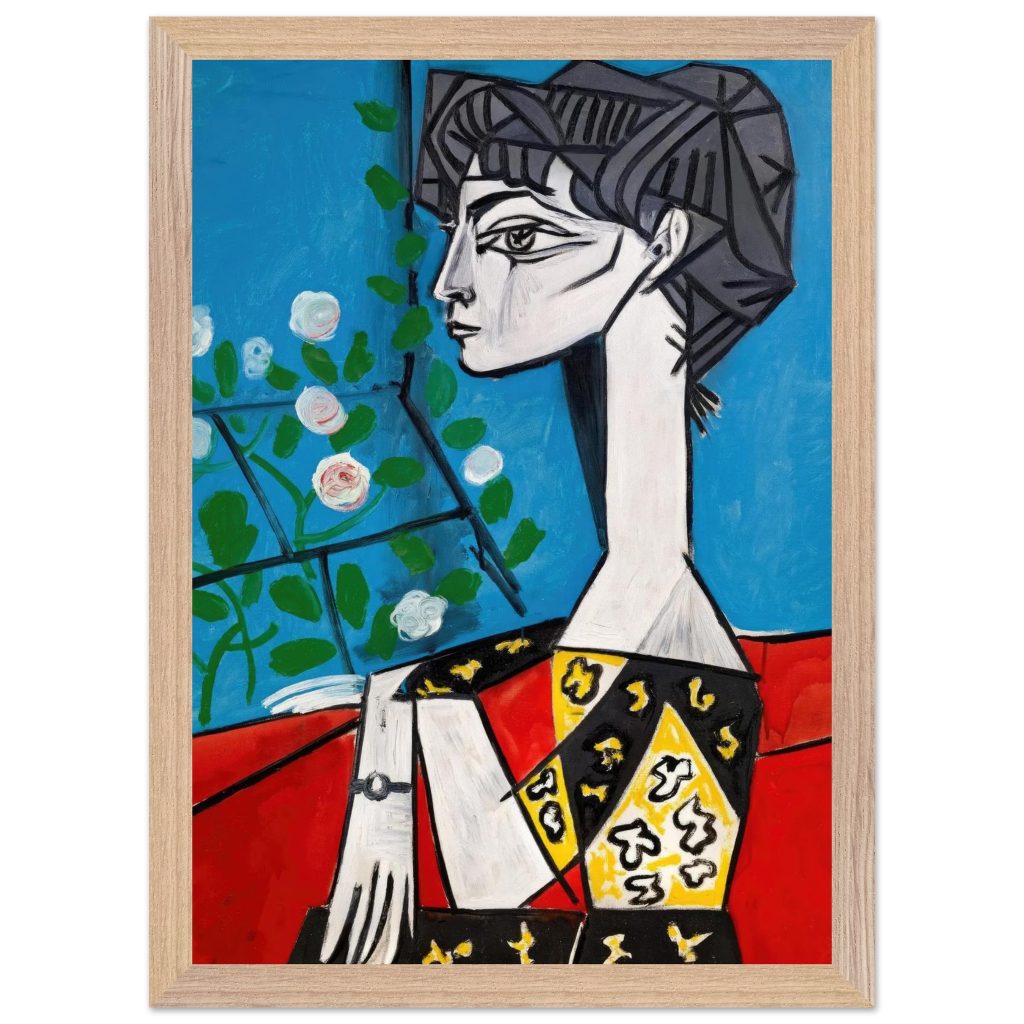 Cubist Portrait with Flowers Poster – Modern Abstract Woman Art Wall Print Wall Art Premium Wooden Framed Poster With Premium Matte Paper