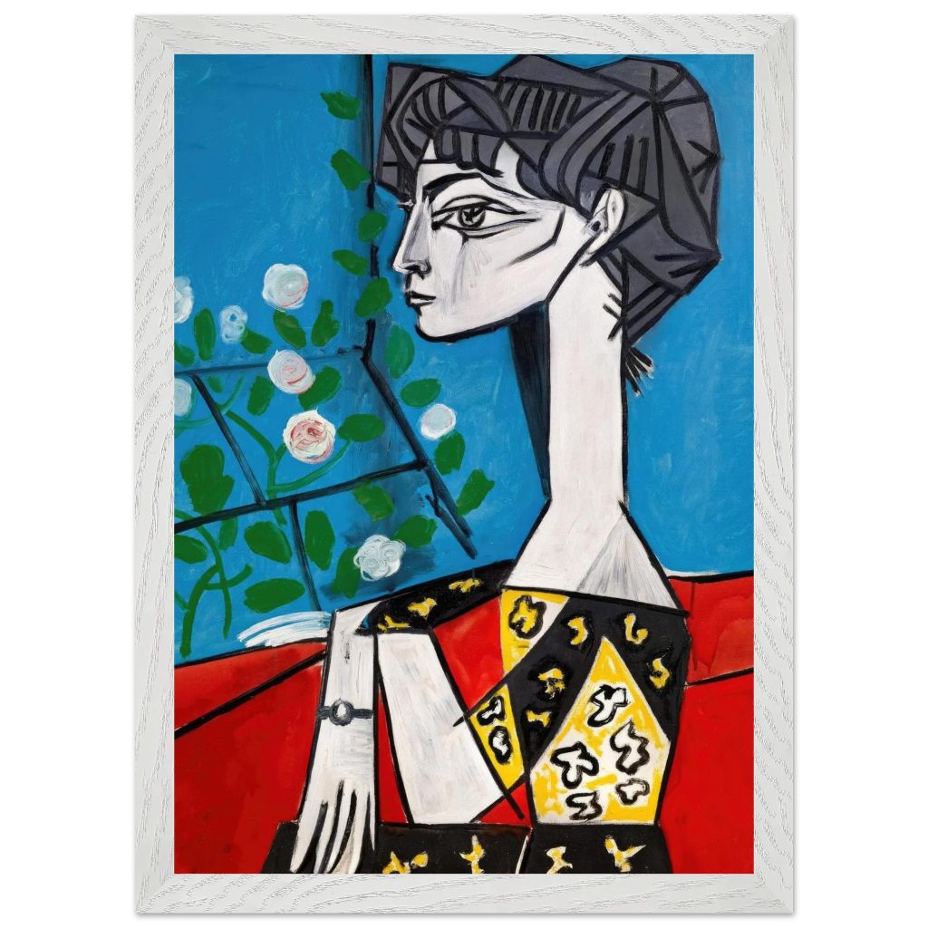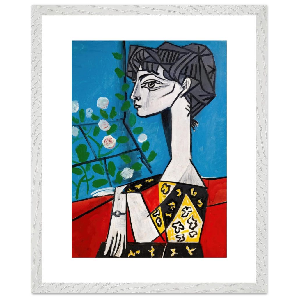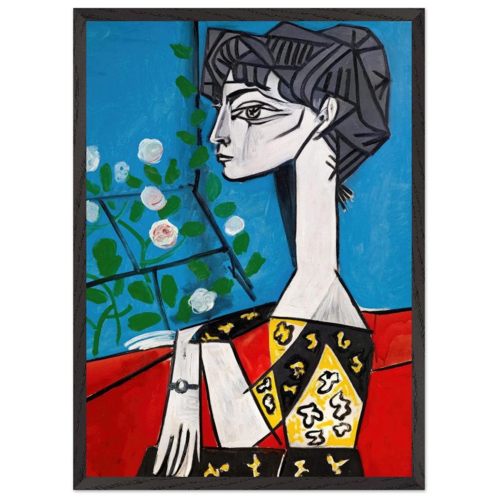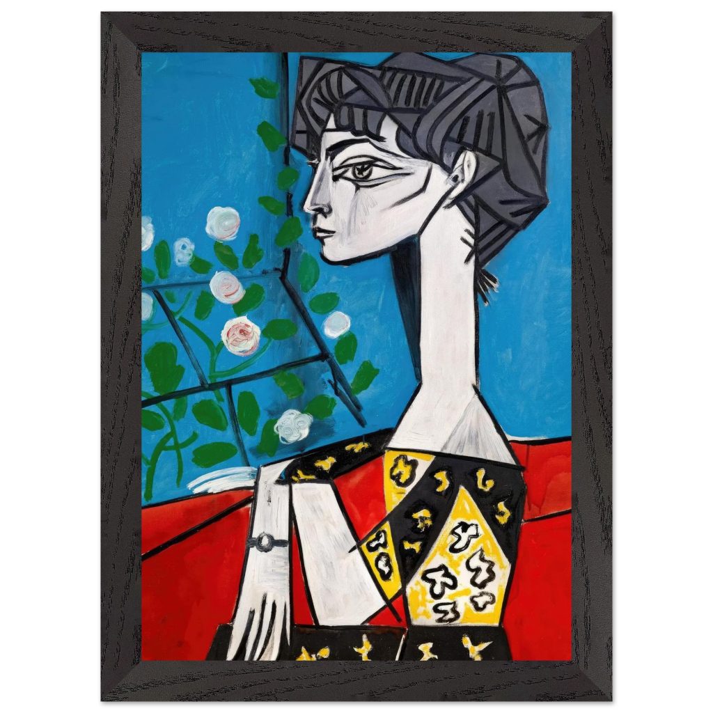 Cubist Portrait with Flowers Poster – Modern Abstract Woman Art Wall Print Wall Art Premium Wooden Framed Poster With Premium Matte Paper