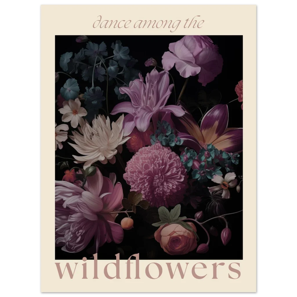 “Dance Among the Wildflowers” Poster – Dark Floral Elegance on Premium Matte Paper, in your choice of six sizes