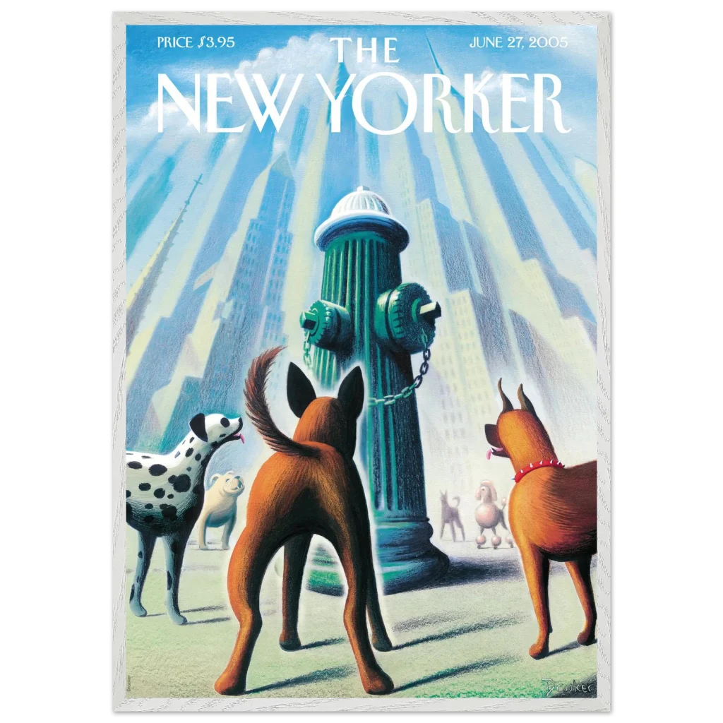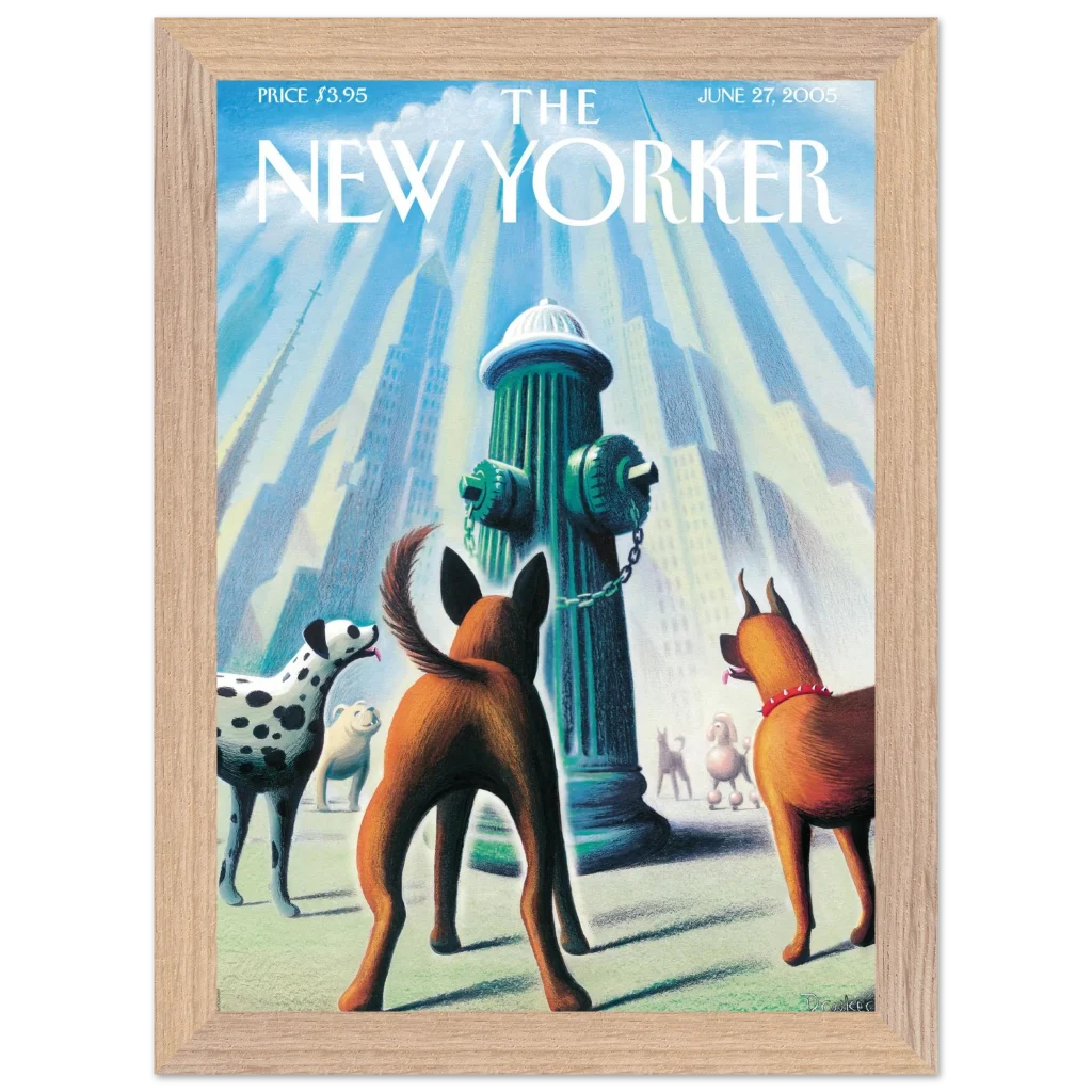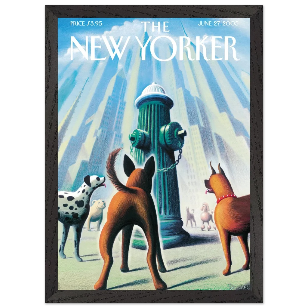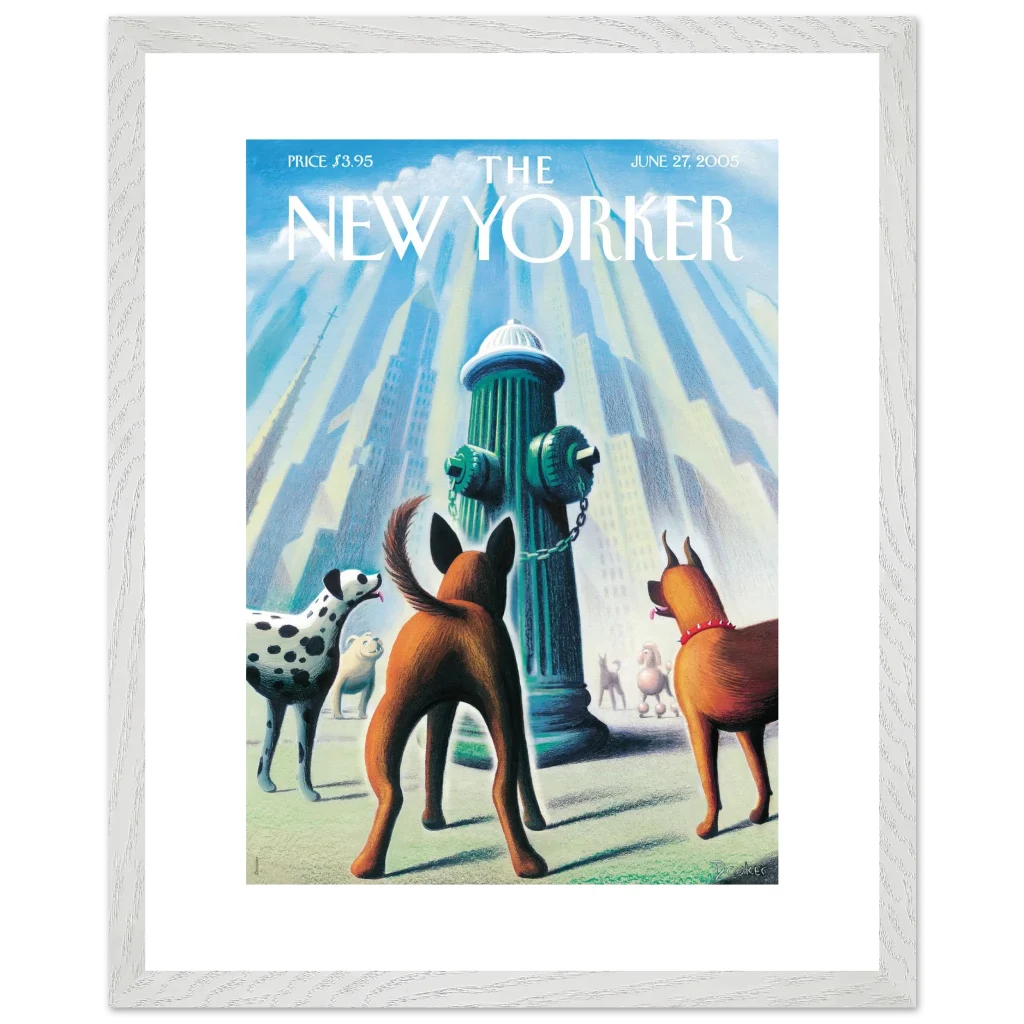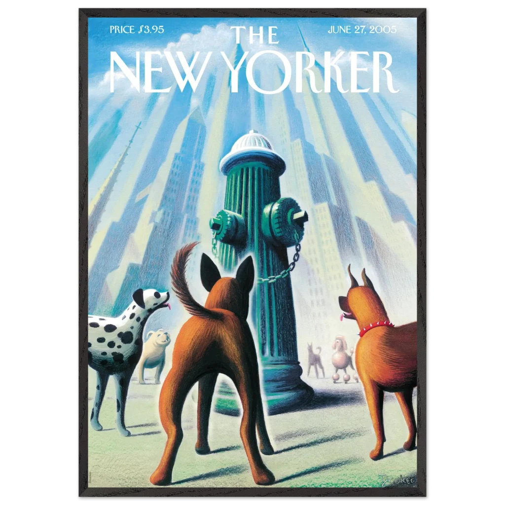 Capture the whimsical spirit of a “Dog Day Afternoon” with this delightful New Yorker cover art. Featuring an array of charming canines captivated by a vibrant green fire hydrant against a dynamic blue and green cityscape, this print brings a touch of urban joy and playful energy to any space. It’s perfect for dog lovers and anyone who appreciates a unique blend of sophisticated style and heartwarming humor.