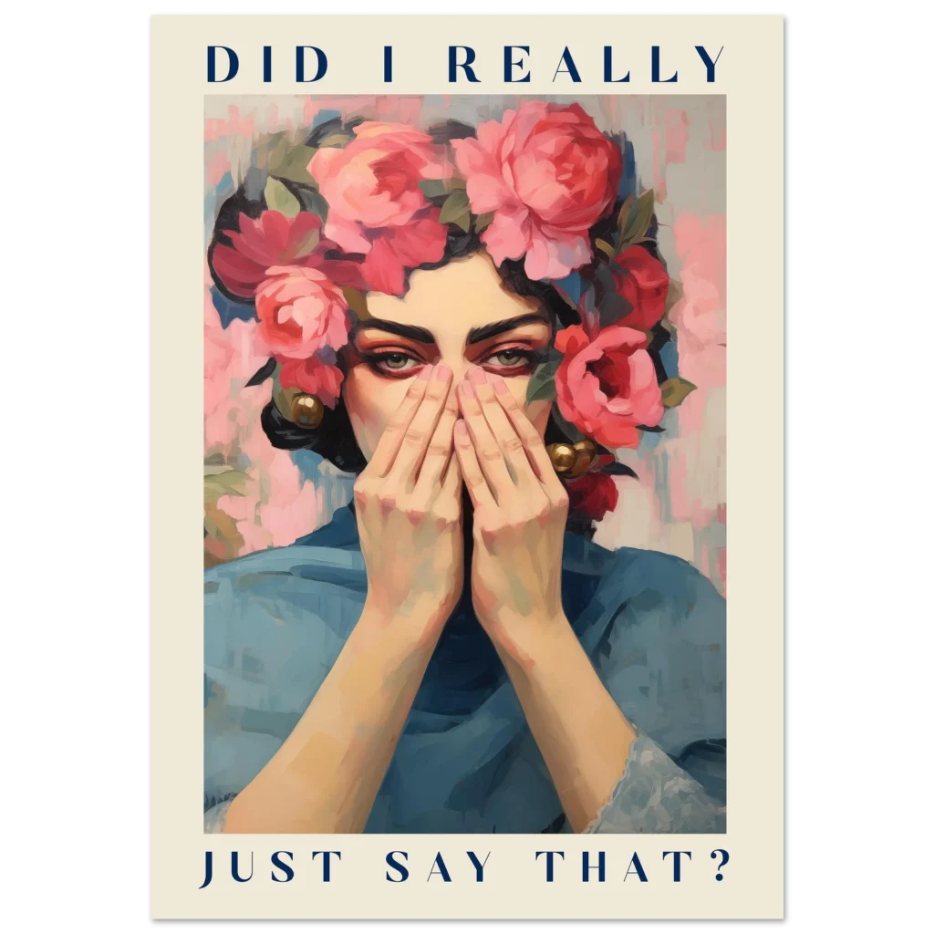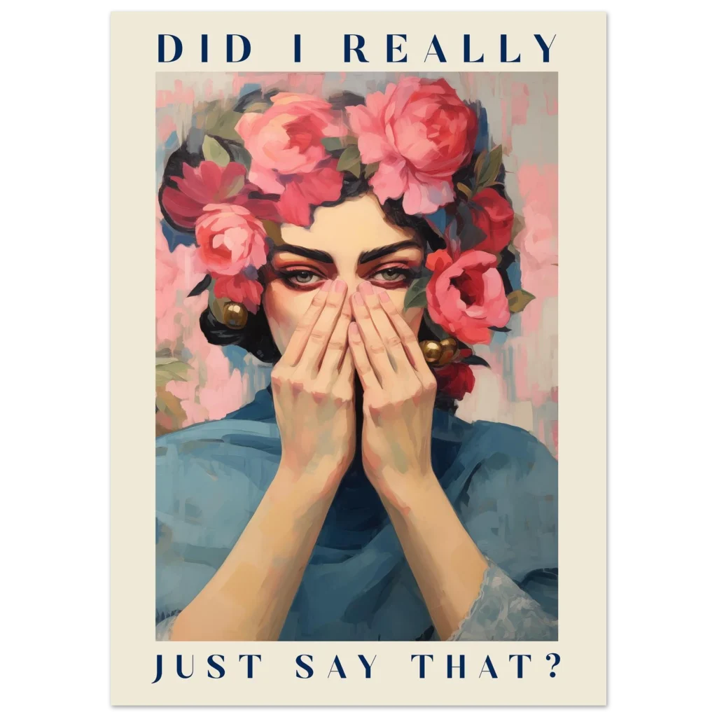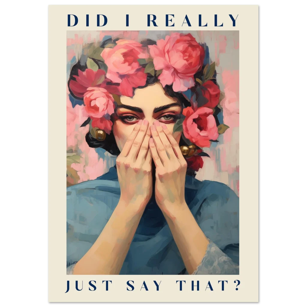 Dramatic Floral Portrait Poster: ‘Did I Really Just Say That?’ – Classic Semi-Glossy Art Print
