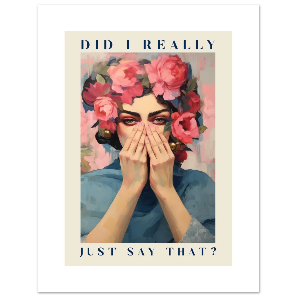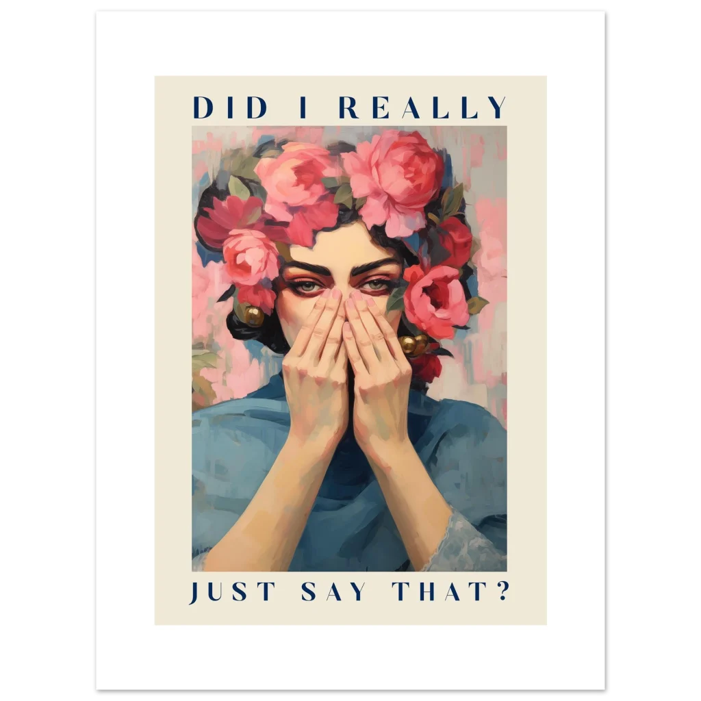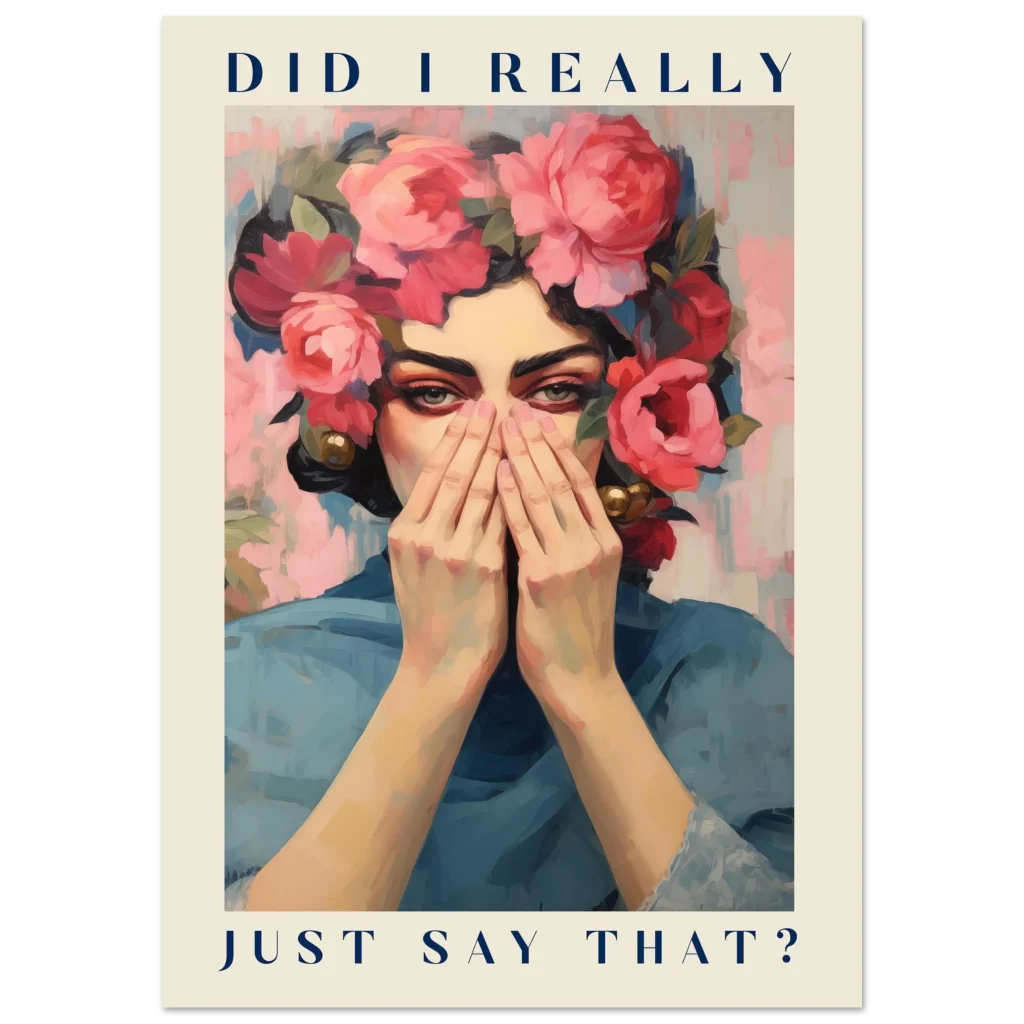 Dramatic Floral Portrait Poster: ‘Did I Really Just Say That?’ – Classic Semi-Glossy Art Print