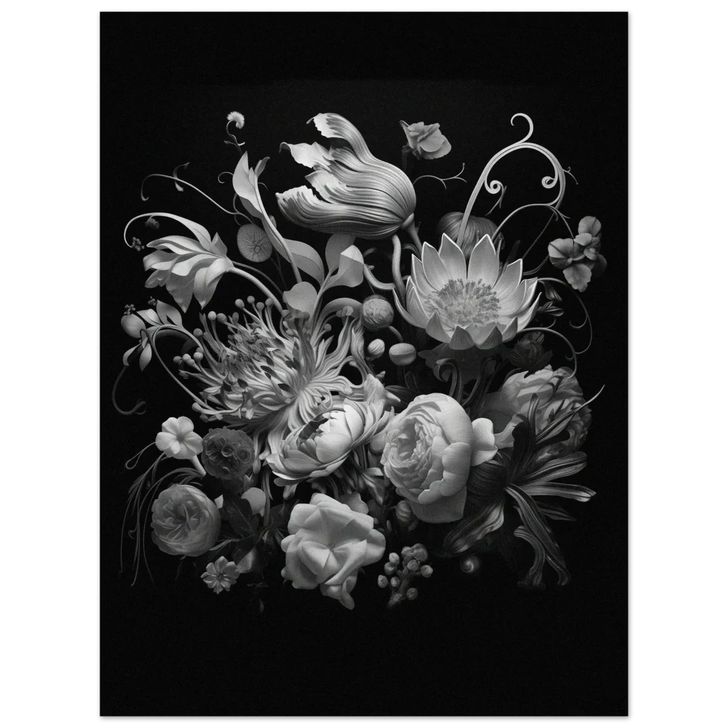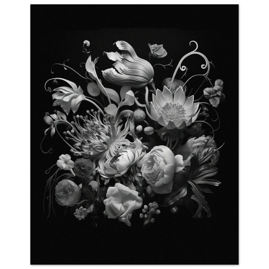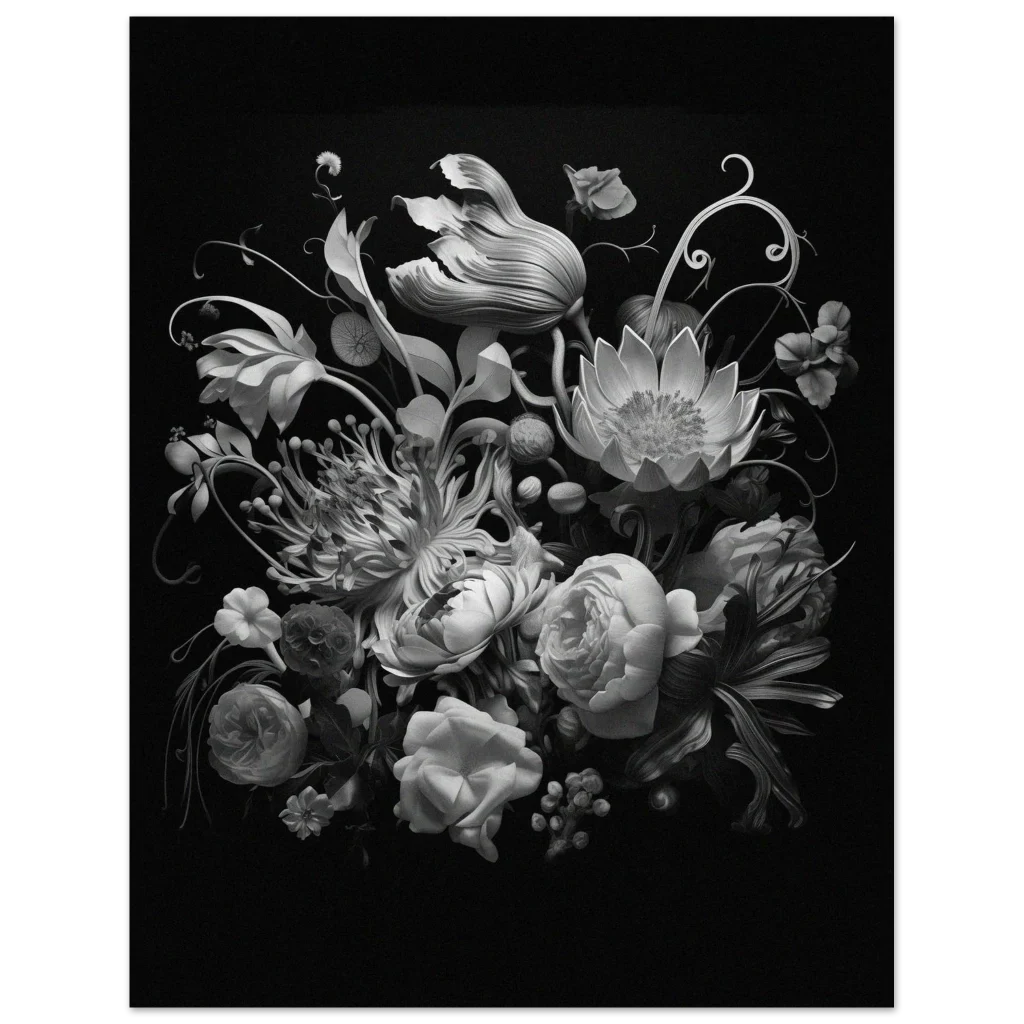 Dramatic Monochromatic Floral Bouquet – Premium Matte Paper Poster