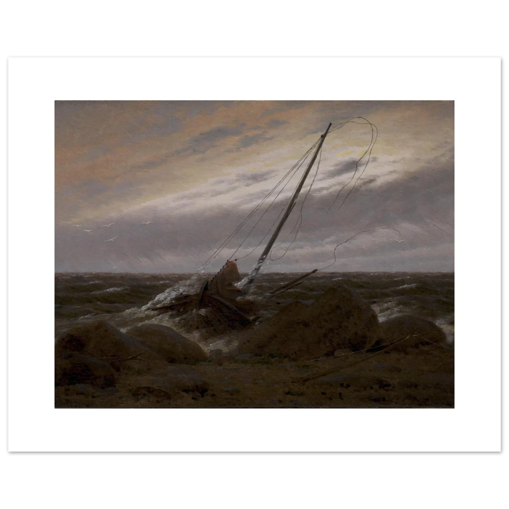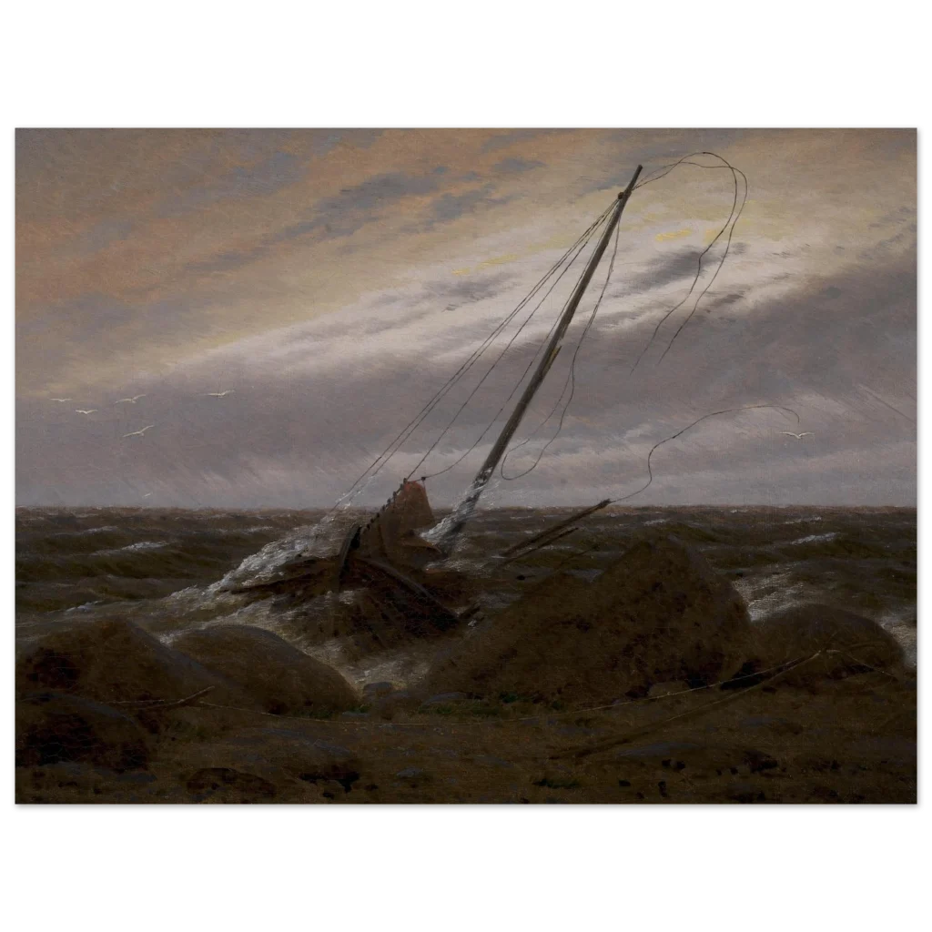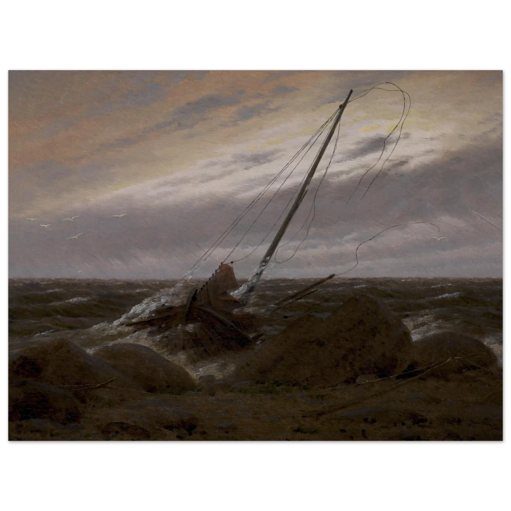 Capture the raw power and evocative beauty of the sea with our “Dramatic Shipwreck at Sunset” poster. This piece brings a sense of historical depth and poignant narrative to any space, featuring a classic, stormy seascape rendered with a rich, subdued color palette that enhances its dramatic impact. It’s an ideal choice for art lovers seeking a statement piece with an old-world charm and a story to tell.