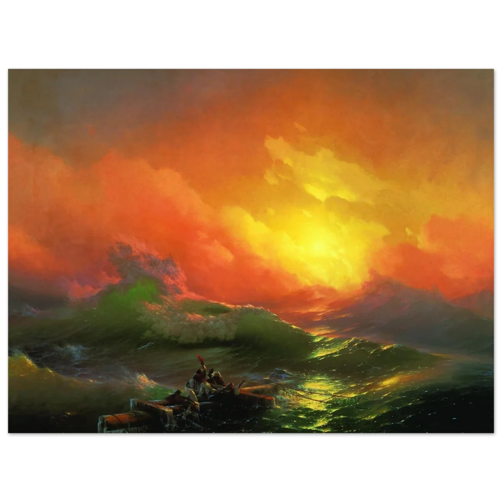 Immerse yourself in the breathtaking drama of the open sea with our ‘Dramatic Sunset Seascape’ Premium Matte Paper Poster. This captivating artwork, reminiscent of classic Romanticism, captures the raw power and beauty of a storm-tossed ocean under a fiery, golden-orange sky. The vibrant hues and dynamic composition will infuse any room with a sense of adventure and profound natural wonder, making it a stunning focal point for art lovers and dreamers alike.