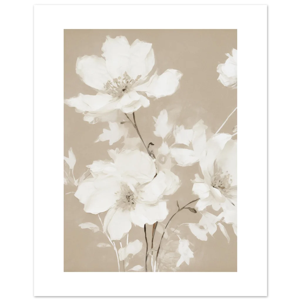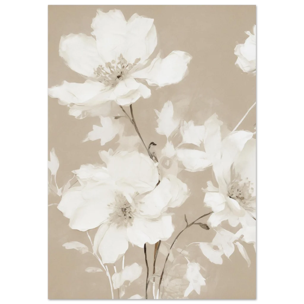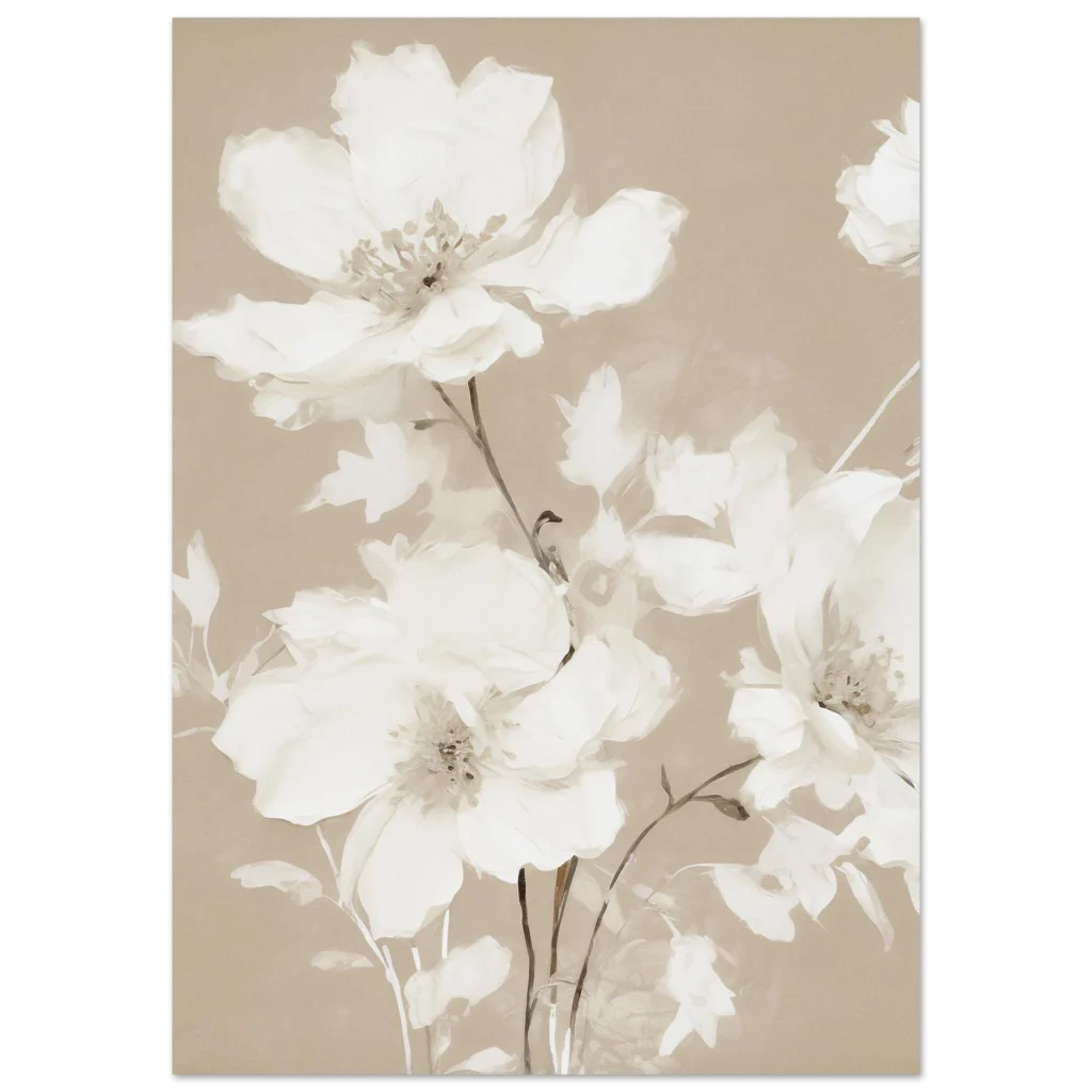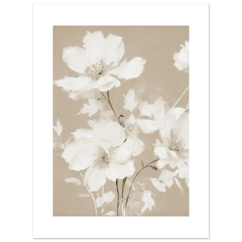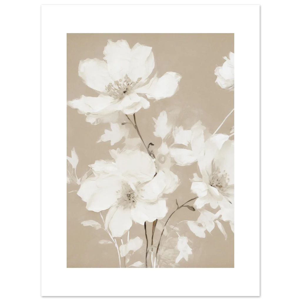 Dreamy Beige Floral Elegance Poster | Premium Matte Paper Art Print in Multiple Sizes