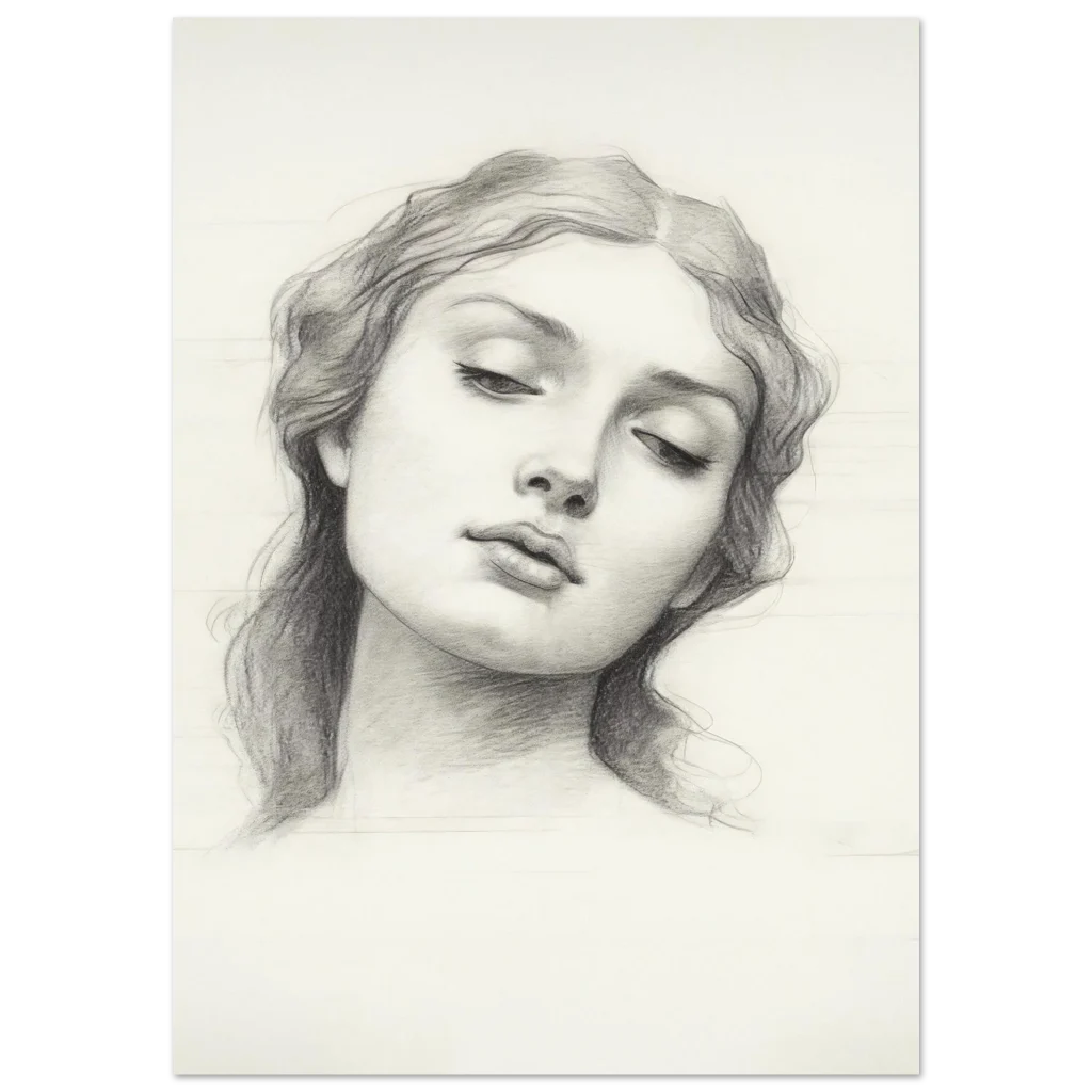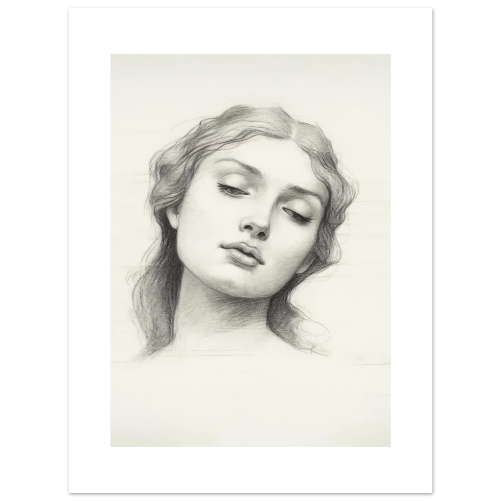 Dreamy Classical Portrait Pencil Sketch Premium Matte Paper Poster
