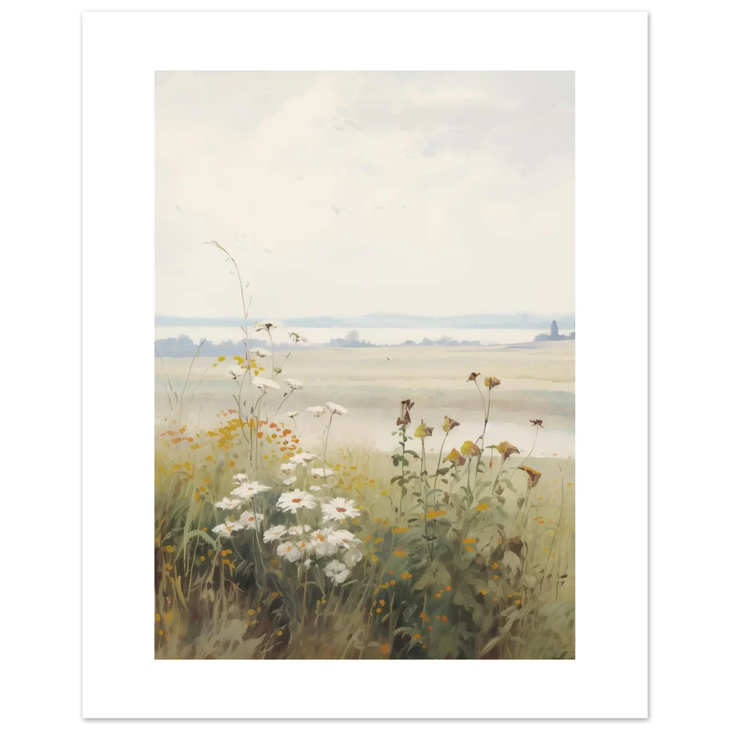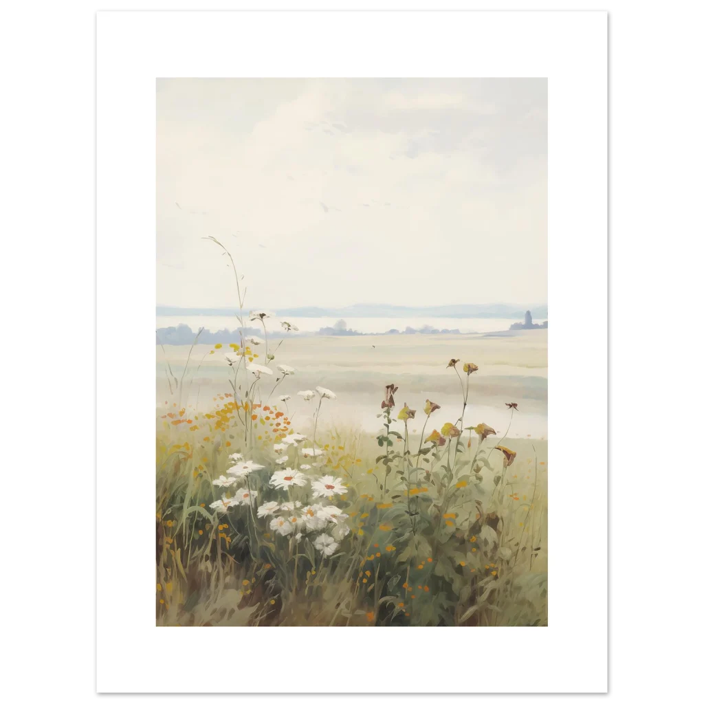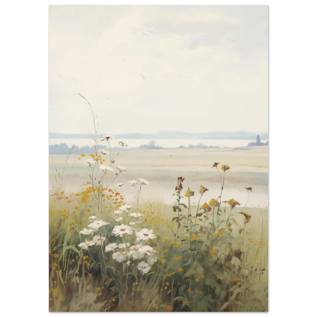 Capture the serene beauty of a peaceful morning with our Dreamy Meadow Morning poster. This enchanting artwork, inspired by soft, natural hues and delicate wildflowers, brings a calming touch to any space. Imagine waking up to a misty field, where the first light gently illuminates daisies and wild grasses, creating an atmosphere of tranquility and gentle awakening.
