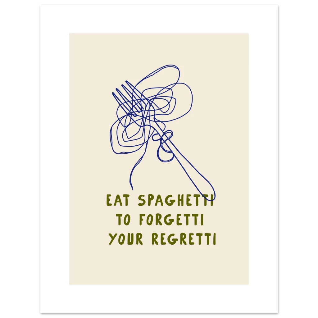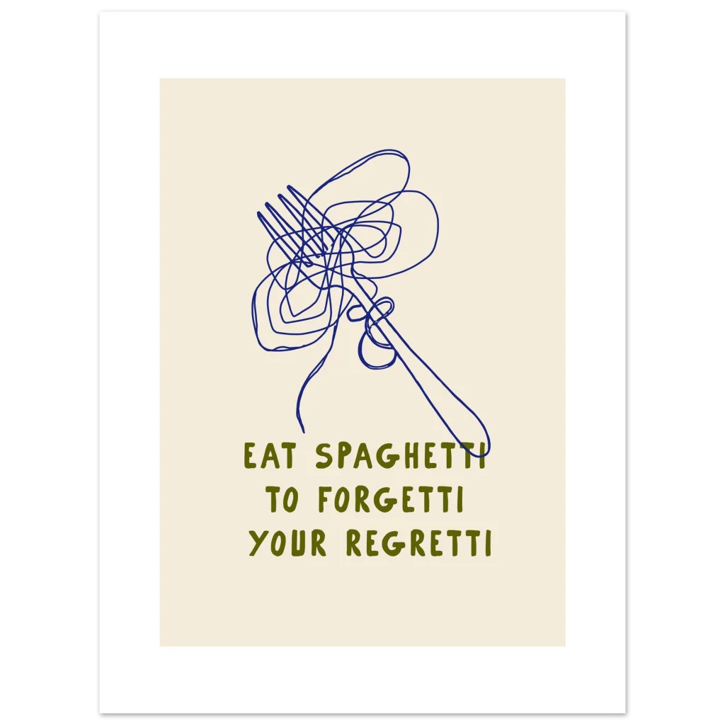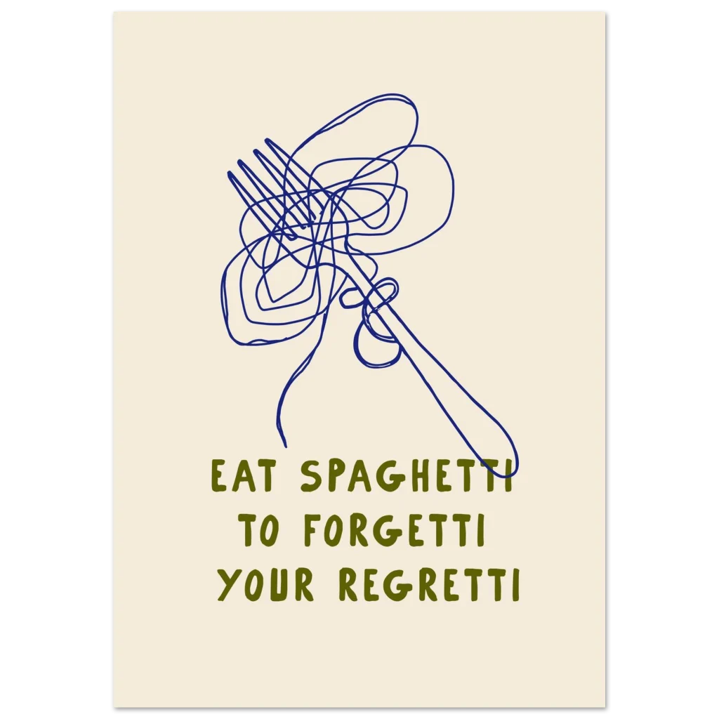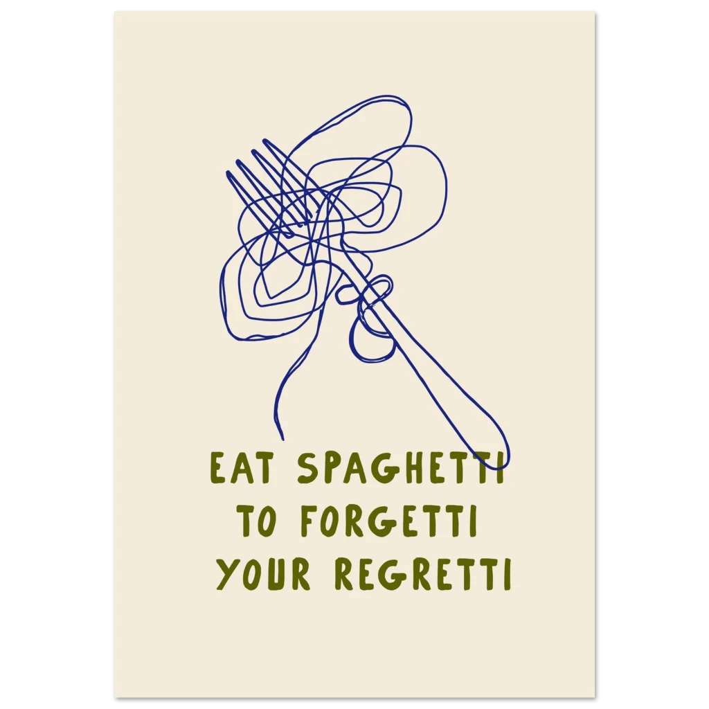 Eat Spaghetti to Forgetti Your Regretti – Whimsical Kitchen Art Poster