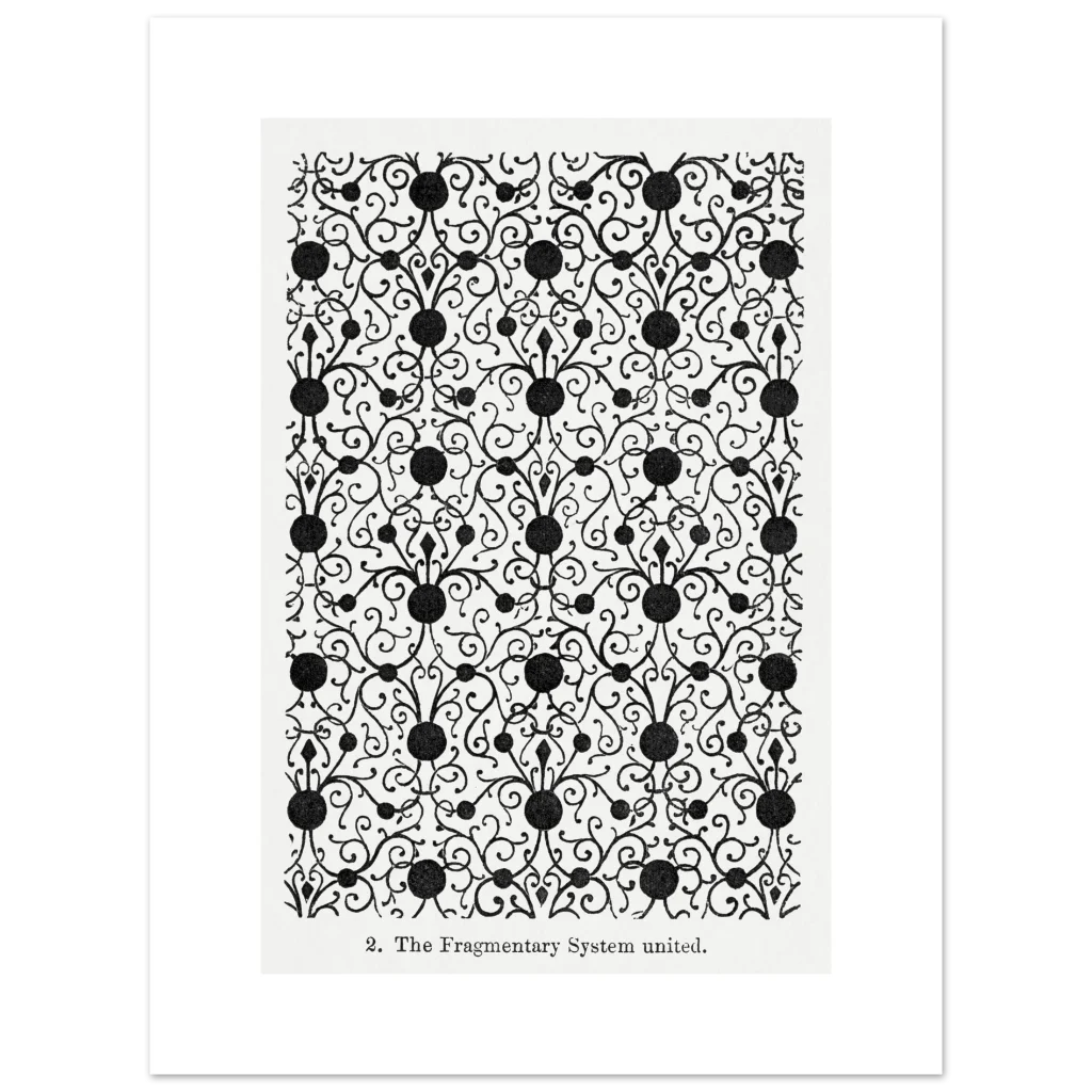 Bring timeless sophistication to your space with our Elegant Fragmentary System Floral Pattern Poster. This exquisite piece, inspired by classic ornamental design, features intricate black floral and scrollwork on a pristine white background. It’s a perfect blend of historical artistry and contemporary appeal, ideal for adding a touch of refined elegance to any room.