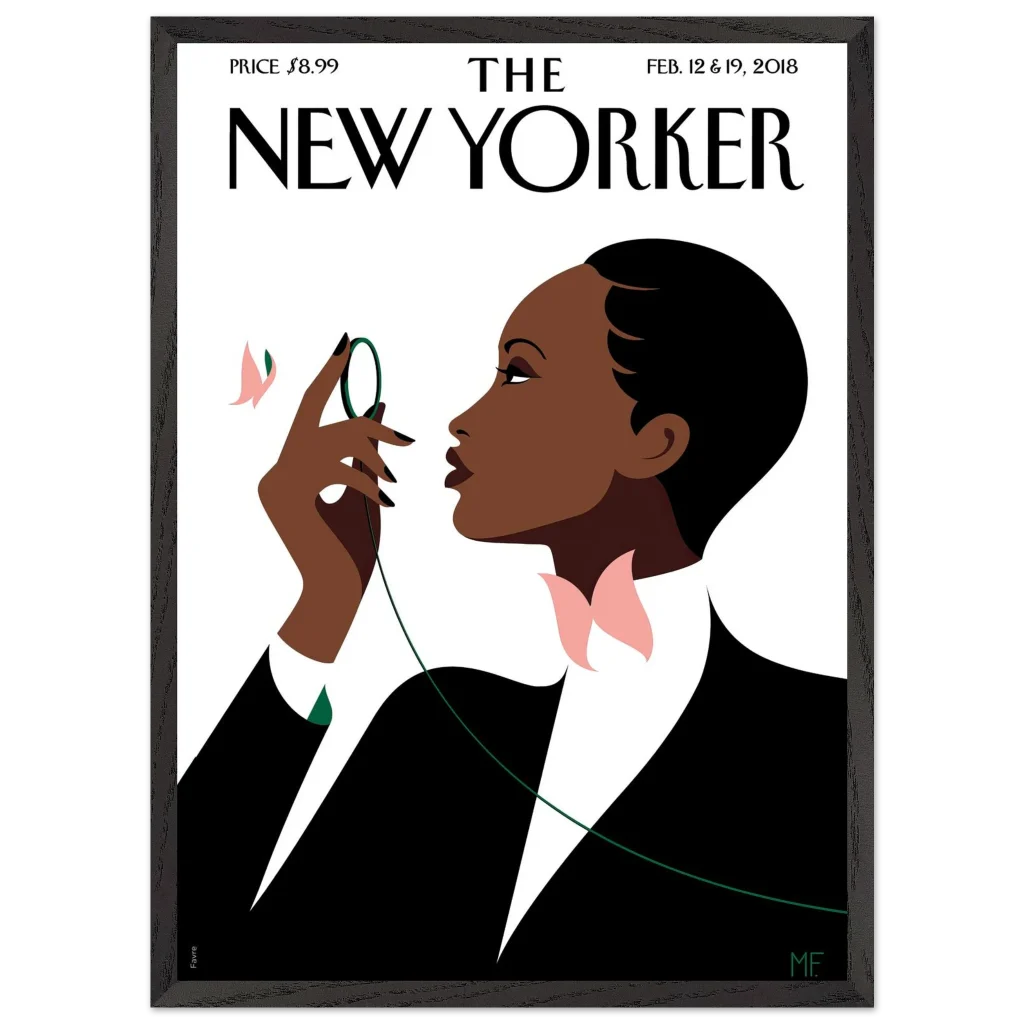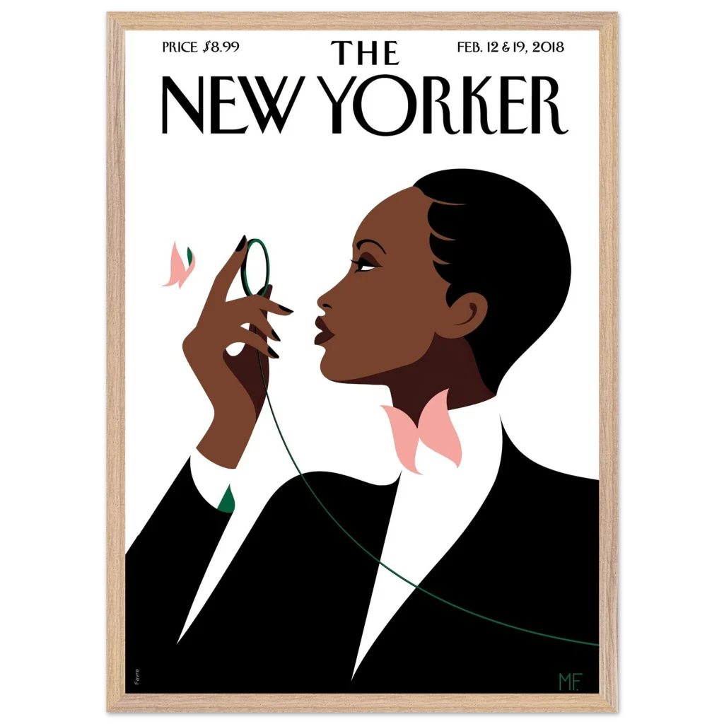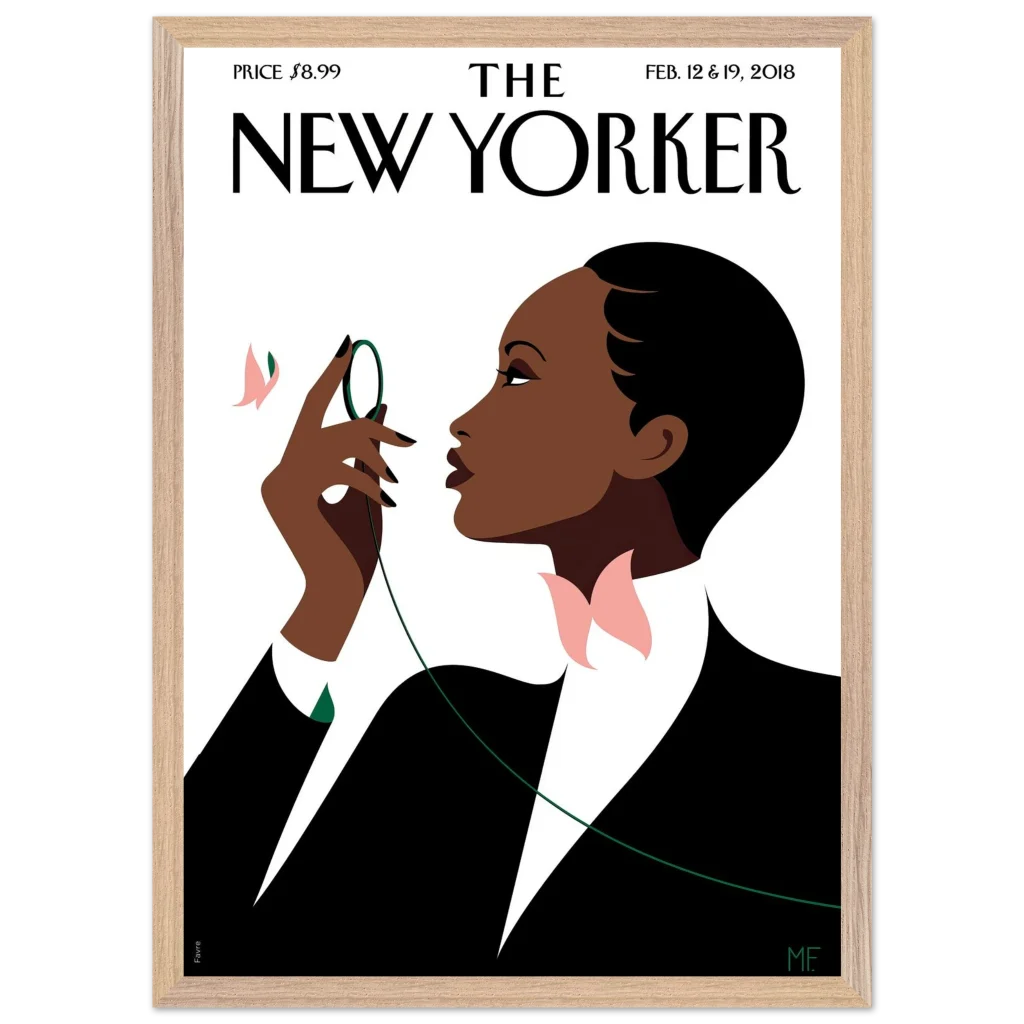 Capture the sophisticated allure of the Art Deco era with our Elegant Noir framed poster. This stunning piece, inspired by the timeless covers of The New Yorker, features a graceful figure adorned with subtle butterfly motifs, bringing a touch of refined beauty and minimalist charm to any space. Perfect for art enthusiasts and those with an eye for classic elegance, this poster is a statement of understated luxury.