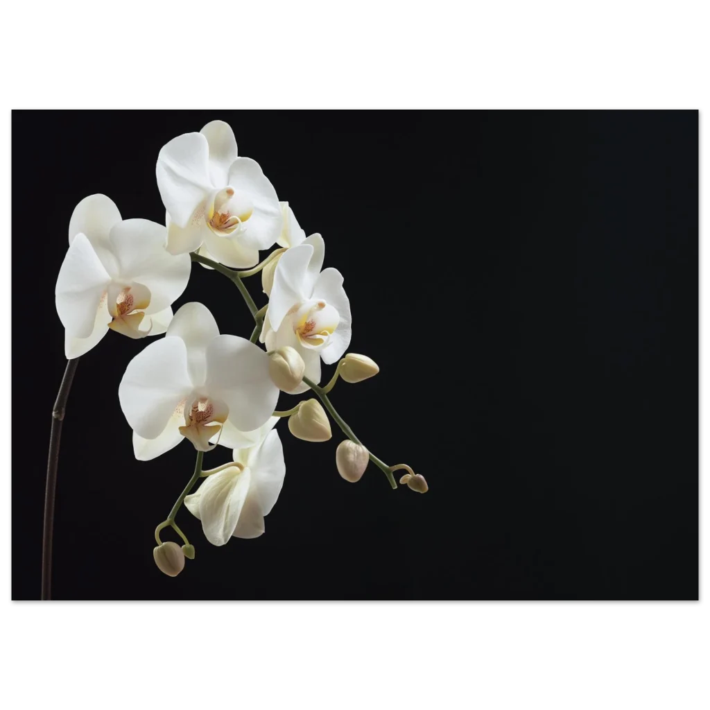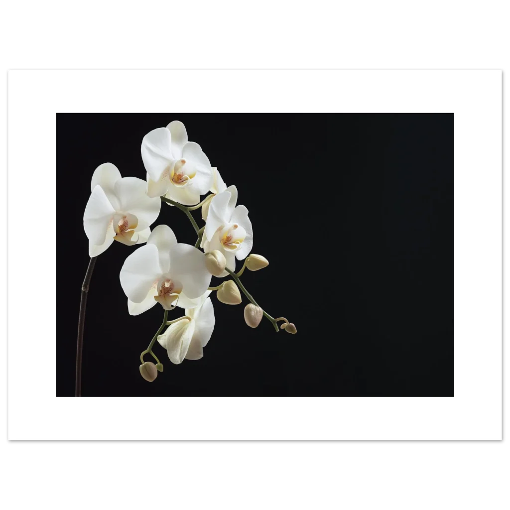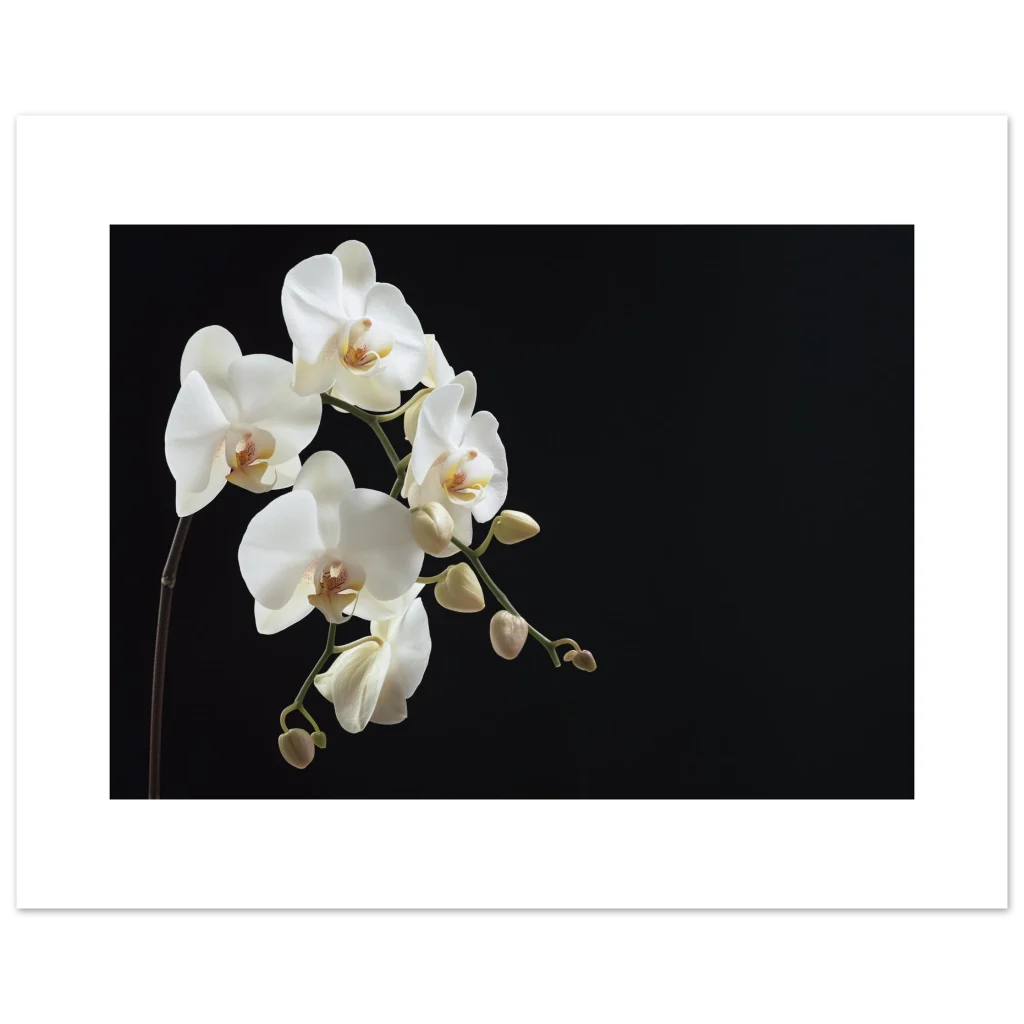 Bring the timeless elegance of nature into your home with this exquisite white orchid poster. The delicate petals and graceful form, set against a dramatic dark background, create a striking visual that exudes calm and sophistication. Perfect for adding a serene yet luxurious touch to any room, this artwork captures the pure beauty of a blooming orchid in stunning detail.