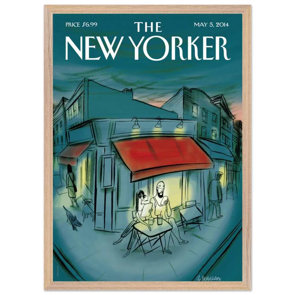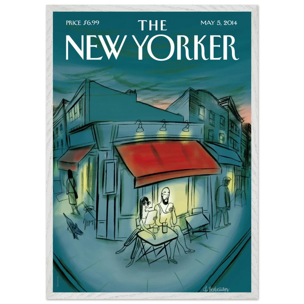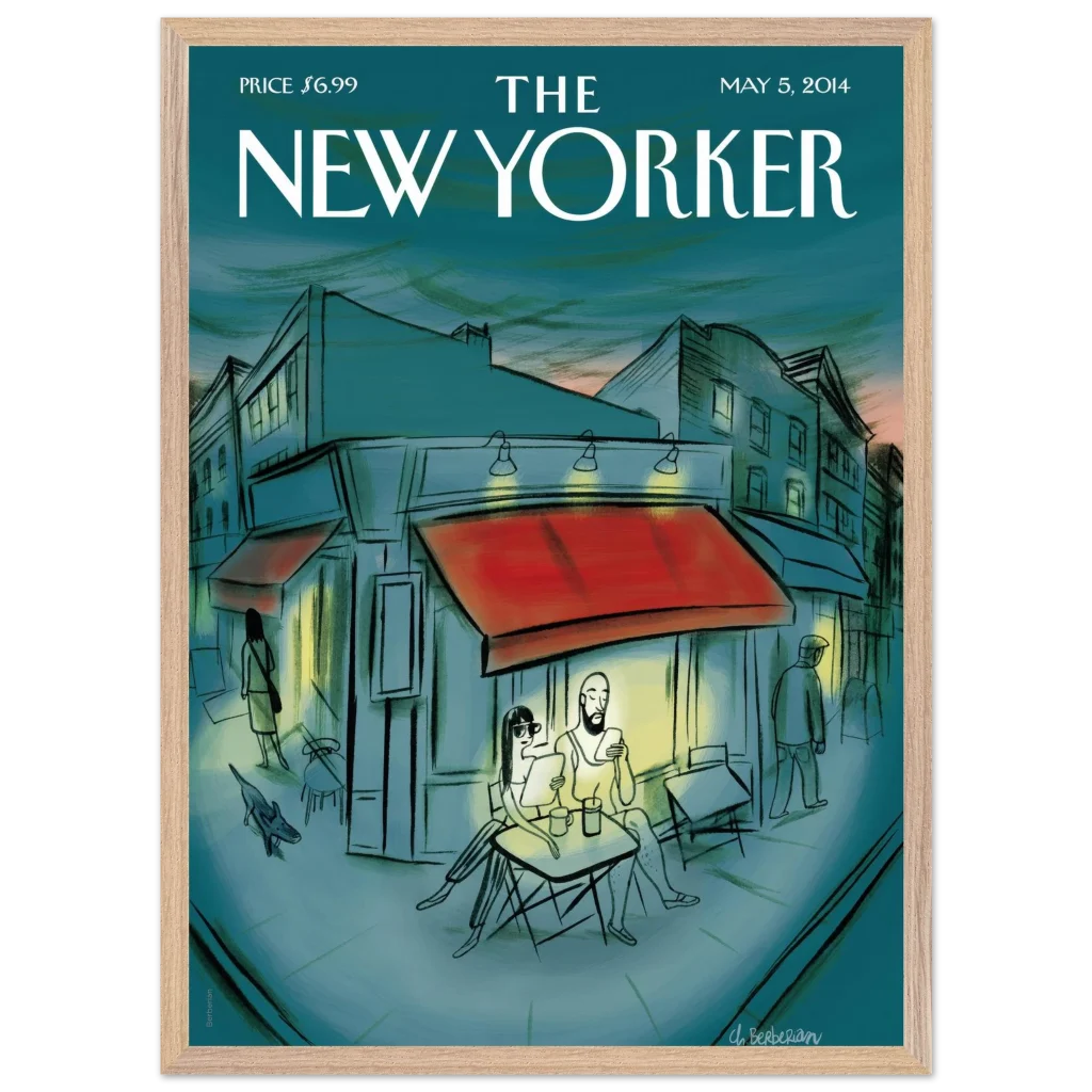 Evening Coffee Vibe Poster – Urban Cafe Scene Wall Art in Pop Art-Inspired Line Illustration with Premium Wooden Frame