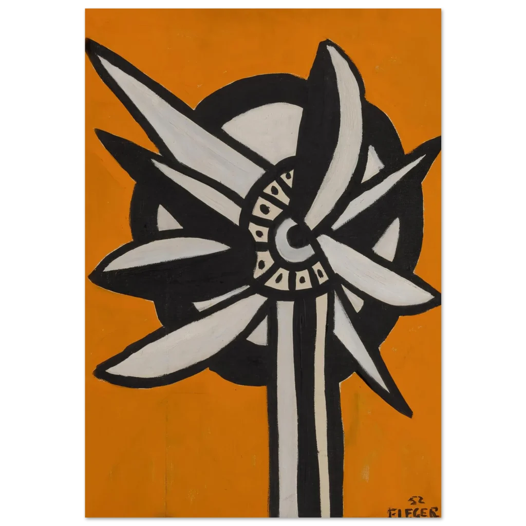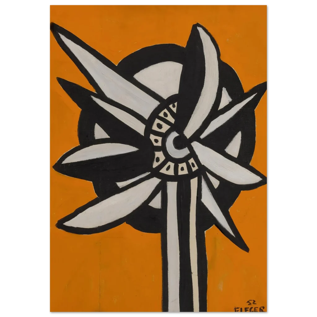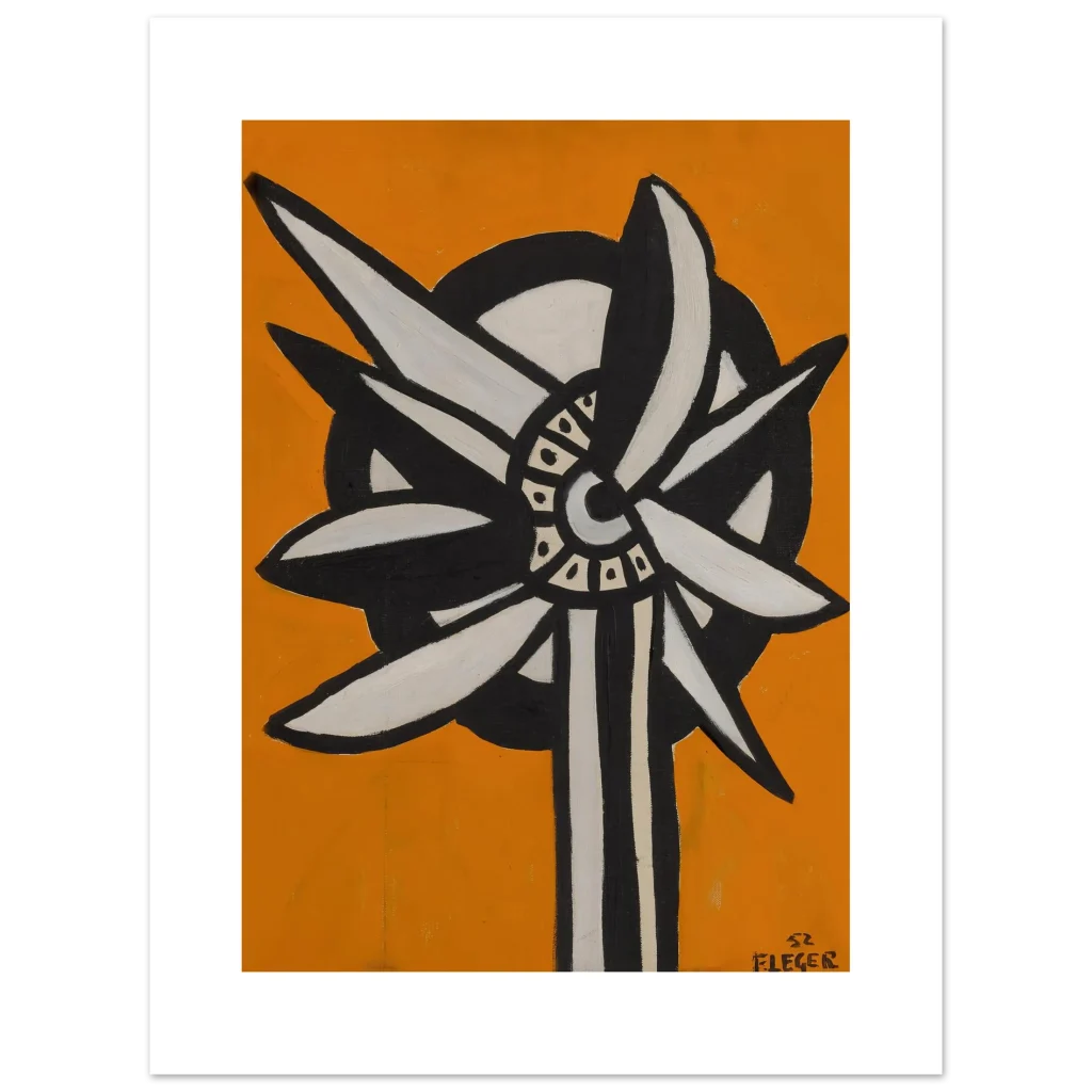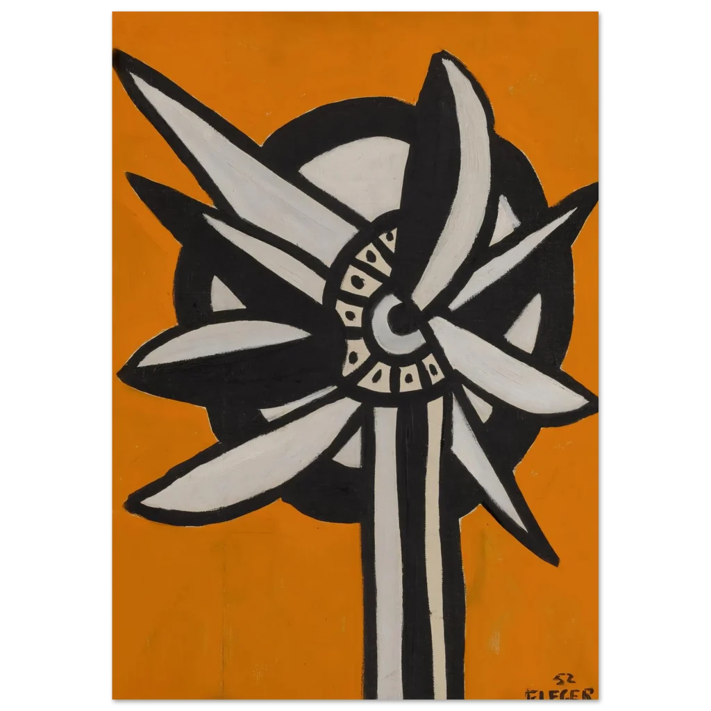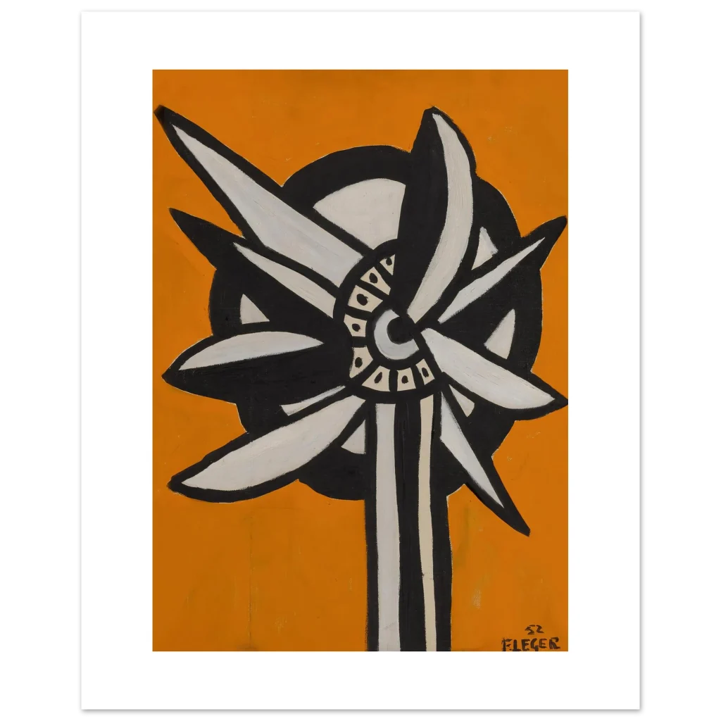 Fernand Léger Abstract Floral Art Print: Vibrant Orange, Black & White Premium Matte Poster