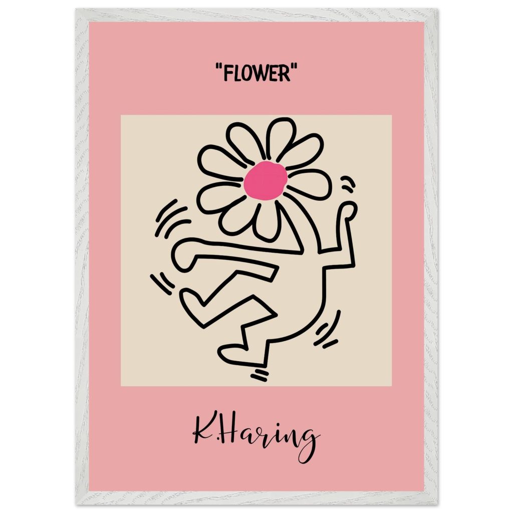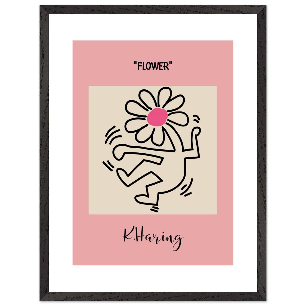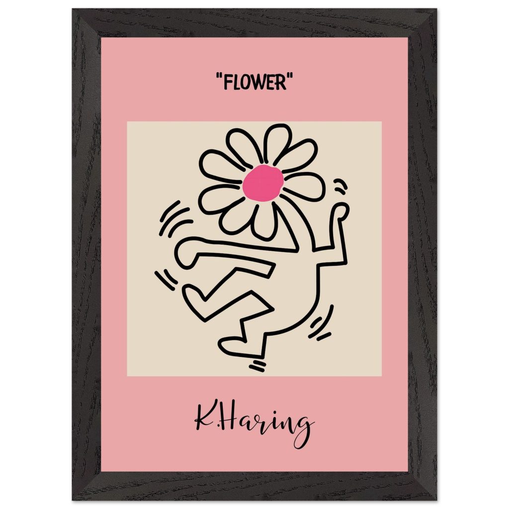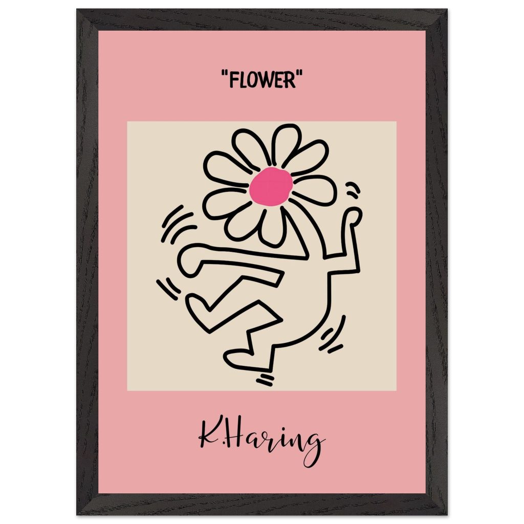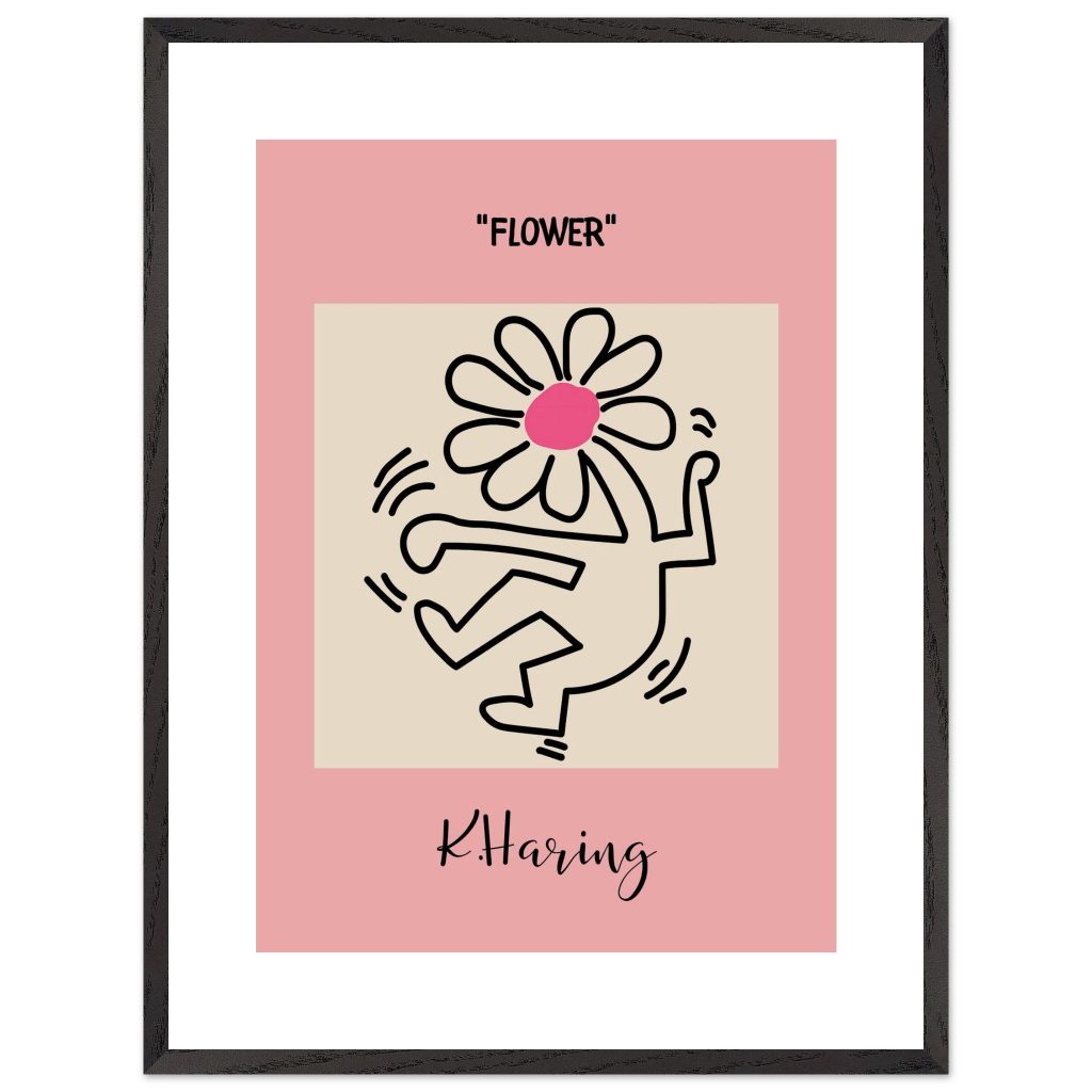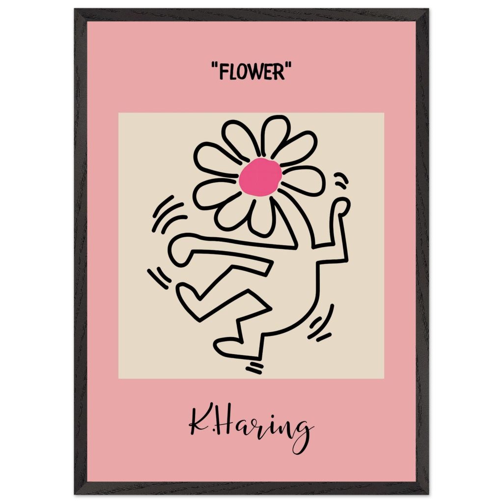 Add playful energy and creative expression to your space with this Flower poster, inspired by iconic pop art and bold line illustration. Featuring a joyful dancing figure topped with a vibrant flower, this artwork symbolizes freedom, creativity, and positive movement. The soft pink background combined with strong black lines makes it a standout piece for modern interiors, bedrooms, studios, kids’ rooms, or gallery walls. Perfect for art lovers, design enthusiasts, and anyone who appreciates expressive, feel-good wall décor.