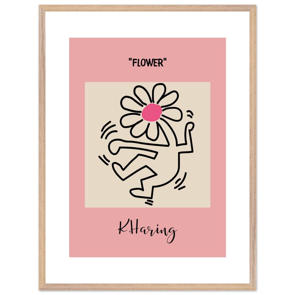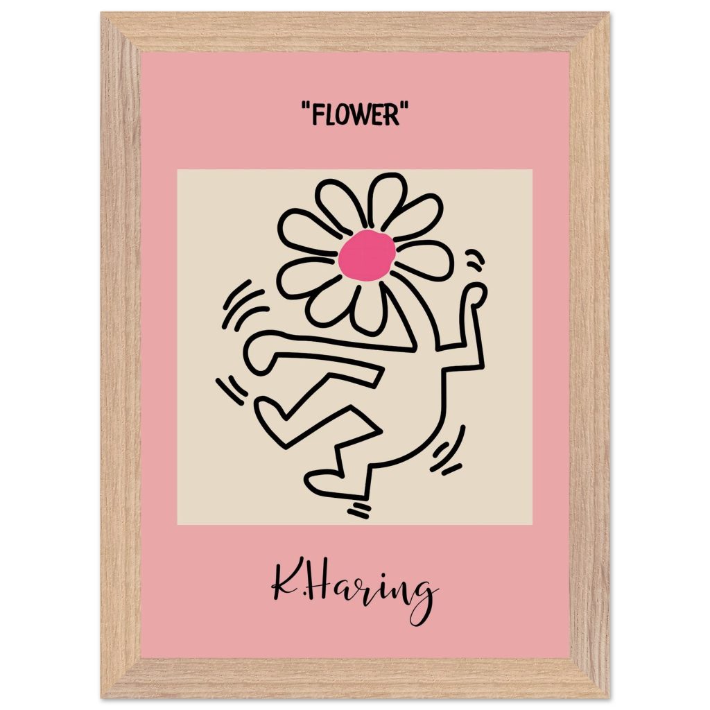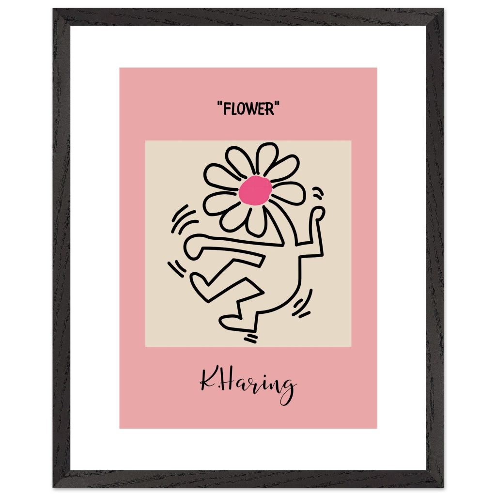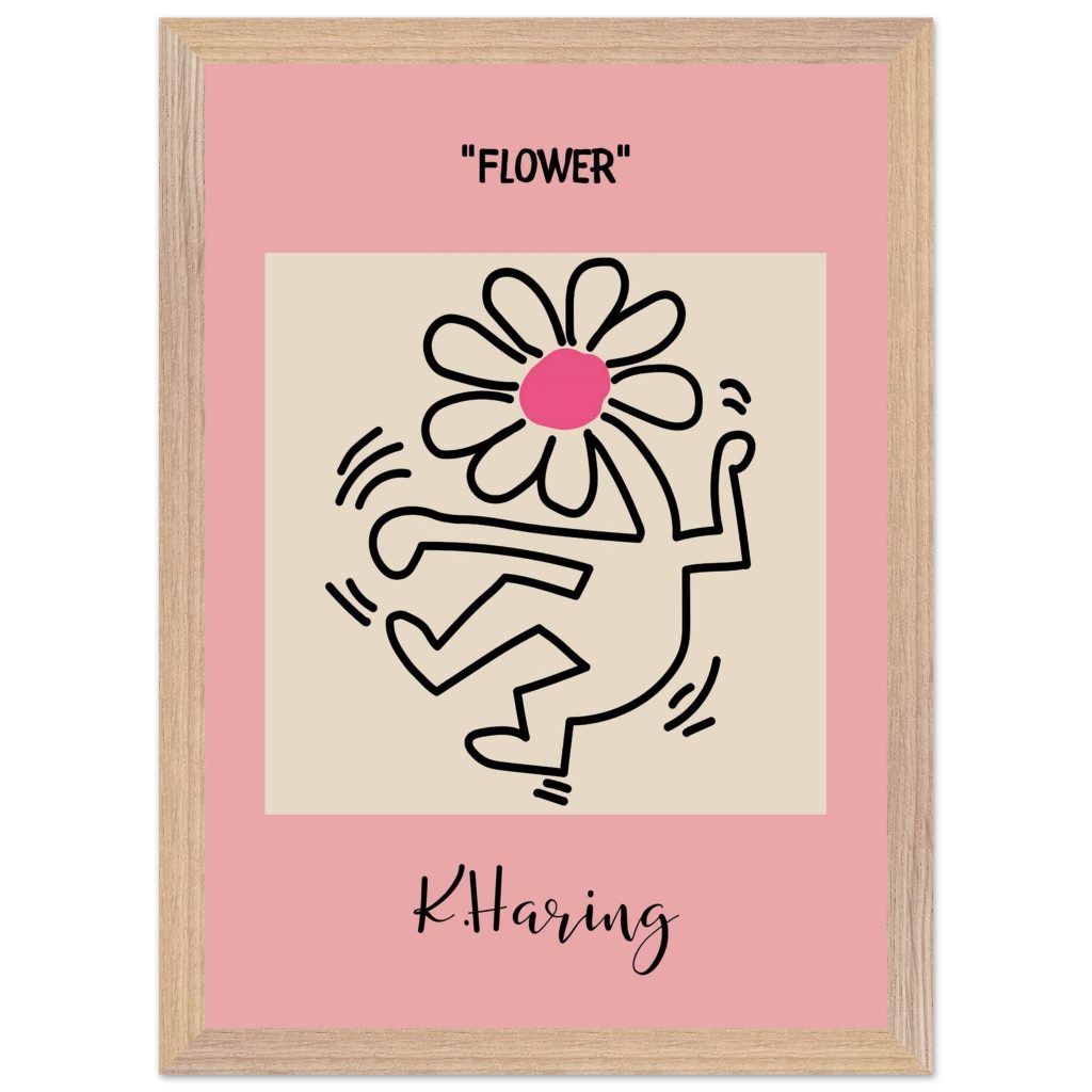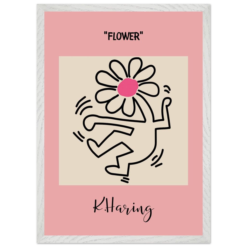 Add playful energy and creative expression to your space with this Flower poster, inspired by iconic pop art and bold line illustration. Featuring a joyful dancing figure topped with a vibrant flower, this artwork symbolizes freedom, creativity, and positive movement. The soft pink background combined with strong black lines makes it a standout piece for modern interiors, bedrooms, studios, kids’ rooms, or gallery walls. Perfect for art lovers, design enthusiasts, and anyone who appreciates expressive, feel-good wall décor.