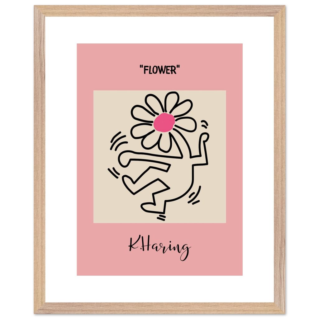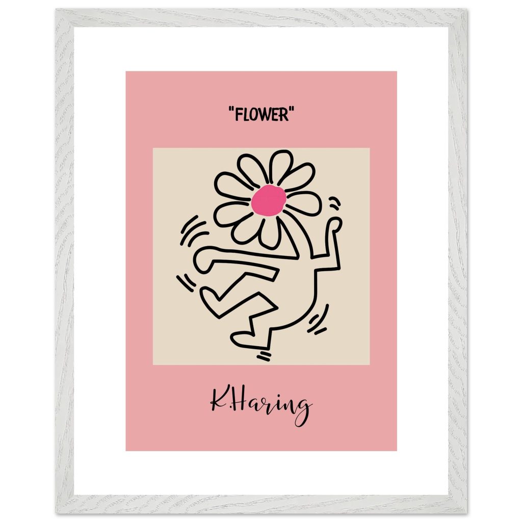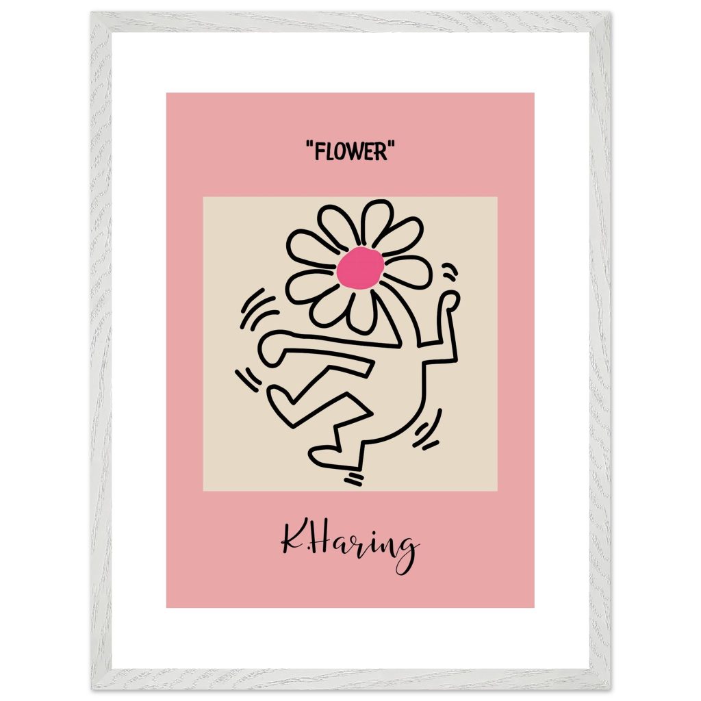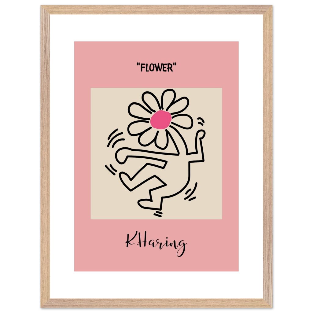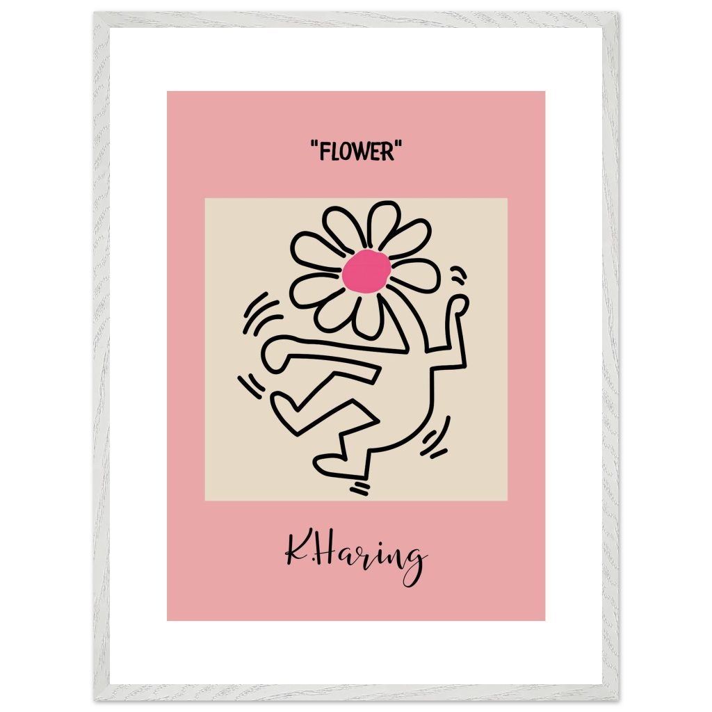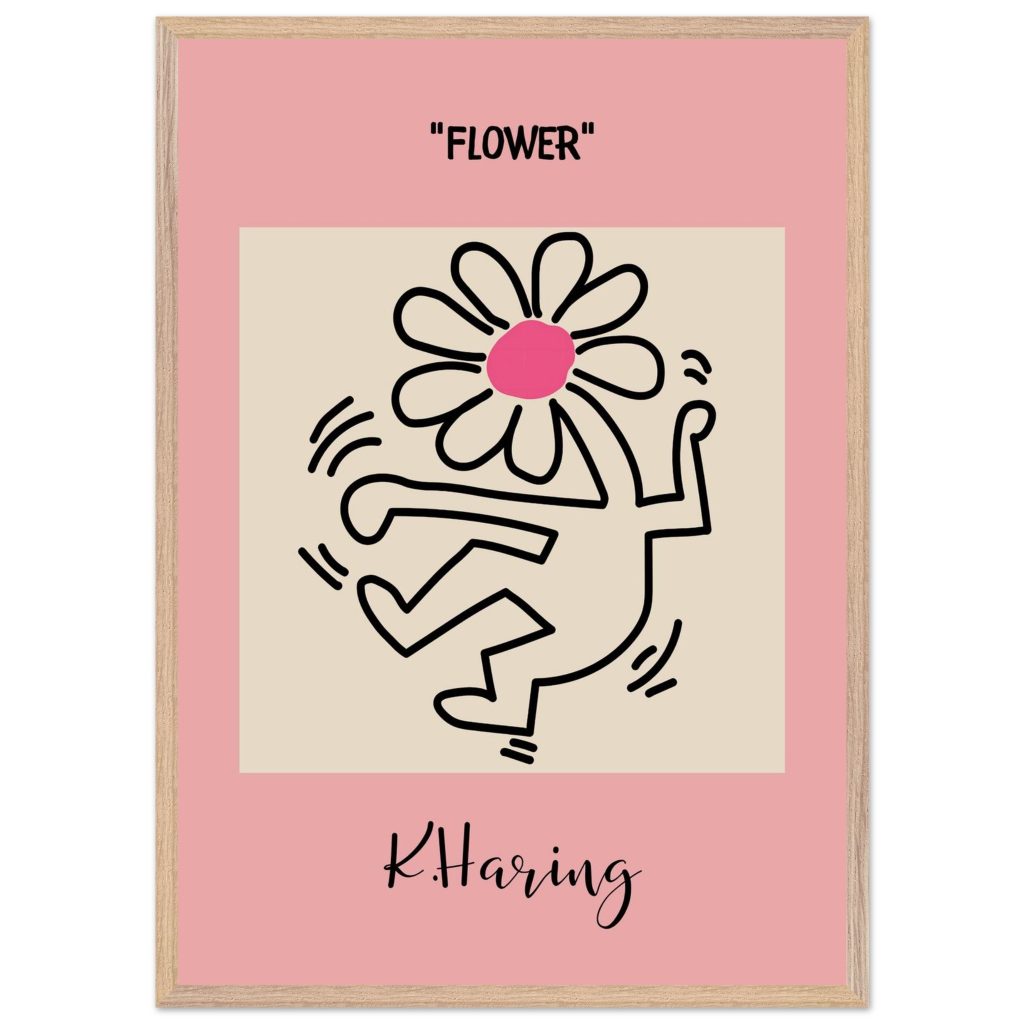 Add playful energy and creative expression to your space with this Flower poster, inspired by iconic pop art and bold line illustration. Featuring a joyful dancing figure topped with a vibrant flower, this artwork symbolizes freedom, creativity, and positive movement. The soft pink background combined with strong black lines makes it a standout piece for modern interiors, bedrooms, studios, kids’ rooms, or gallery walls. Perfect for art lovers, design enthusiasts, and anyone who appreciates expressive, feel-good wall décor.