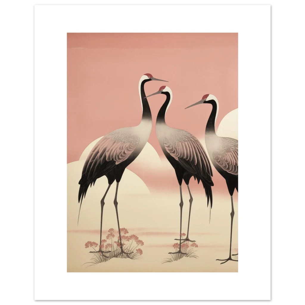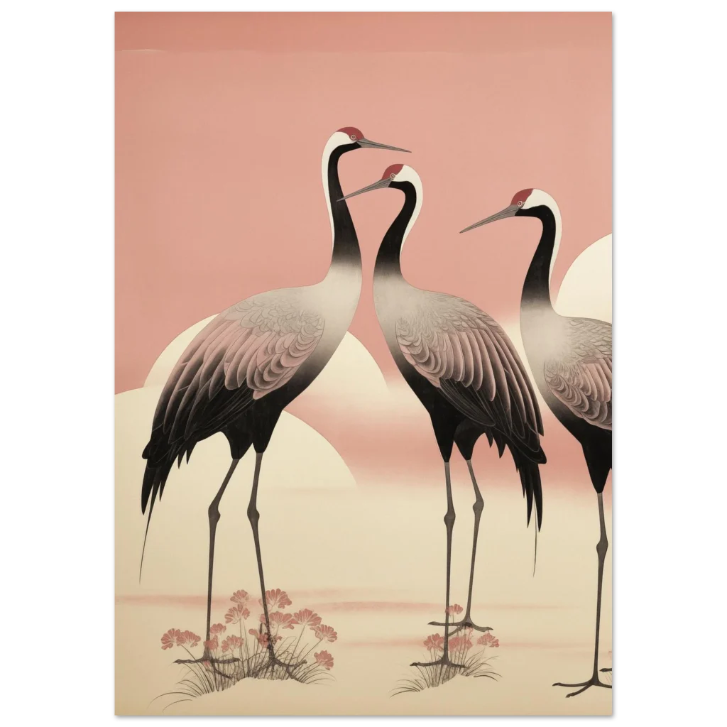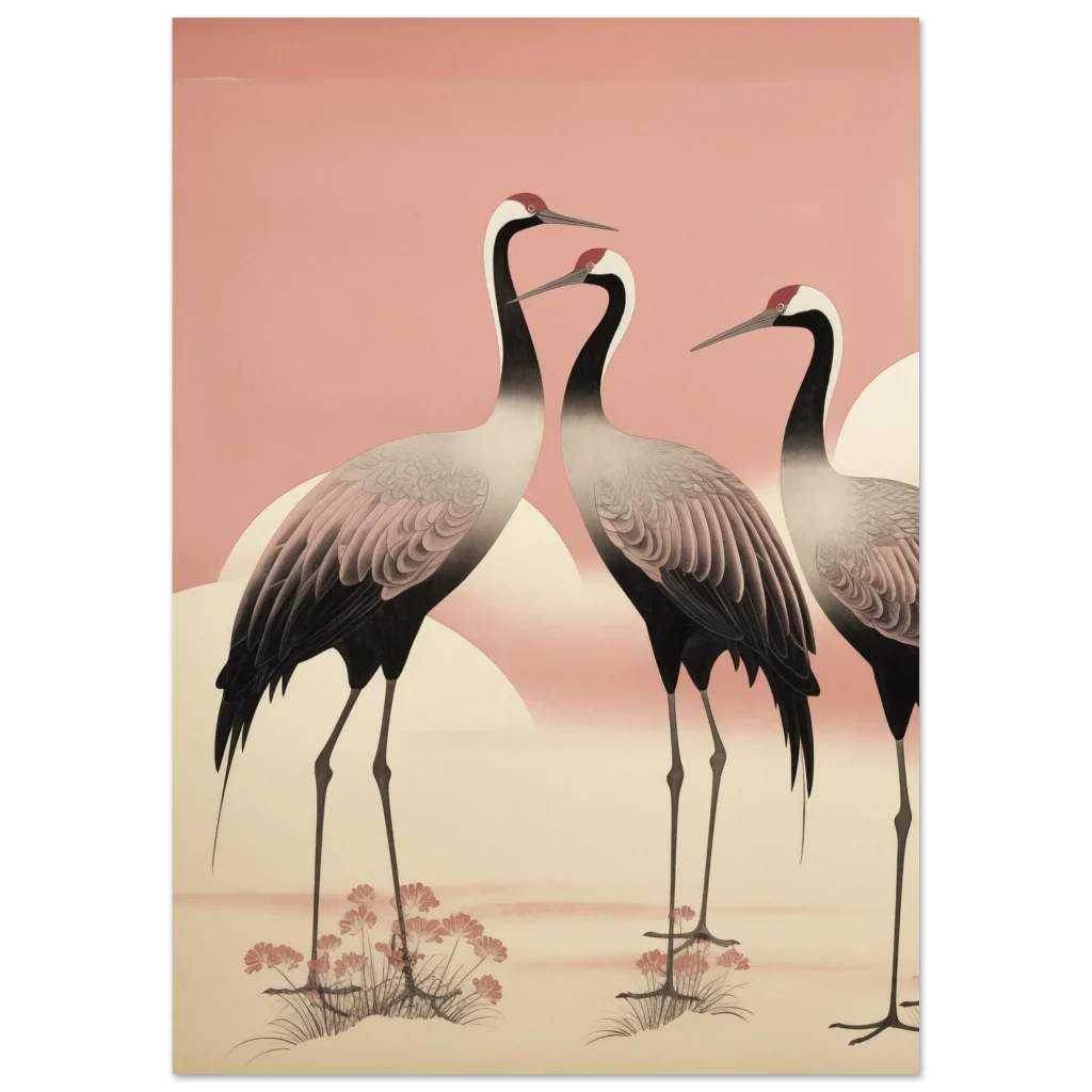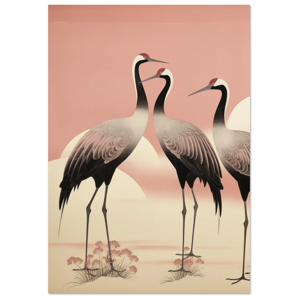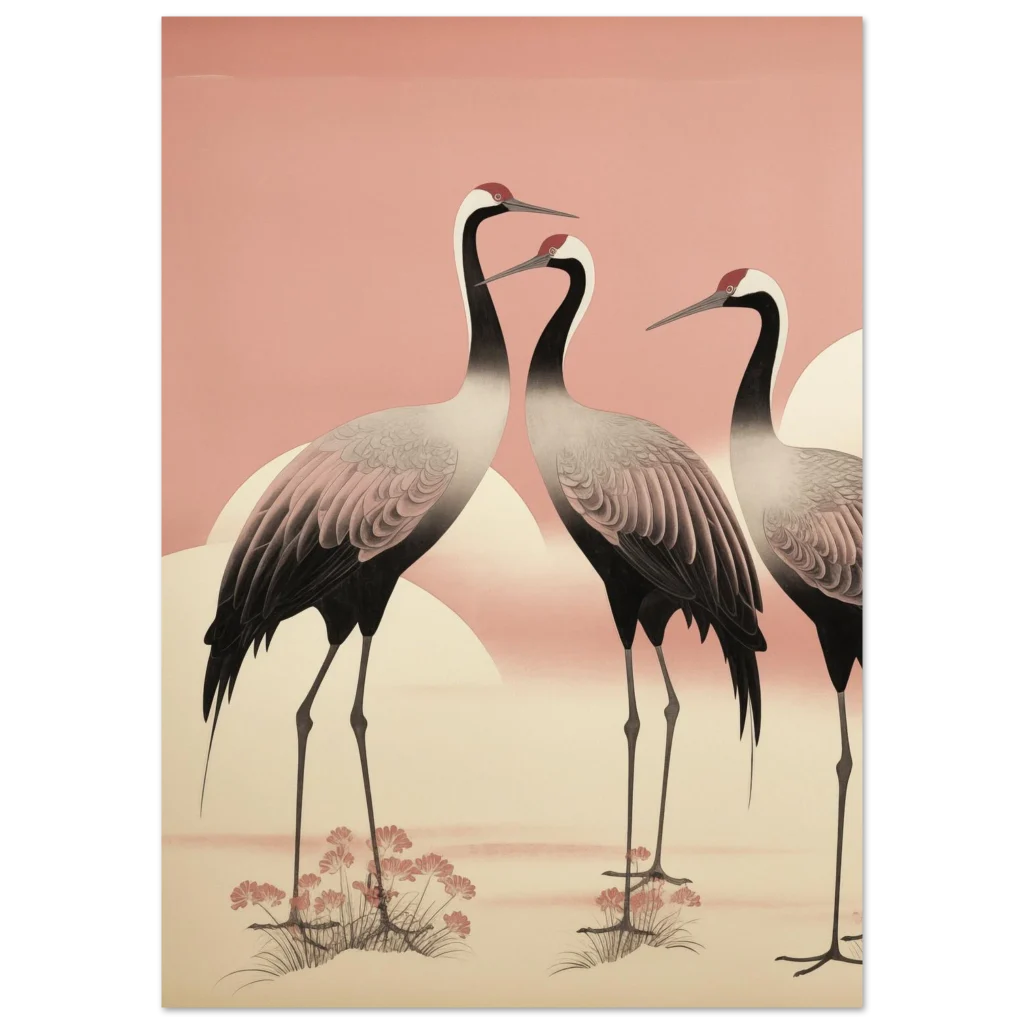 Graceful Cranes in Blush: Japanese Style Semi-Glossy Paper Poster