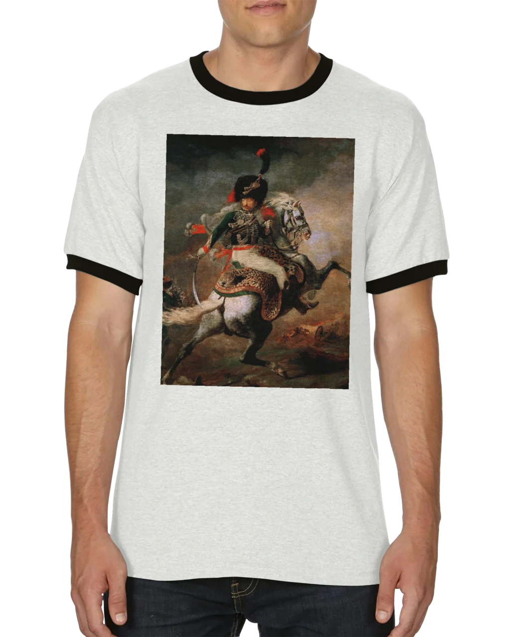 Embrace the spirit of historical artistry and make a statement. Select your preferred color and size, and order your ‘The Charging Chasseur’ inspired Ringer T-shirt today!