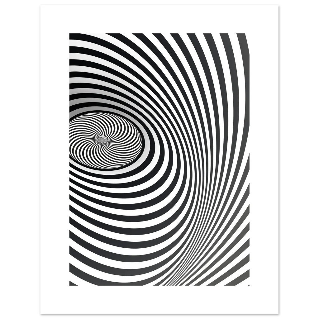 Dive into a world of mesmerizing optical illusions with our Hypnotic Vortex poster. This stunning black and white op art piece creates a captivating sense of depth and movement, drawing the eye into its swirling depths. Perfect for adding a touch of modern sophistication and intriguing visual play to any room, this poster is an instant conversation starter and a true statement of contemporary style.