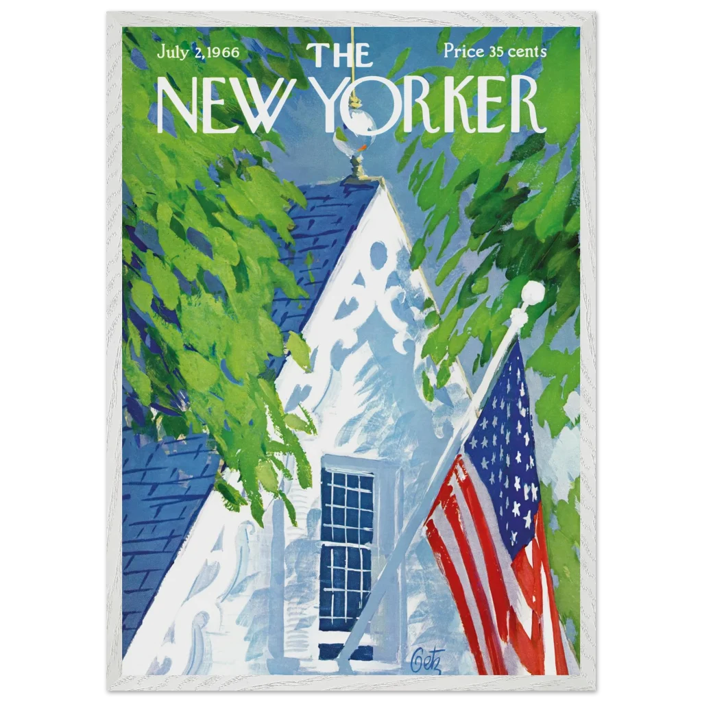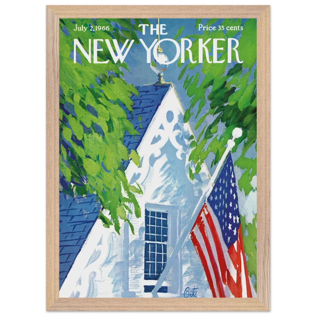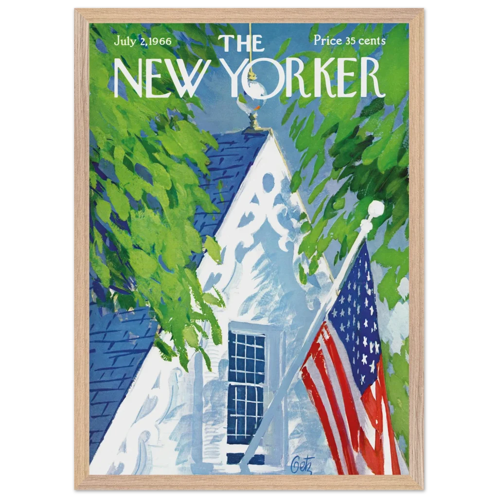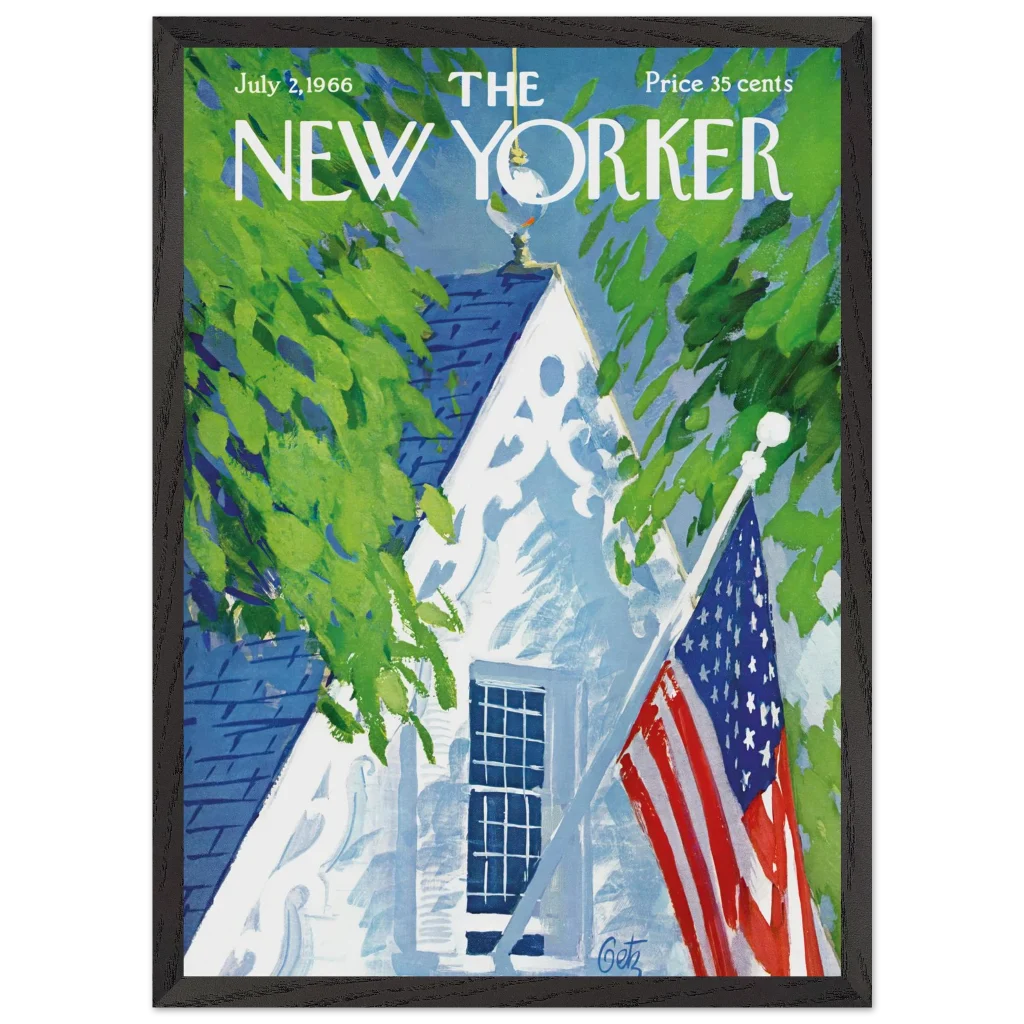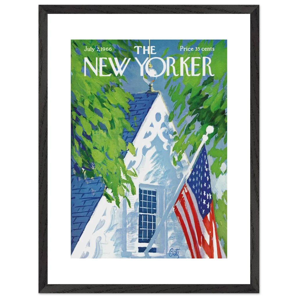 Iconic July 4th Americana New Yorker Cover Wall Art – Premium Wooden Framed Poster with Matte Finish
