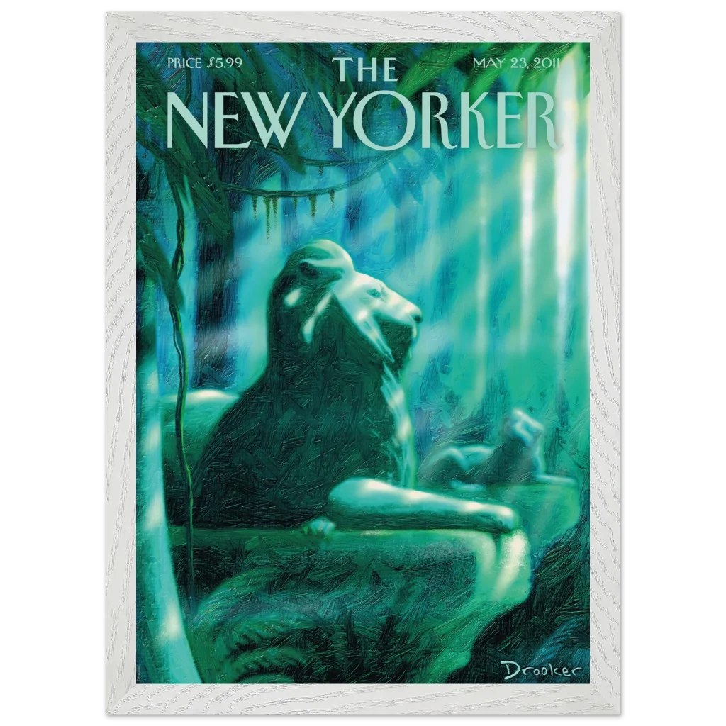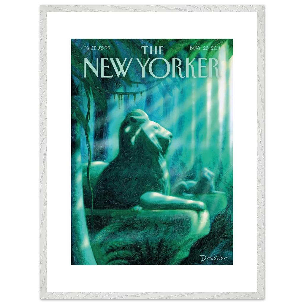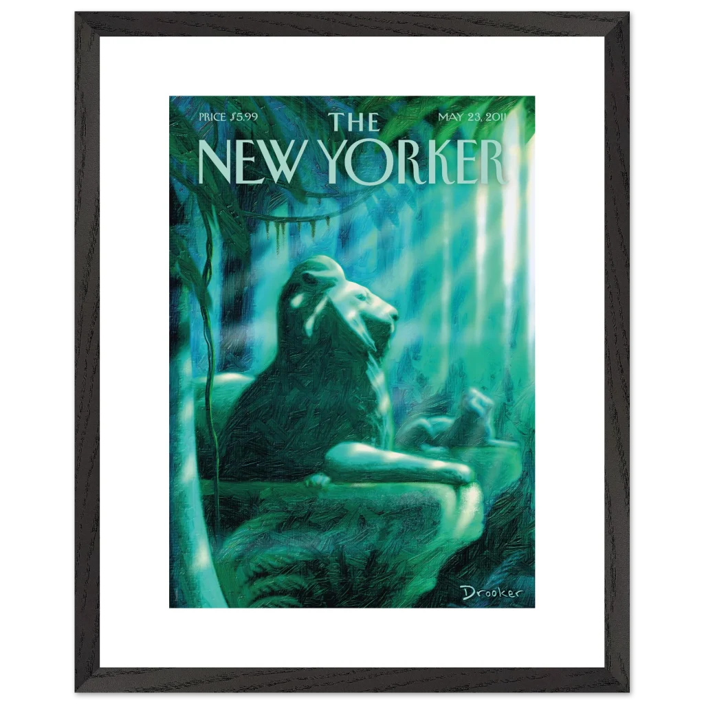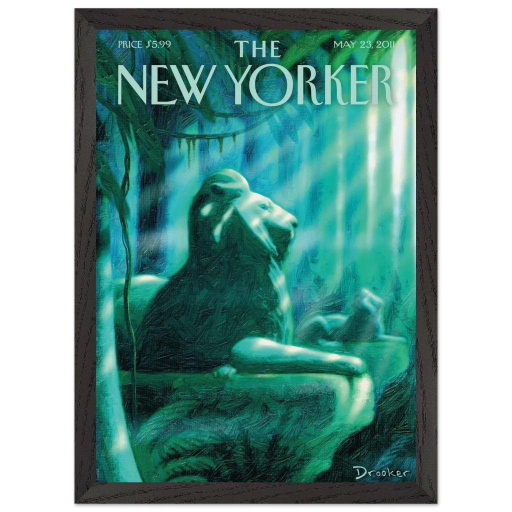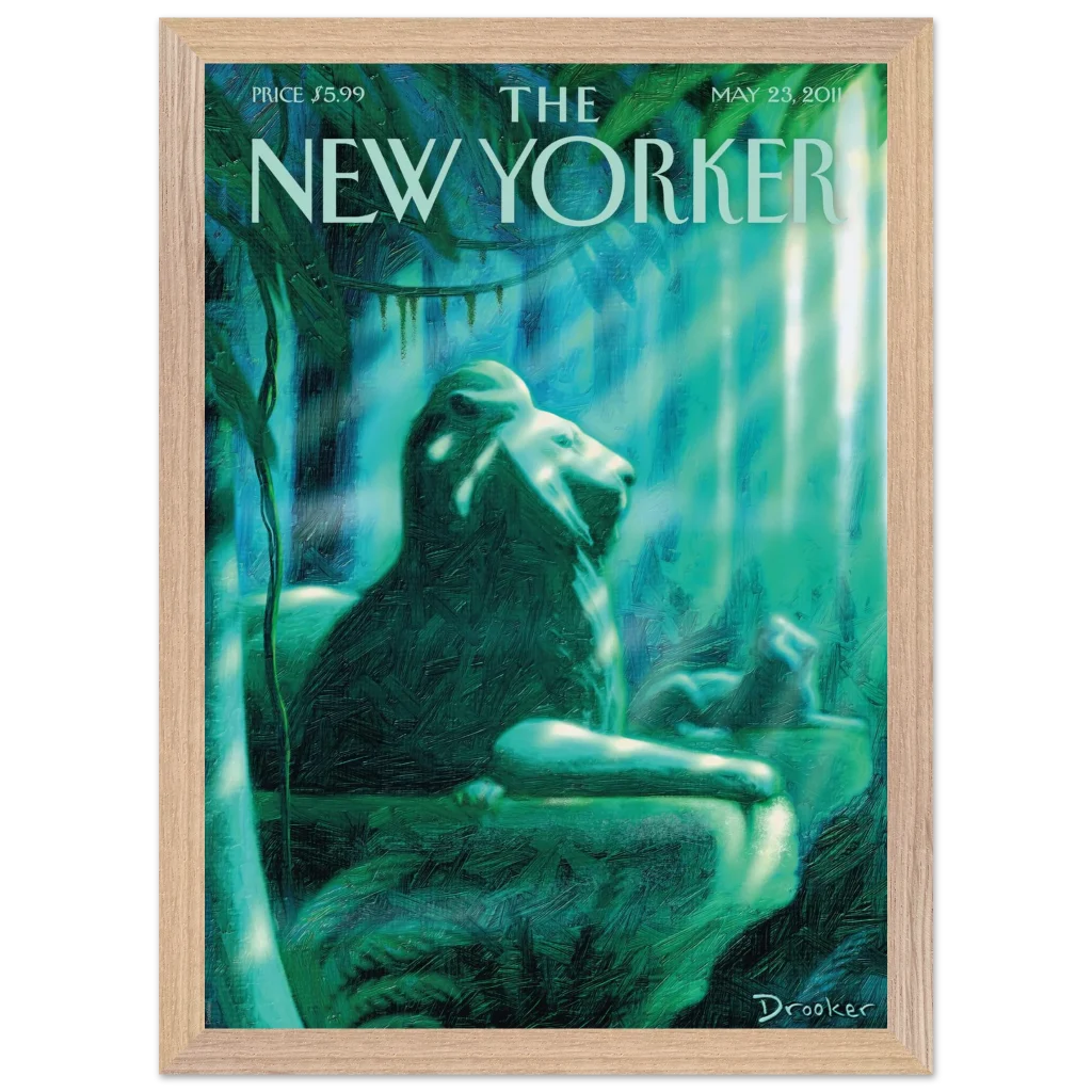 Jungle King Poster – Mystical Emerald Lion Wall Art with Premium Wooden Frame & Matte Paper – New Yorker Cover