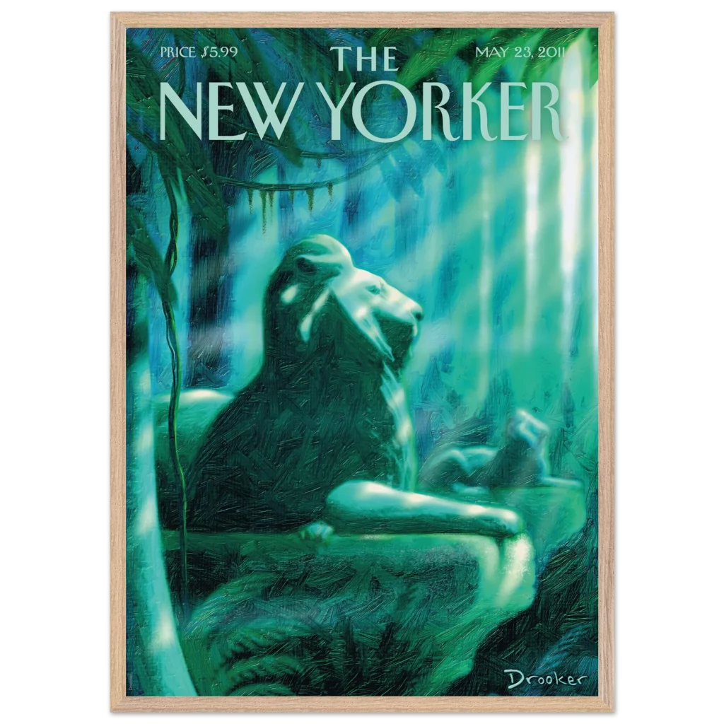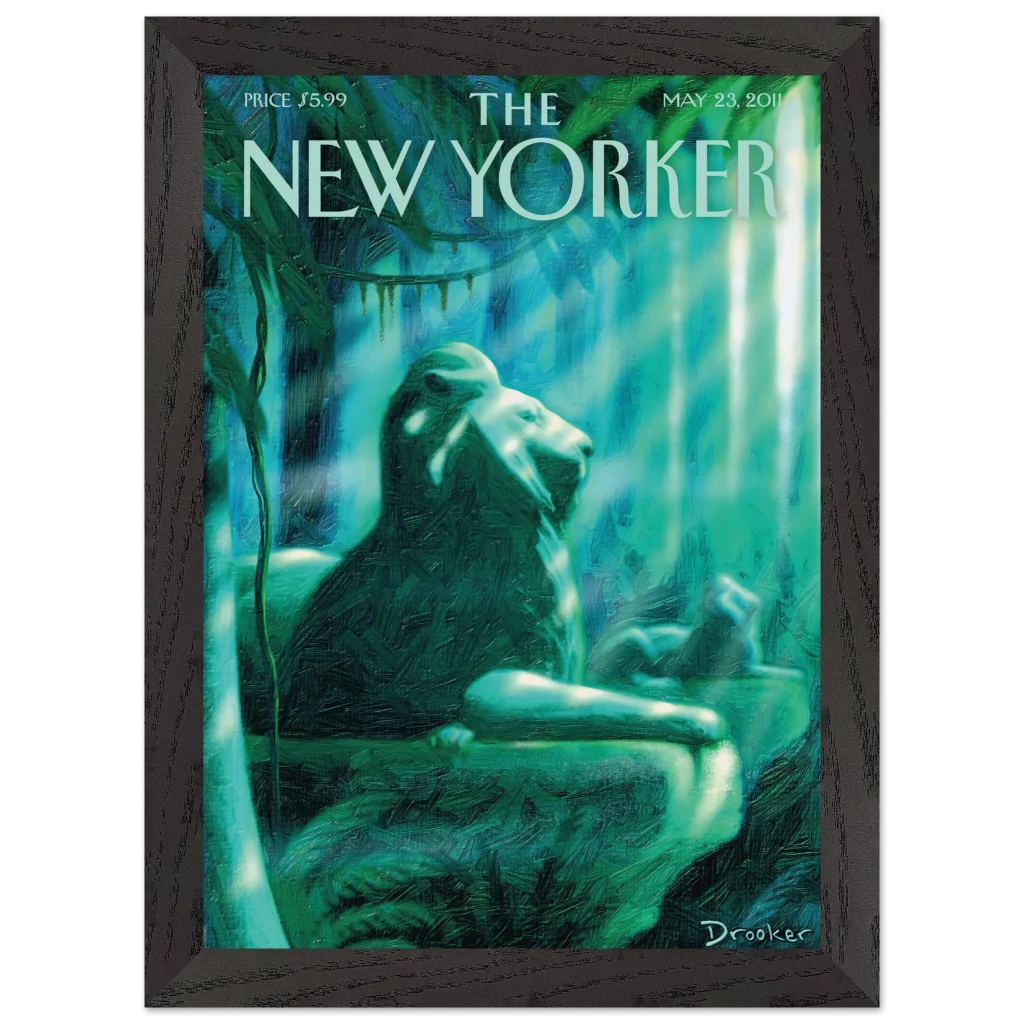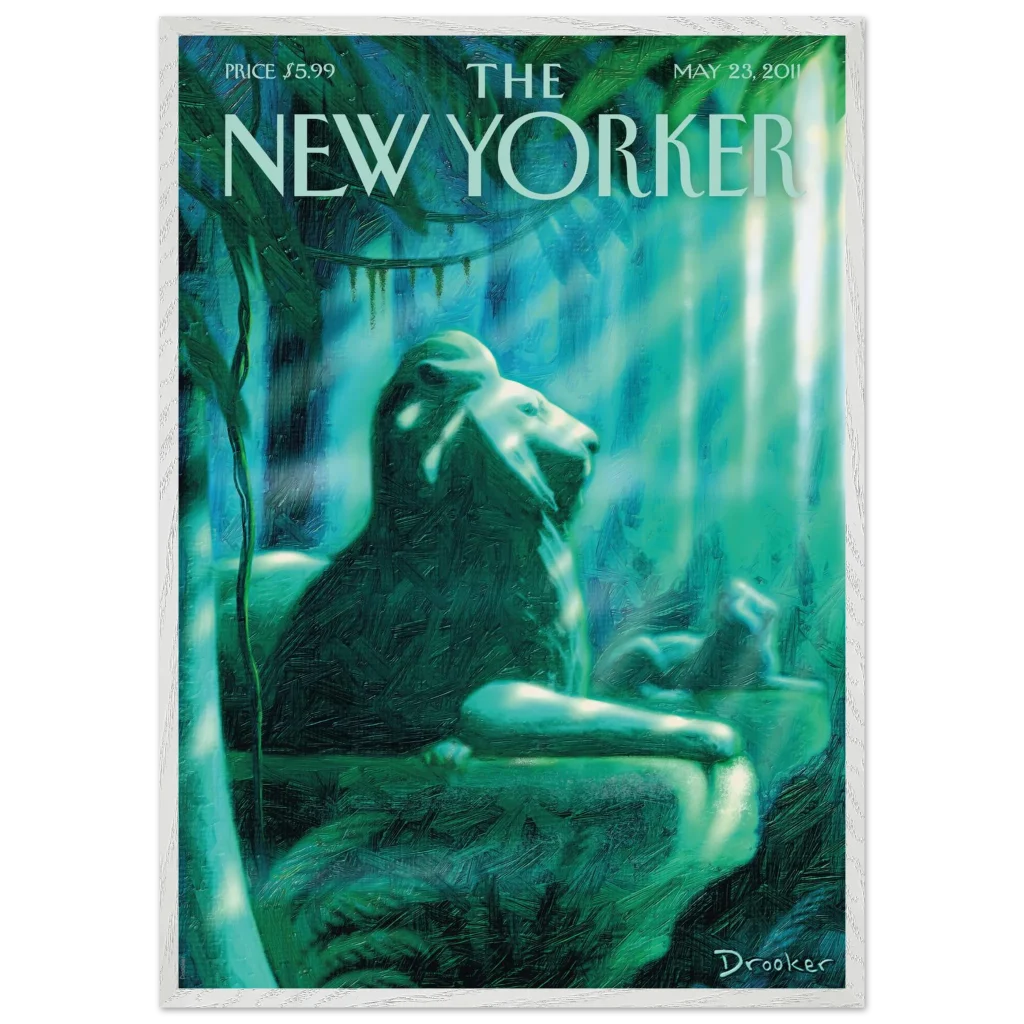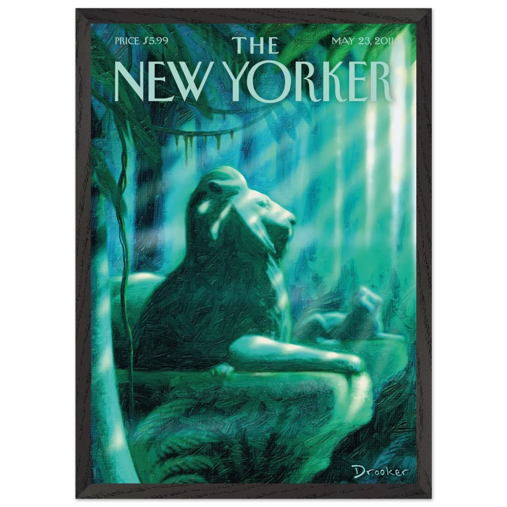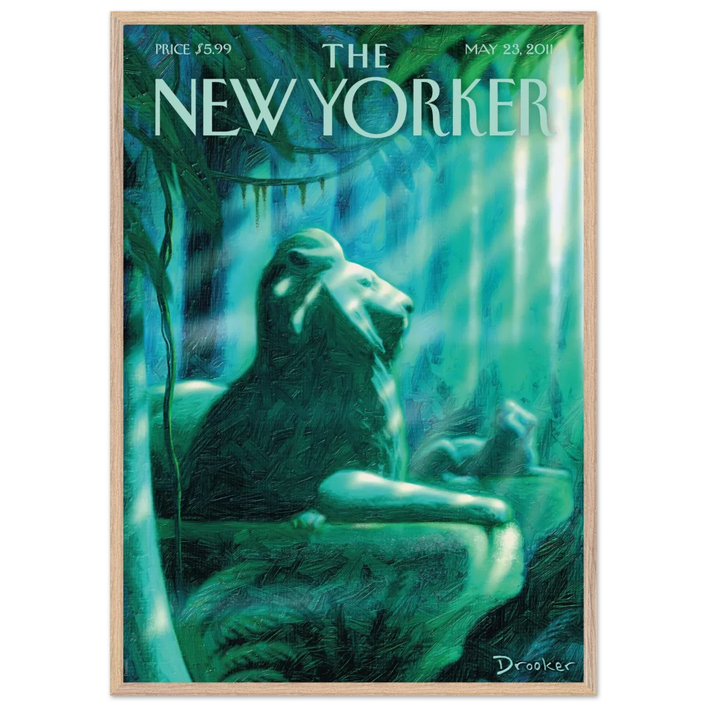 Jungle King Poster – Mystical Emerald Lion Wall Art with Premium Wooden Frame & Matte Paper – New Yorker Cover