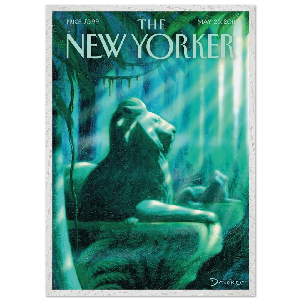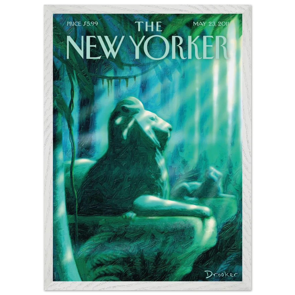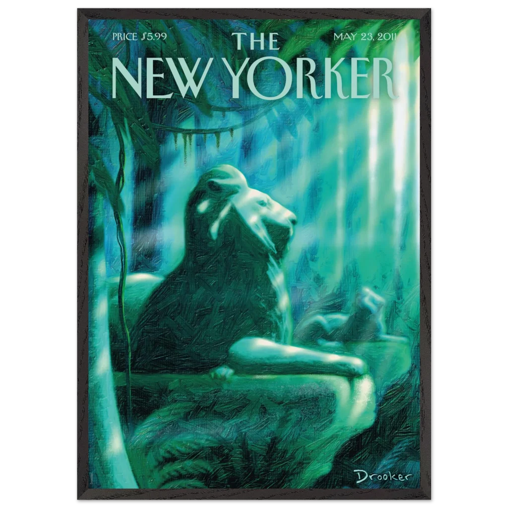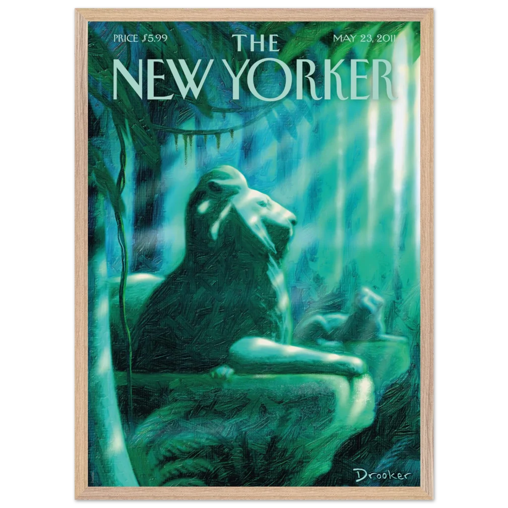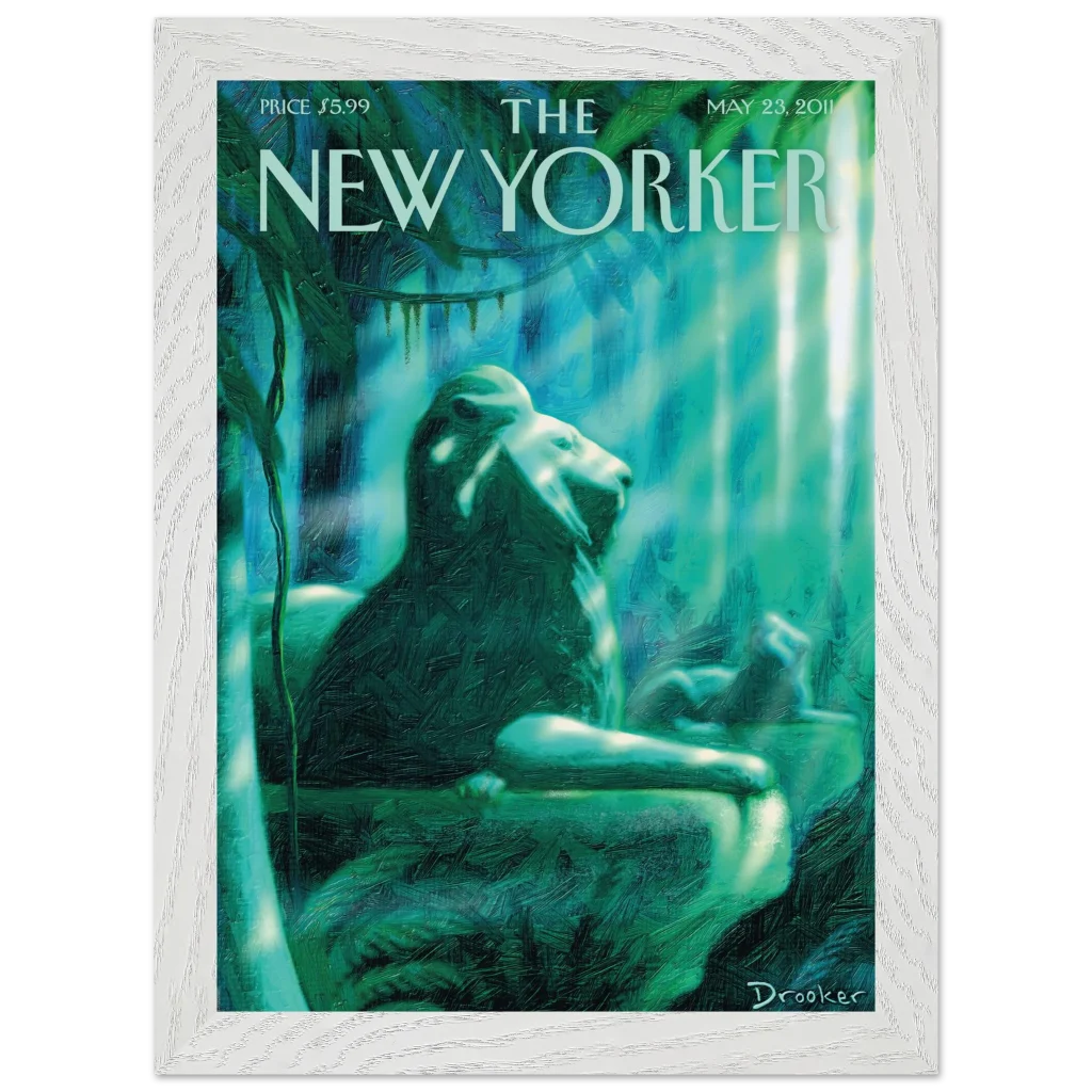 Jungle King Poster – Mystical Emerald Lion Wall Art with Premium Wooden Frame & Matte Paper – New Yorker Cover