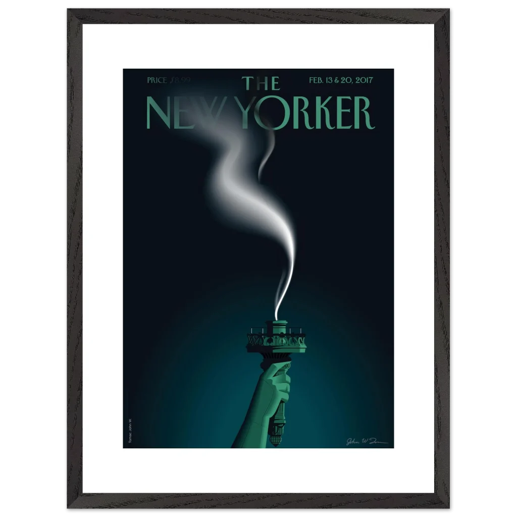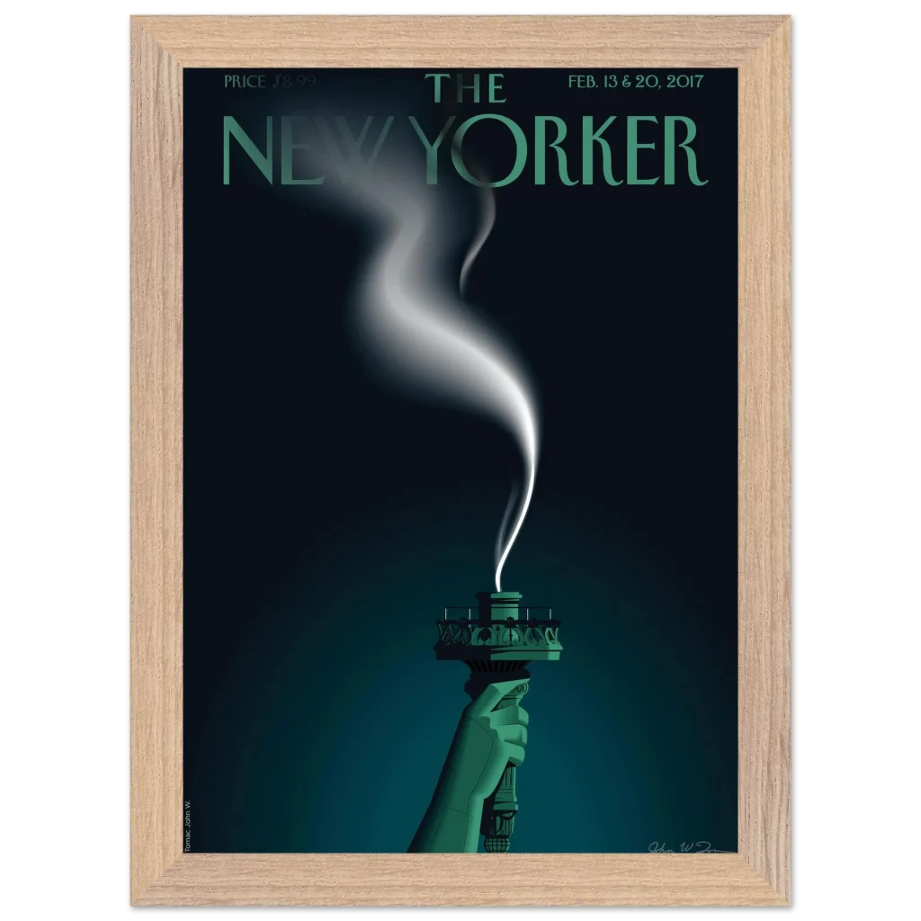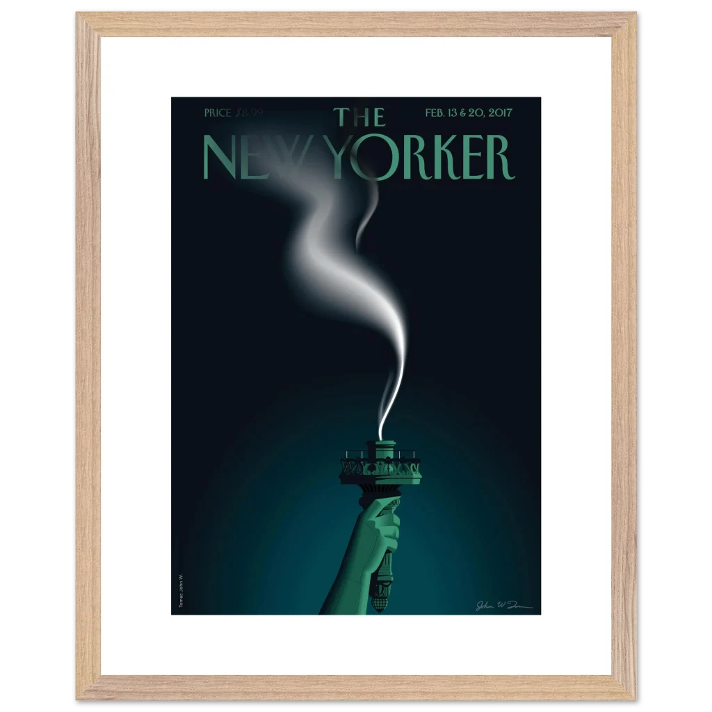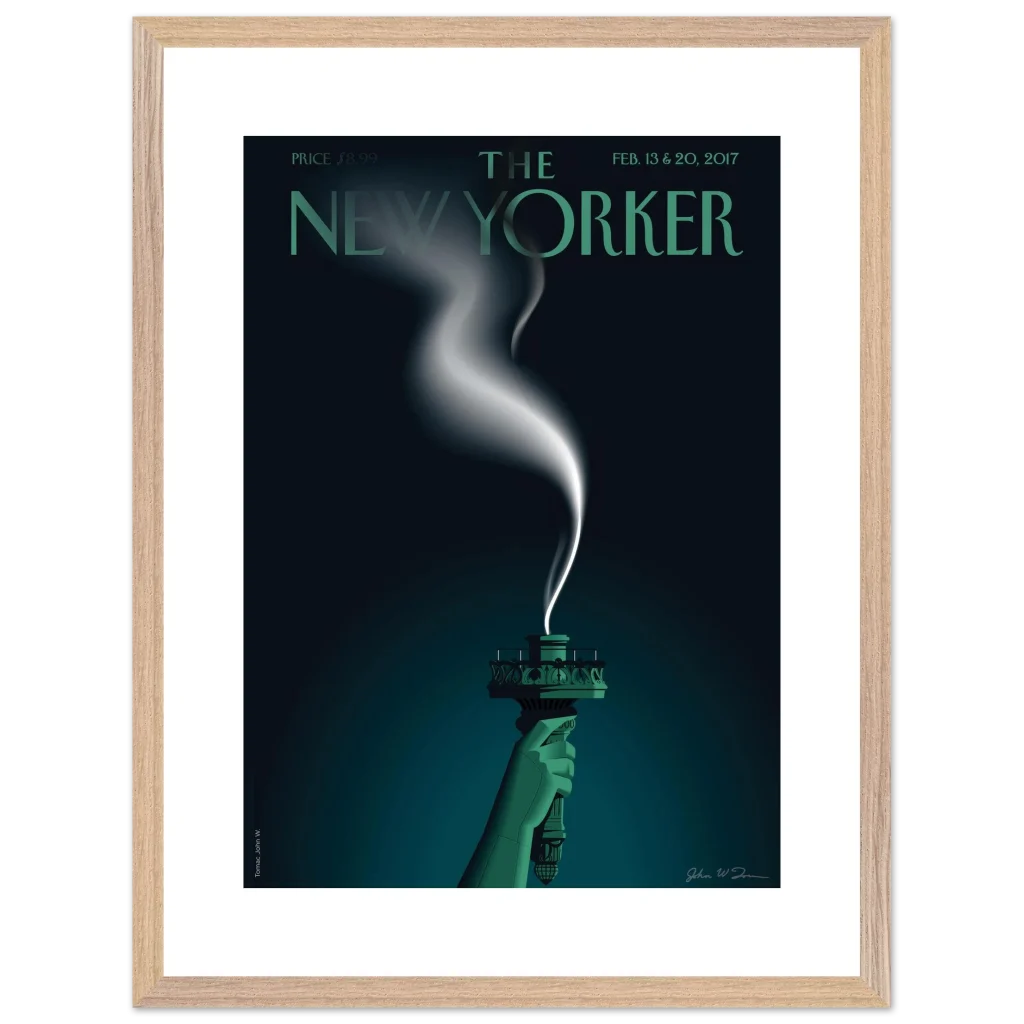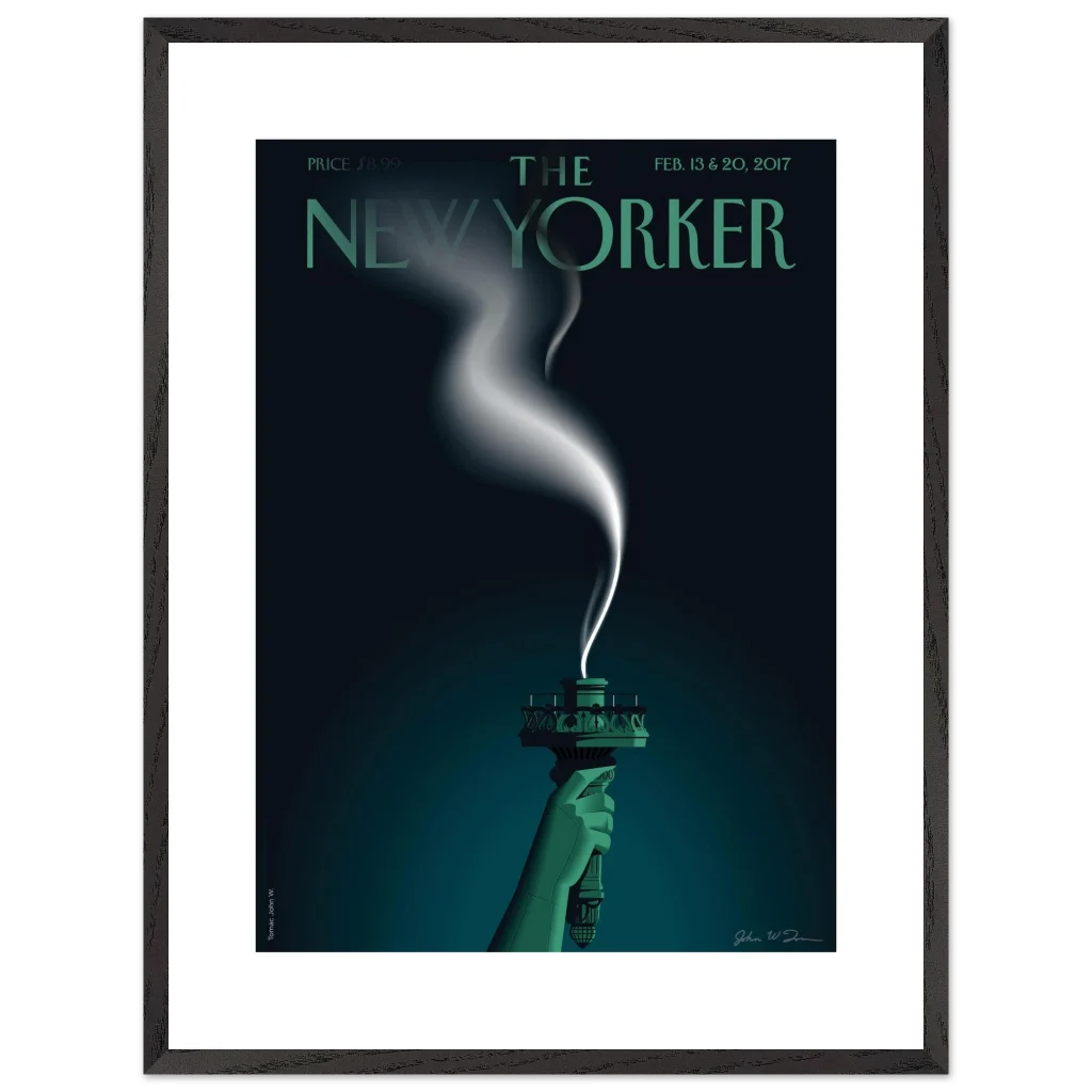 Liberty’s Fading Light – Iconic New Yorker Cover Art Premium Wooden Framed Poster with Matte Paper