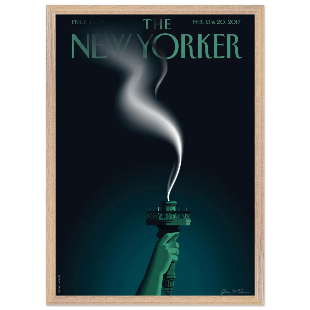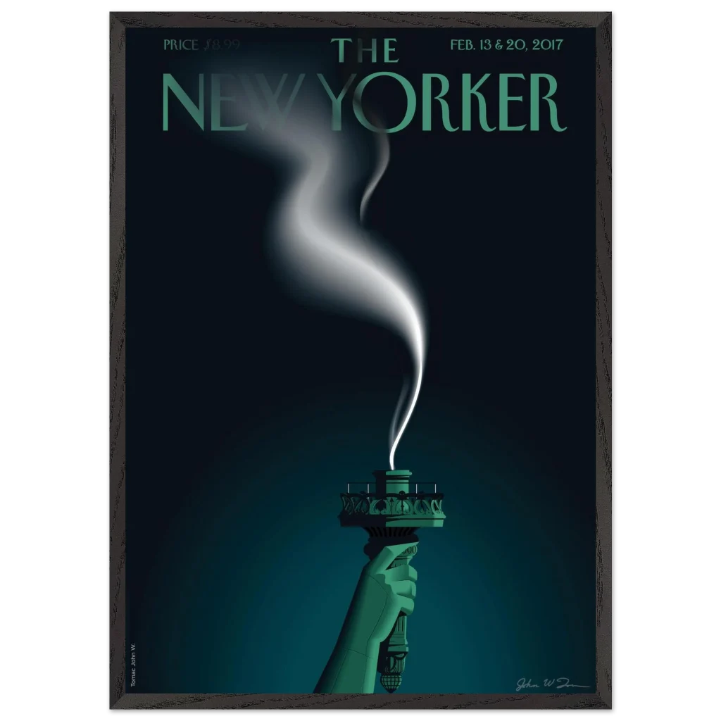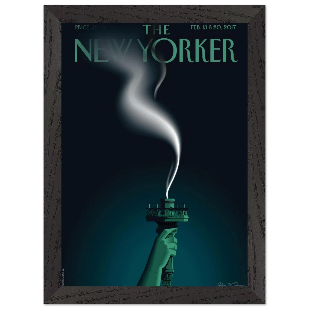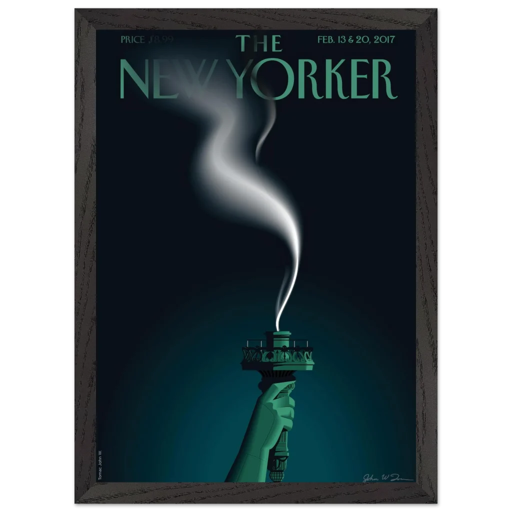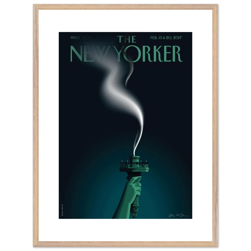 Liberty’s Fading Light – Iconic New Yorker Cover Art Premium Wooden Framed Poster with Matte Paper