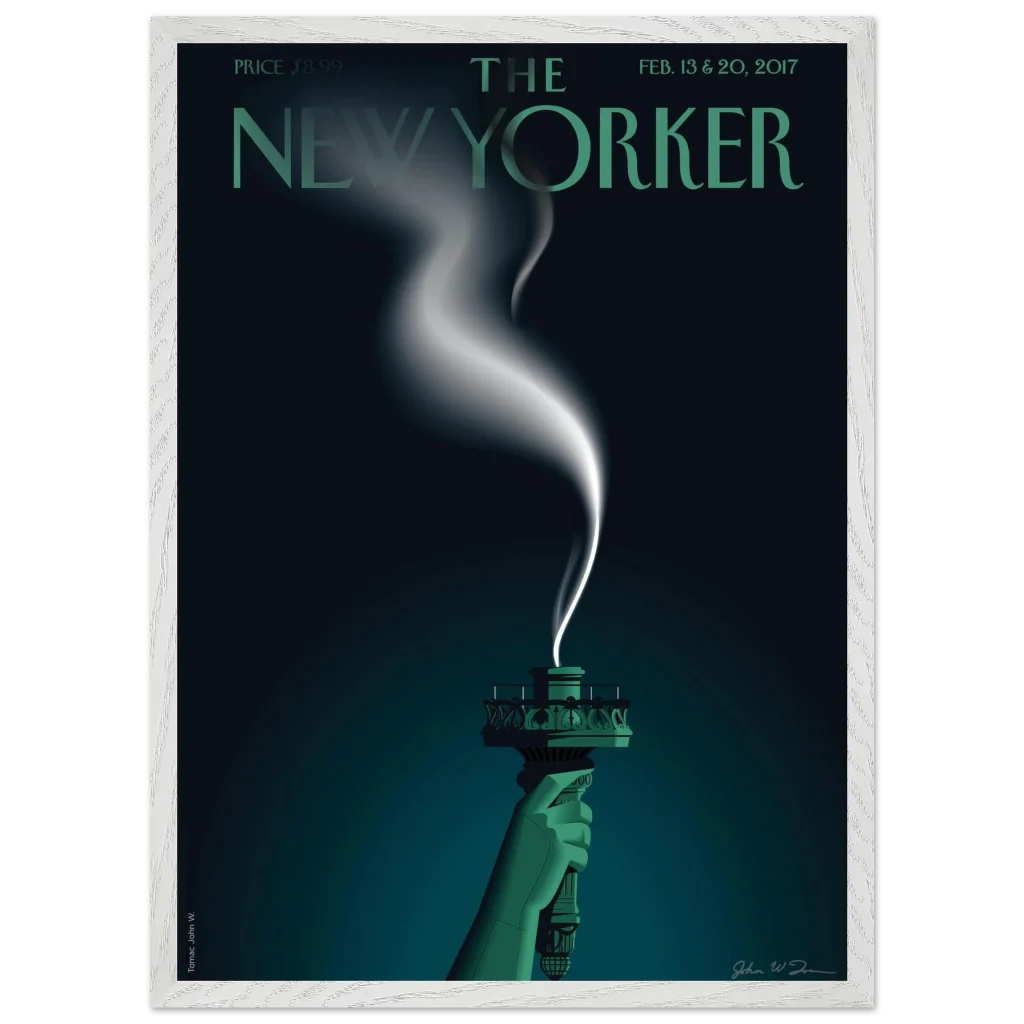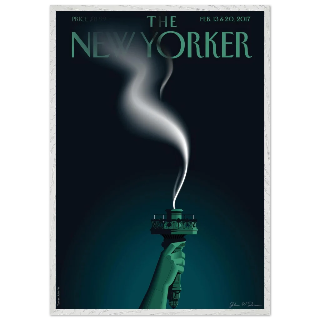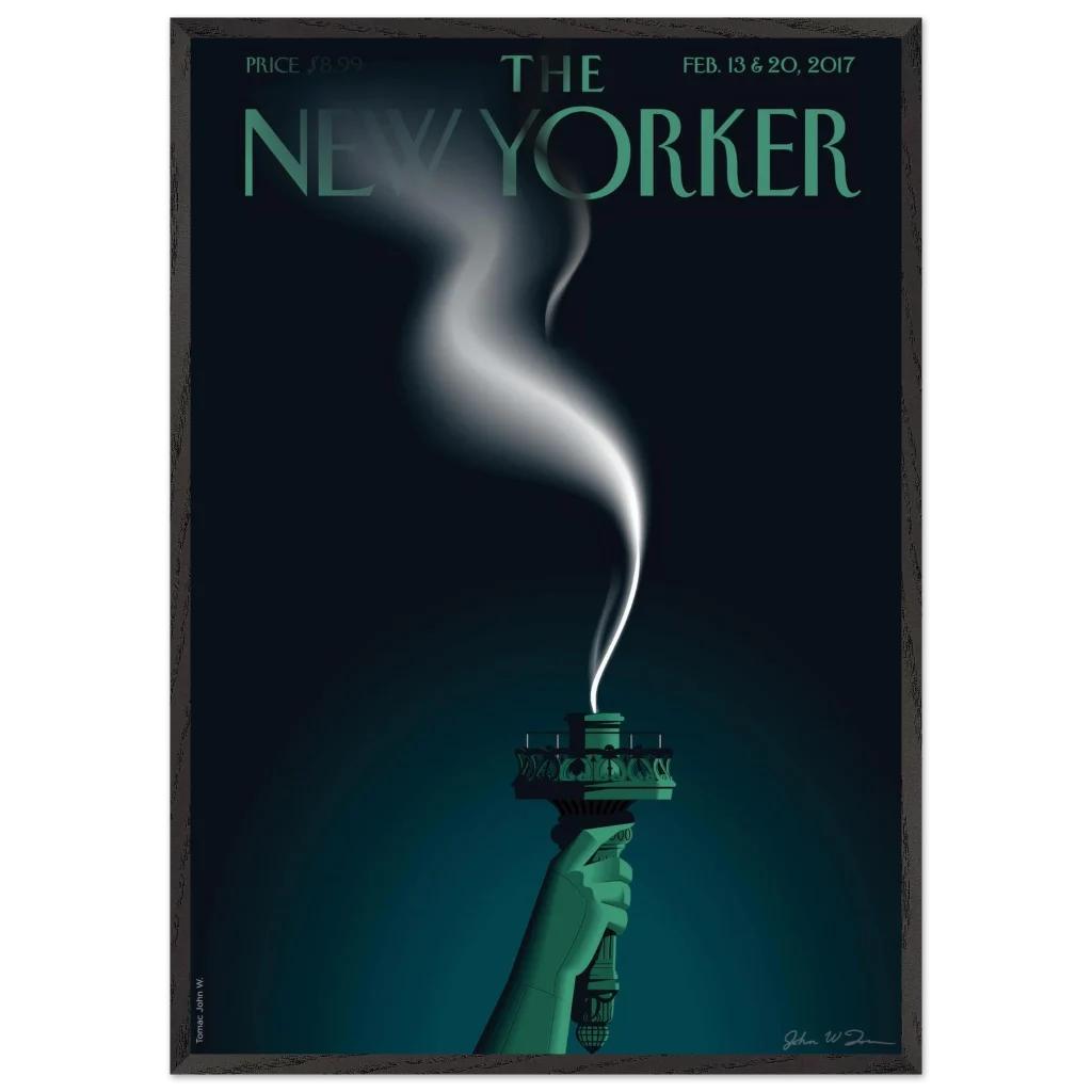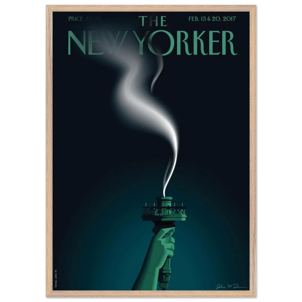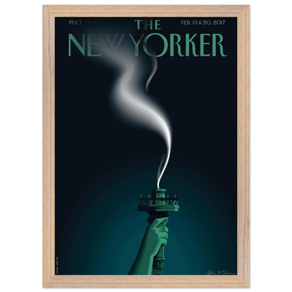 Liberty’s Fading Light – Iconic New Yorker Cover Art Premium Wooden Framed Poster with Matte Paper