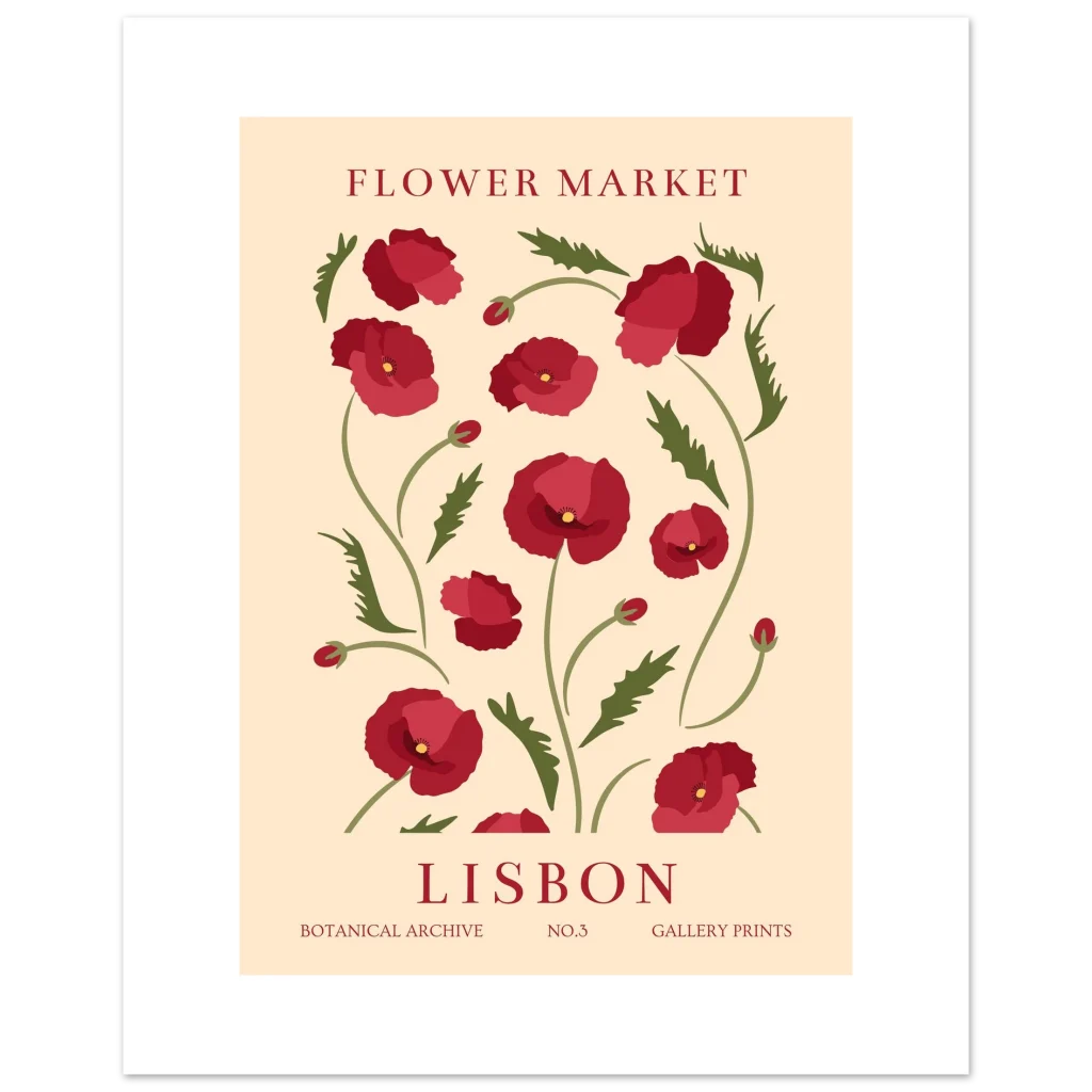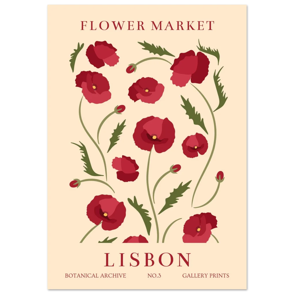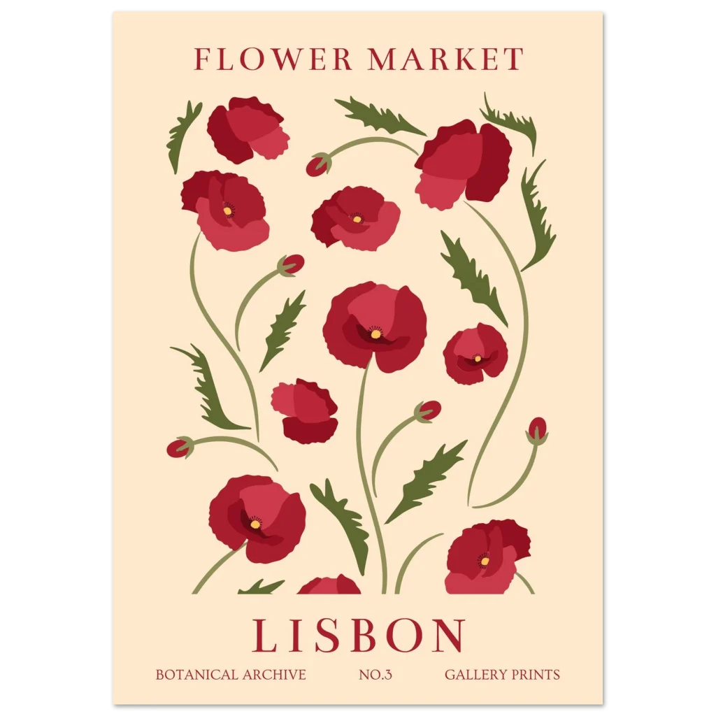 Lisbon Flower Market Poppies Botanical Poster – Classic Semi-Glossy Paper Print in Multiple Sizes