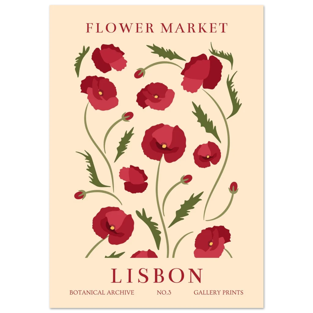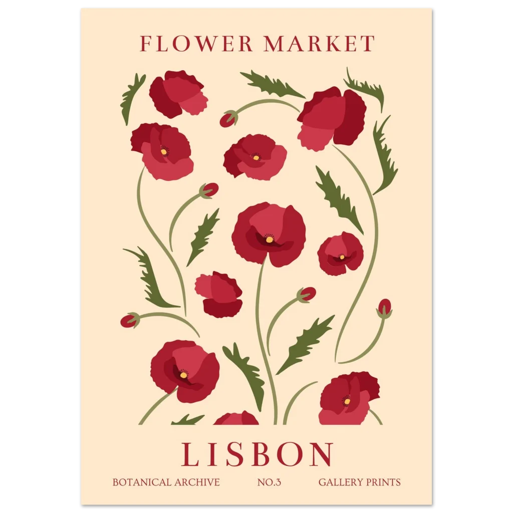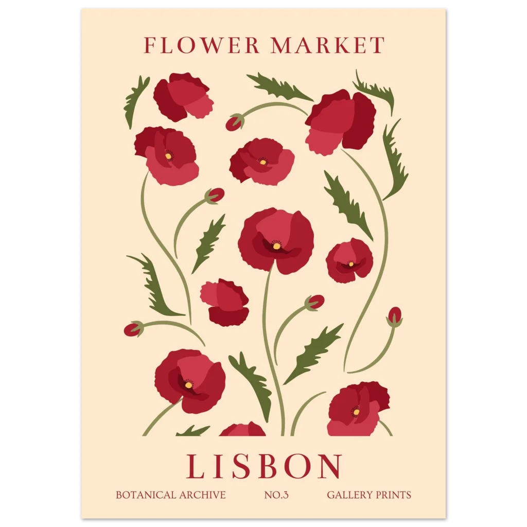 Lisbon Flower Market Poppies Botanical Poster – Classic Semi-Glossy Paper Print in Multiple Sizes