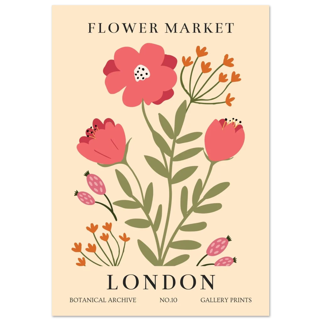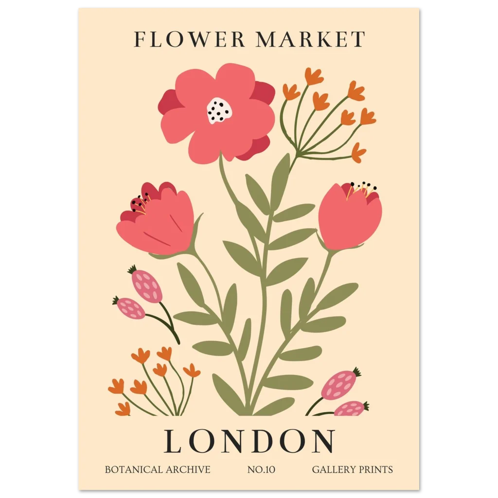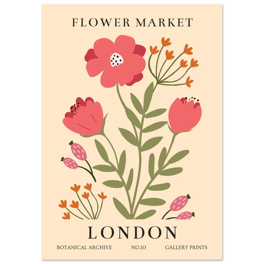 London Flower Market Botanical Poster – Vibrant Semi-Glossy Print for Your Home