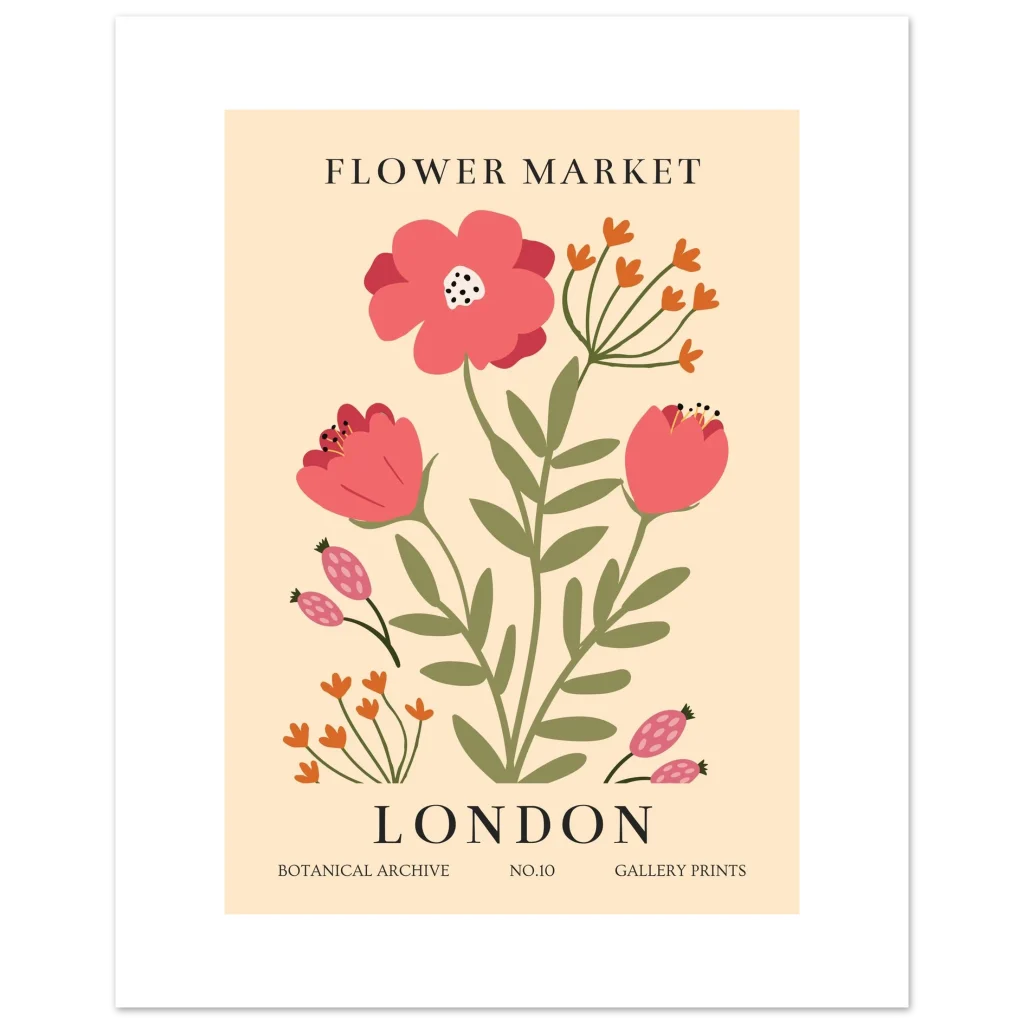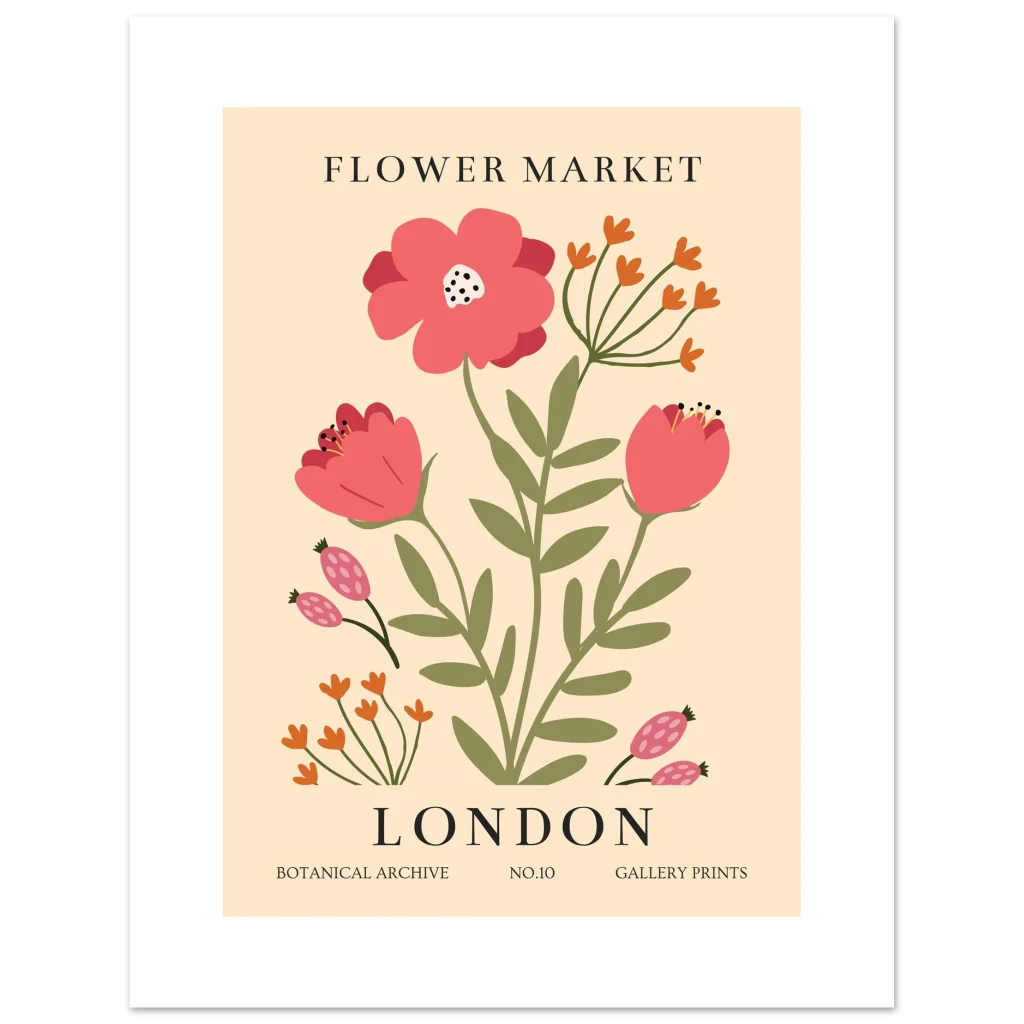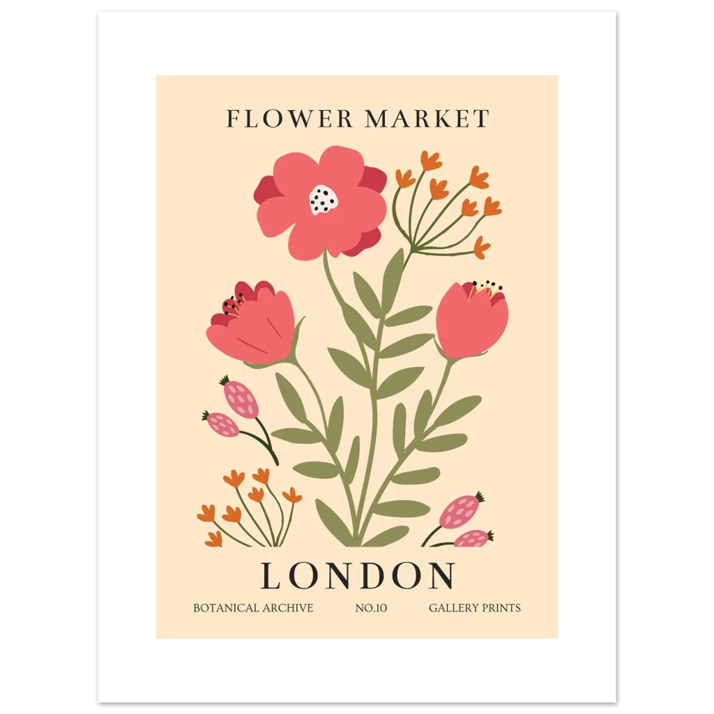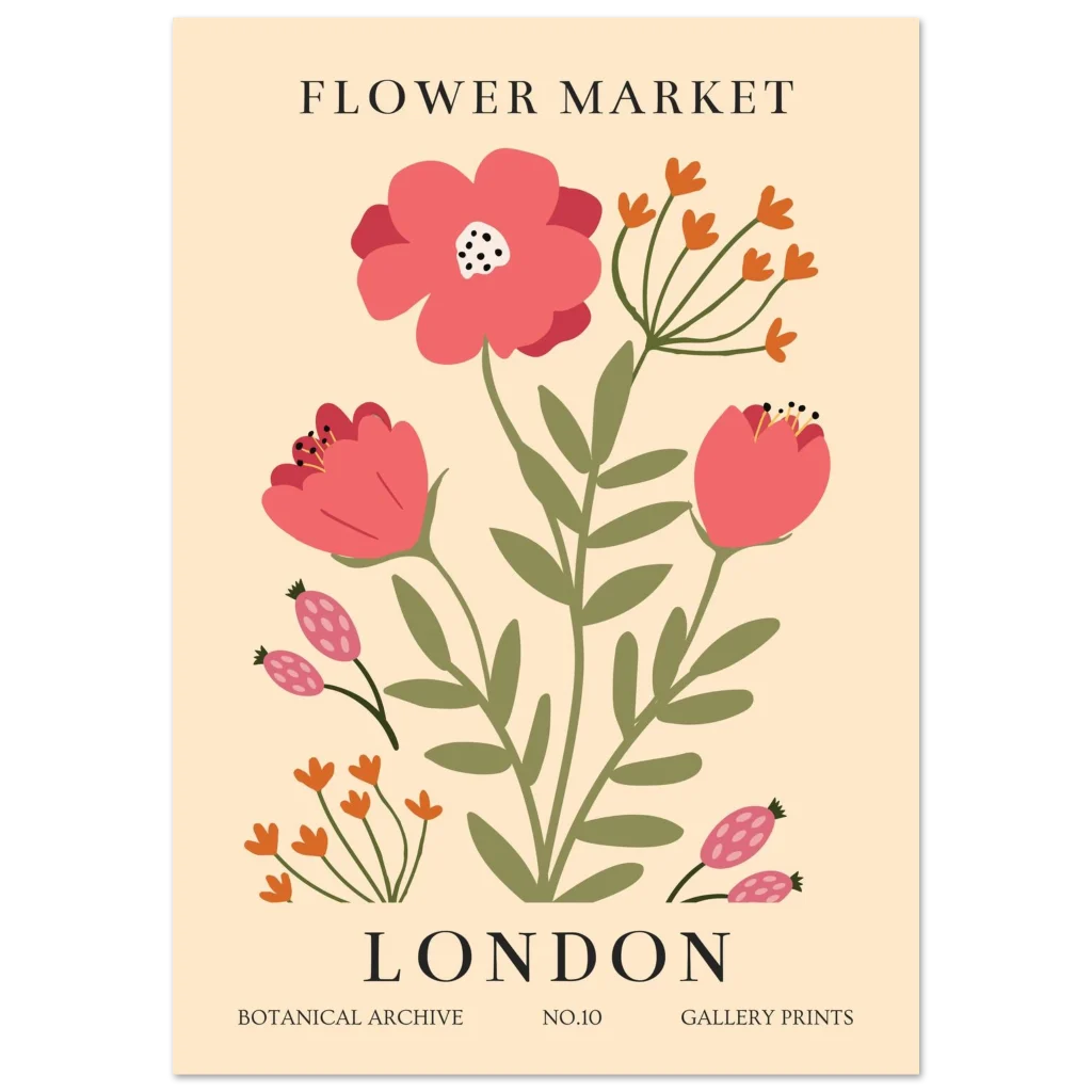 London Flower Market Botanical Poster – Vibrant Semi-Glossy Print for Your Home