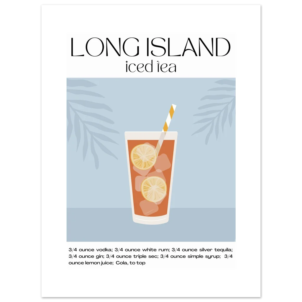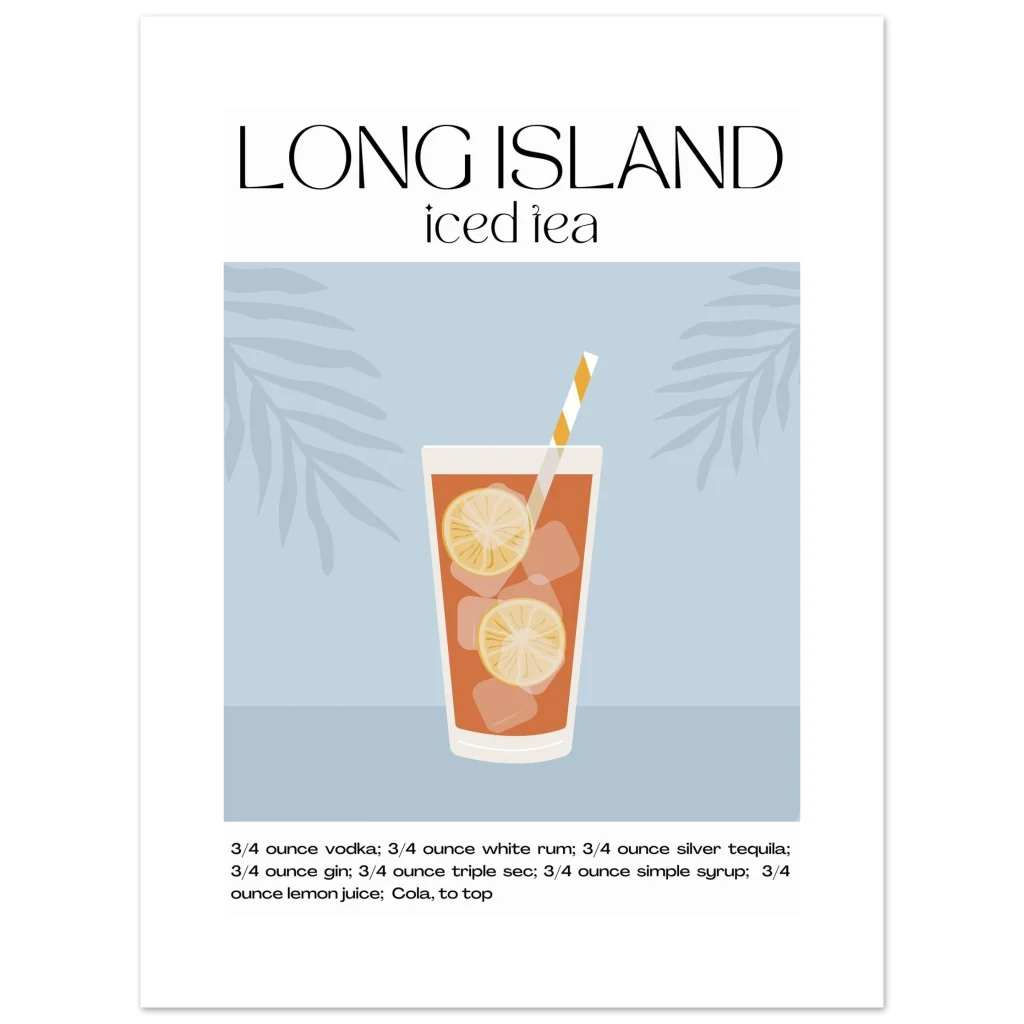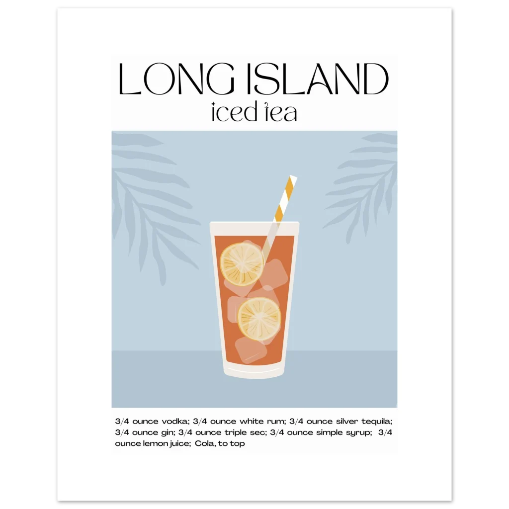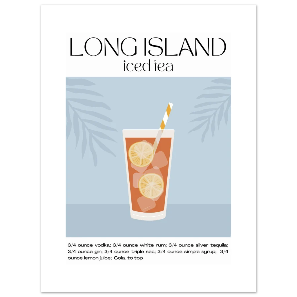 Long Island Iced Tea Recipe Poster – Classic Cocktail Art for Your Home Bar
