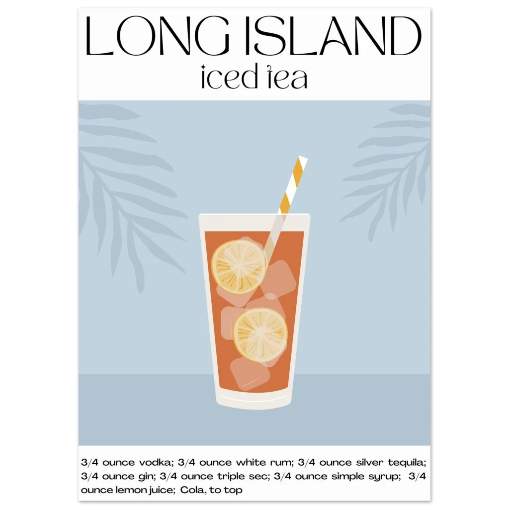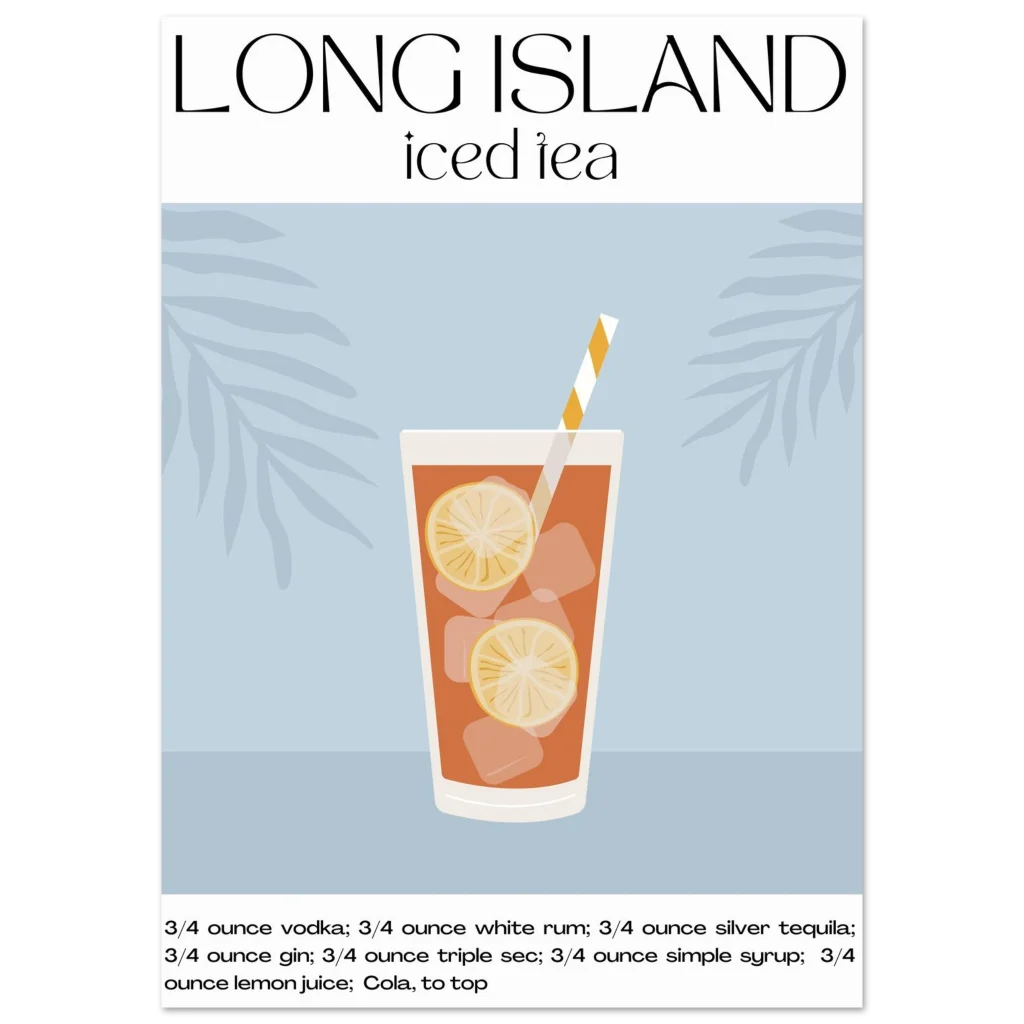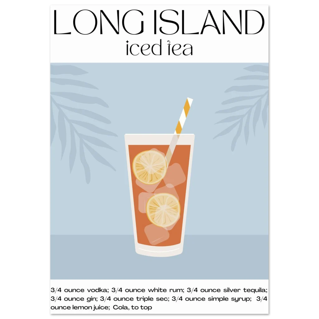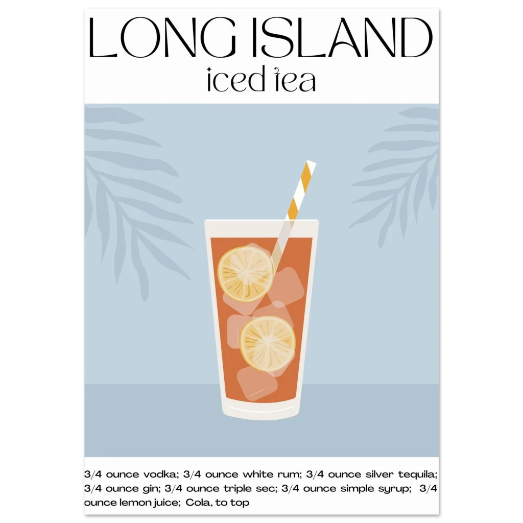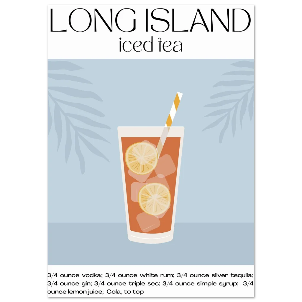 Long Island Iced Tea Recipe Poster – Classic Cocktail Art for Your Home Bar