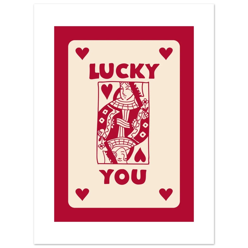 Bring home this charming declaration of luck and love. Choose your favorite size and let this unique poster be a daily reminder that you are, indeed, lucky you!