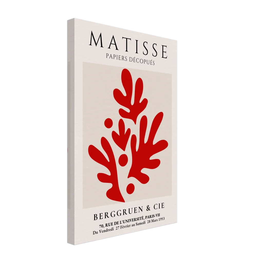 Bring the vibrant spirit of Matisse’s iconic cut-outs into your home with this stunning art print. The playful, organic shapes in bold red against a sophisticated beige background evoke a sense of joyous modernism and timeless elegance. This canvas print elevates your space, offering enhanced texture and a truly immersive art experience.
