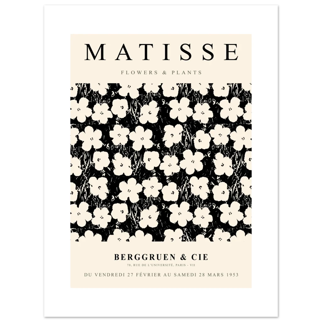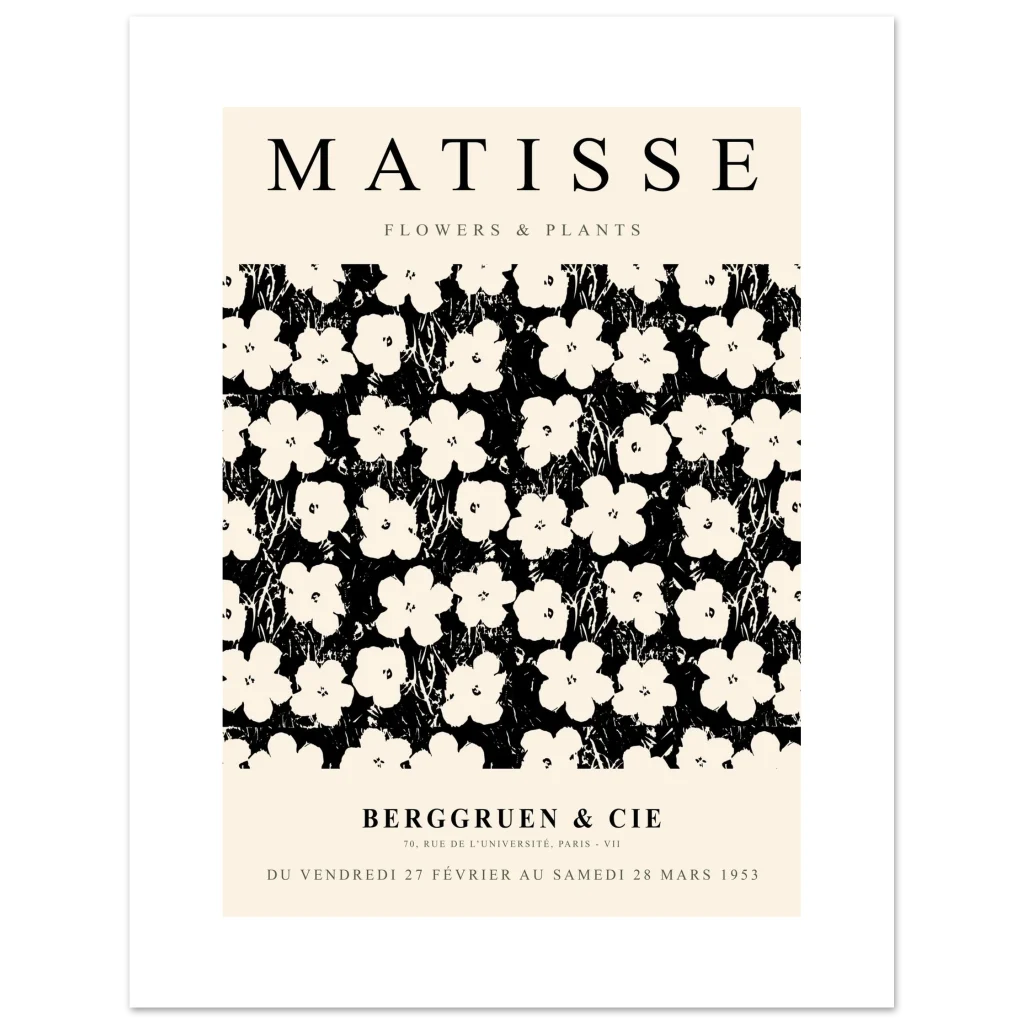 Bring timeless artistic elegance into your space with this stunning Matisse-inspired ‘Flowers & Plants’ exhibition poster. Its striking black and white floral pattern captures a sophisticated, minimalist aesthetic, perfect for adding a touch of classic modern art to any room. This piece is a celebration of botanical forms, rendered with a bold graphic quality that commands attention yet blends seamlessly with diverse decor styles.