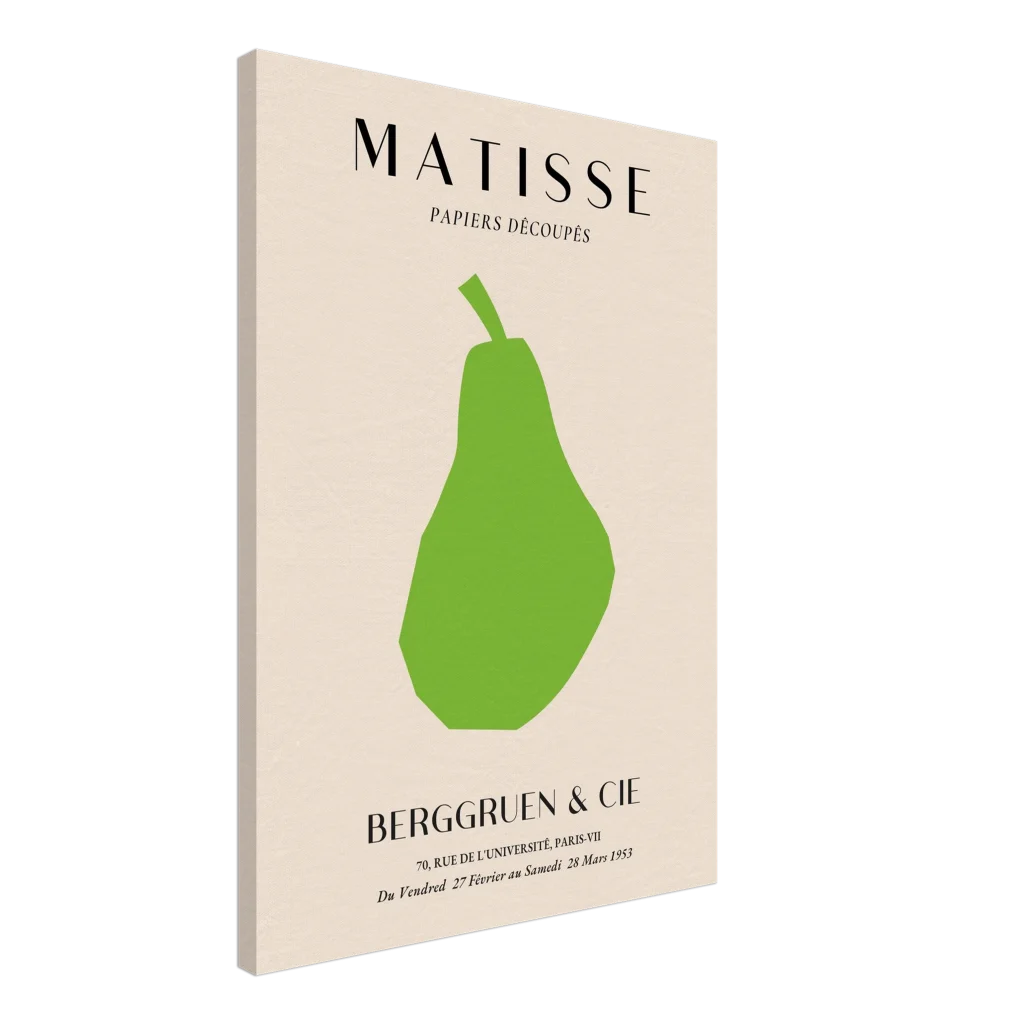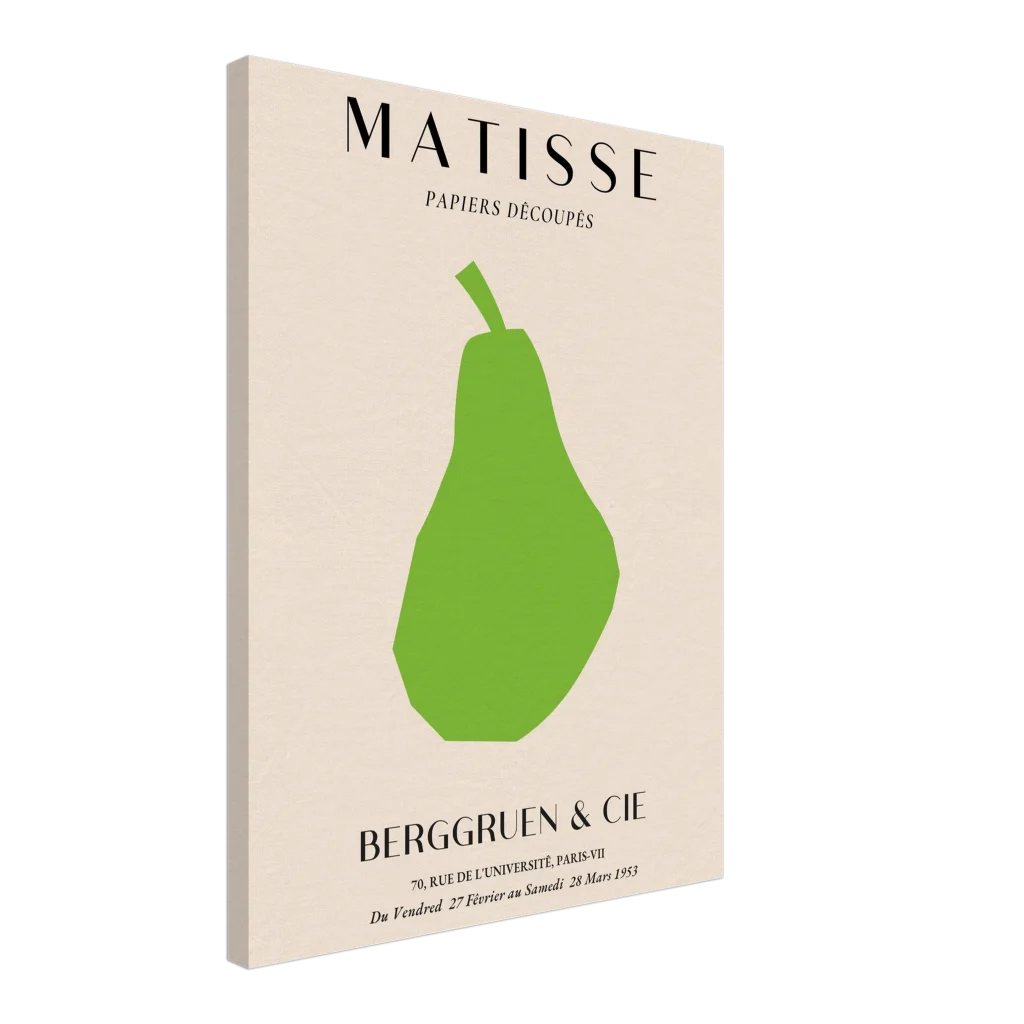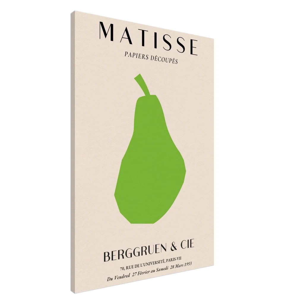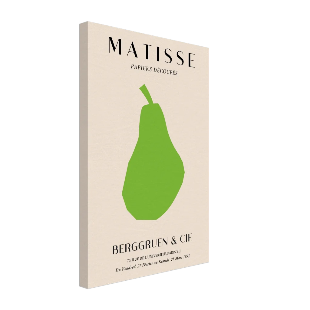 Bring the timeless charm of mid-century modern art into your space with this stunning ‘Papiers Découpés’ inspired canvas print. The vibrant green pear, set against a classic neutral background, captures the joyful simplicity and bold aesthetic of a master. Our canvas print enhances the image’s natural look and feel, creating a truly immersive art experience with its rich texture and enduring beauty.