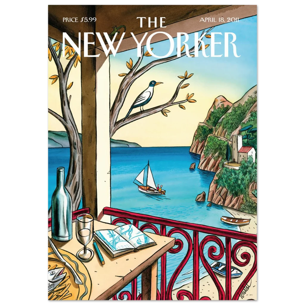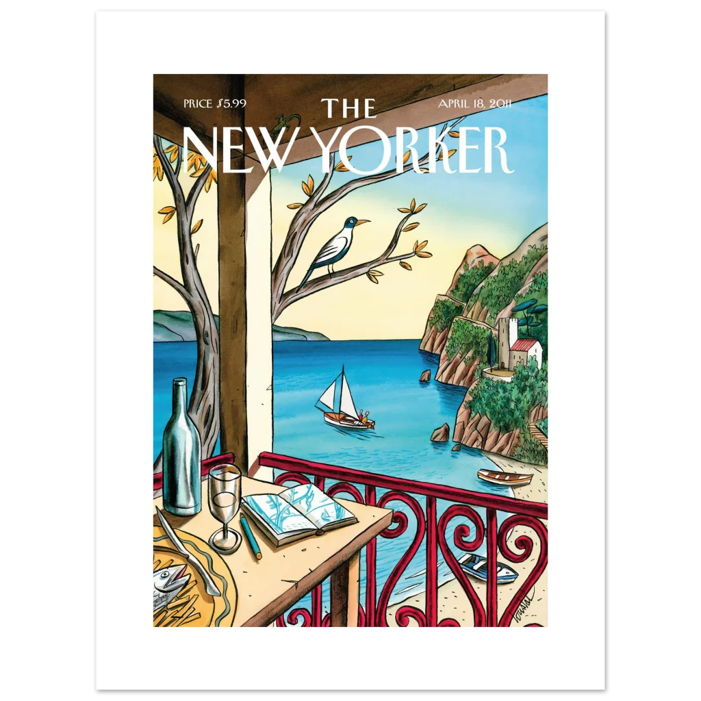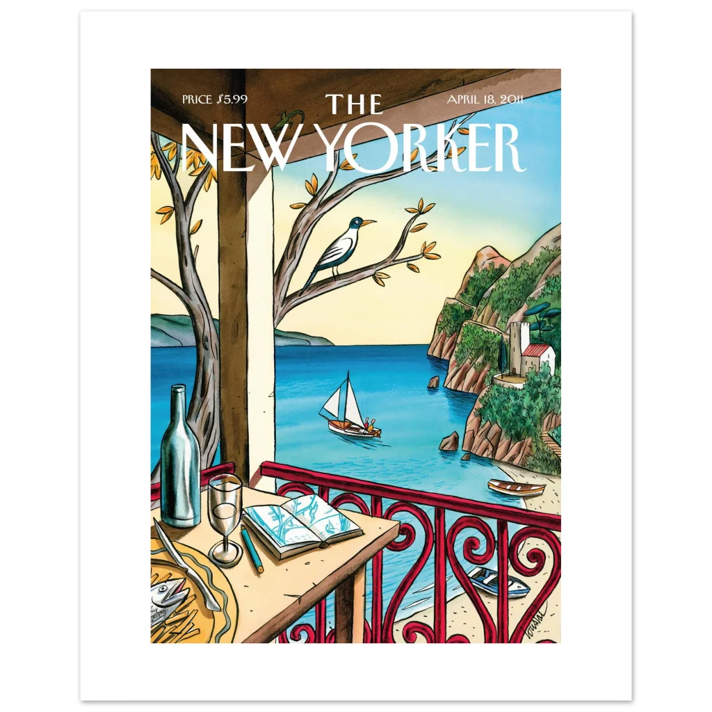 Mediterranean Coastal View Premium Matte Paper Poster – Serene Balcony Scene, New Yorker Art