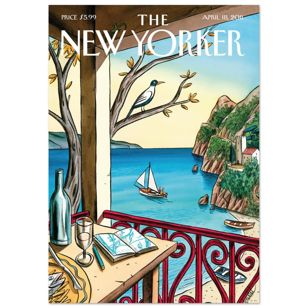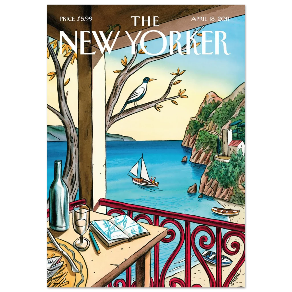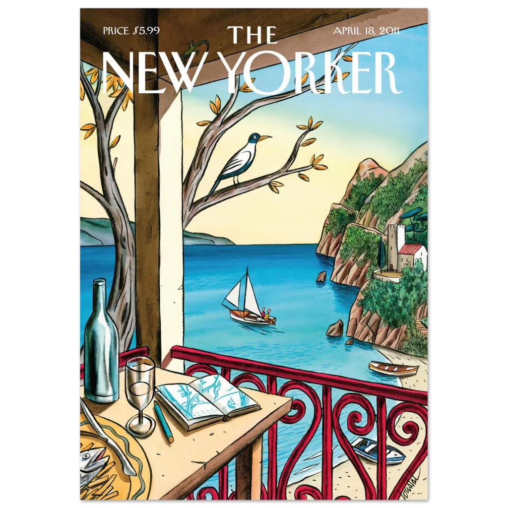 Mediterranean Coastal View Premium Matte Paper Poster – Serene Balcony Scene, New Yorker Art