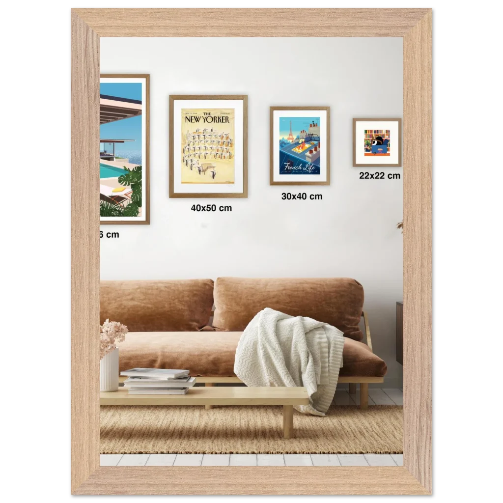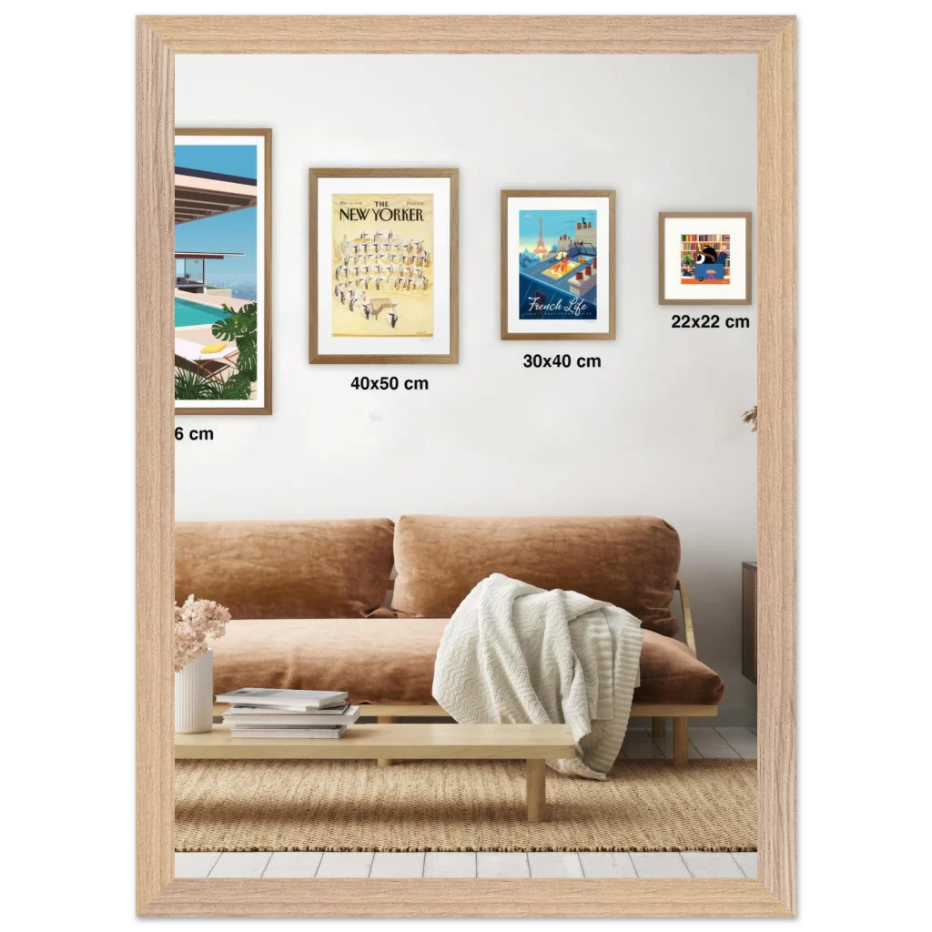 - Frame Color: Natural wood, black, and white, showcasing the distinct wood grain.